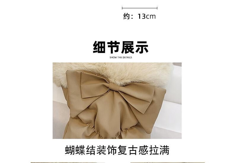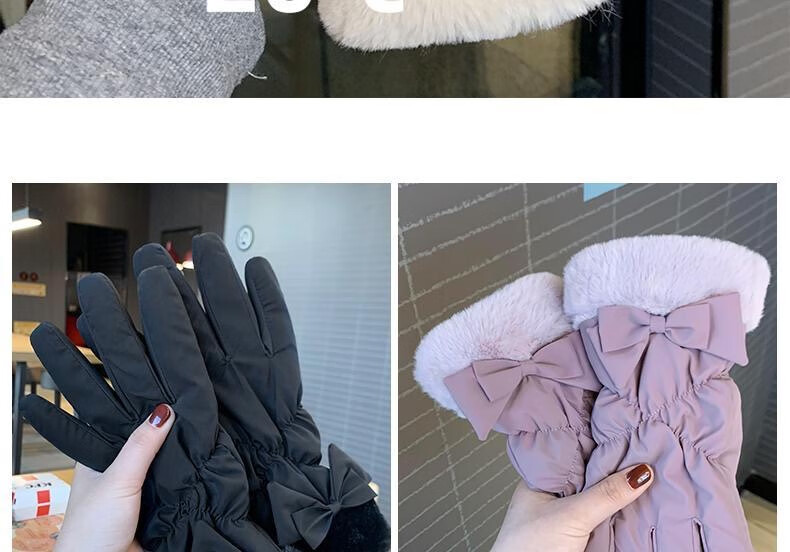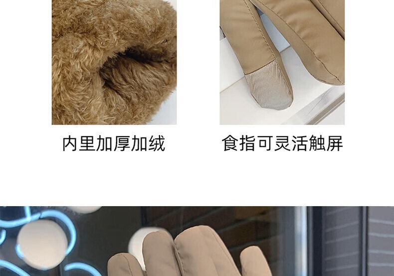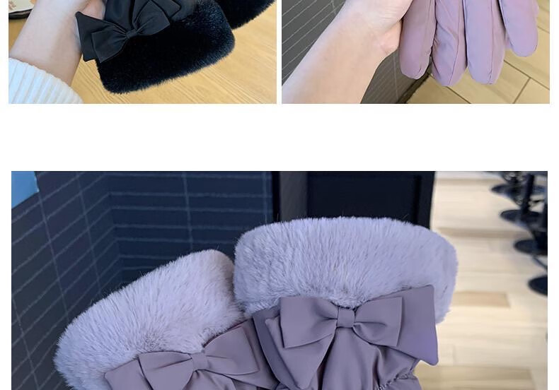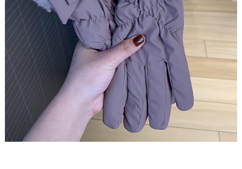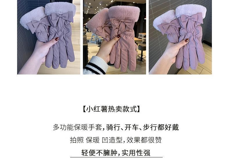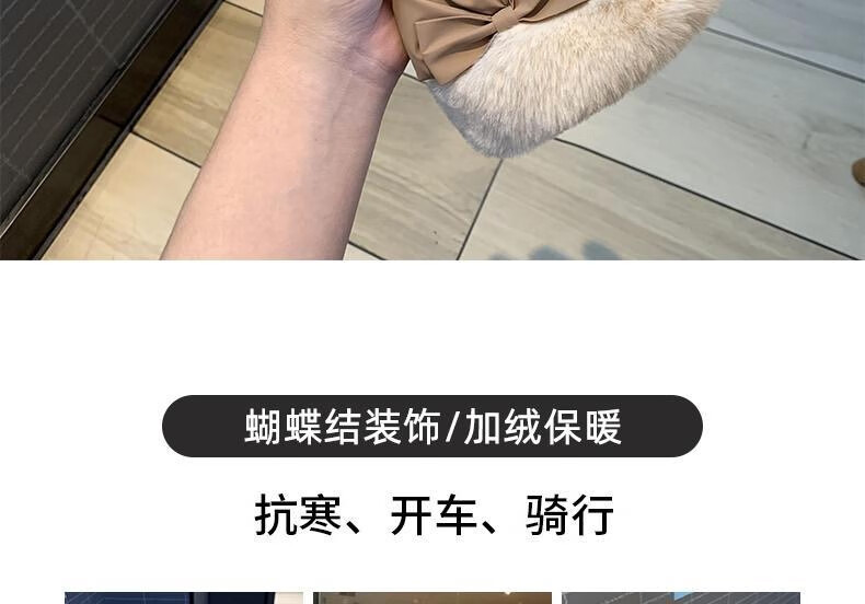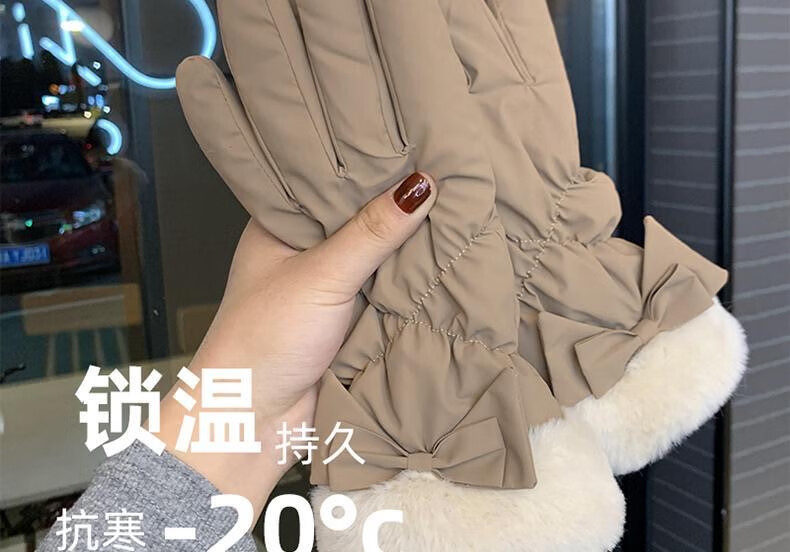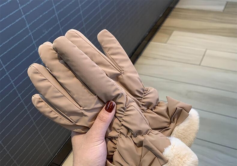 束鹿故事手套女冬季加厚加绒骑车防寒可防风女士冬天骑行电动车保暖棉手套 蝴蝶结-卡其色