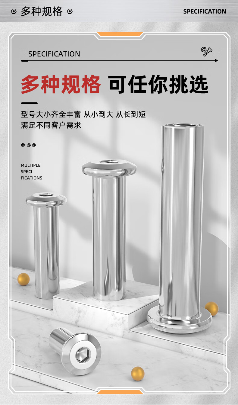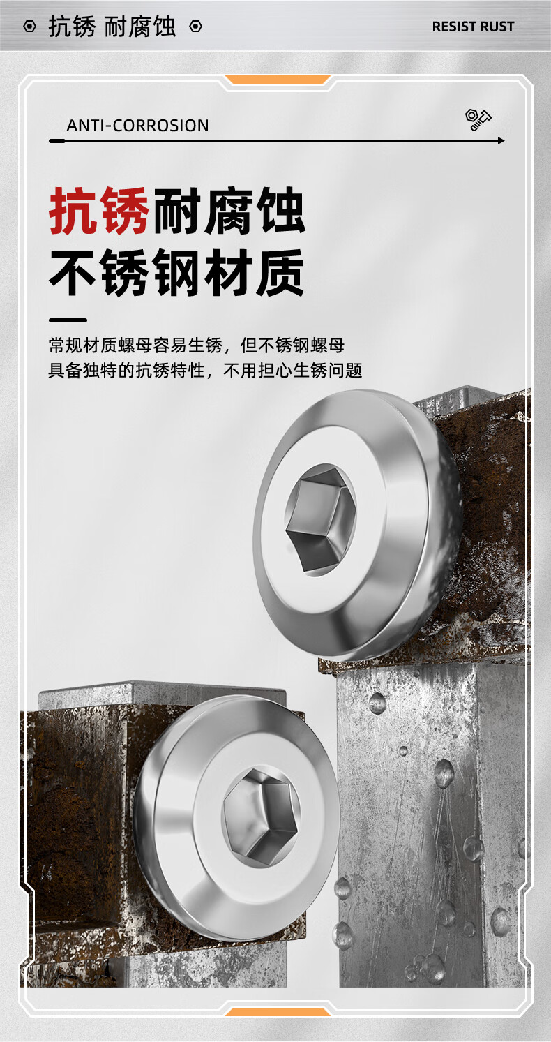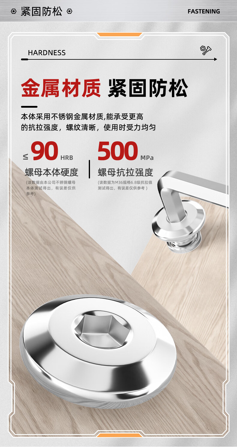 天卓五金304不锈钢英制美制平头倒边家具内六角对锁螺母对接夹板螺帽UNC 3/16-24*5/16(10个)