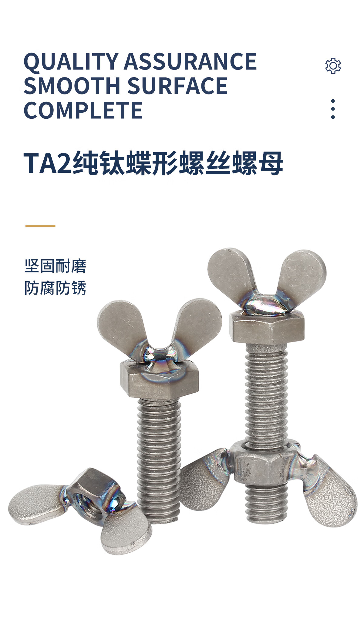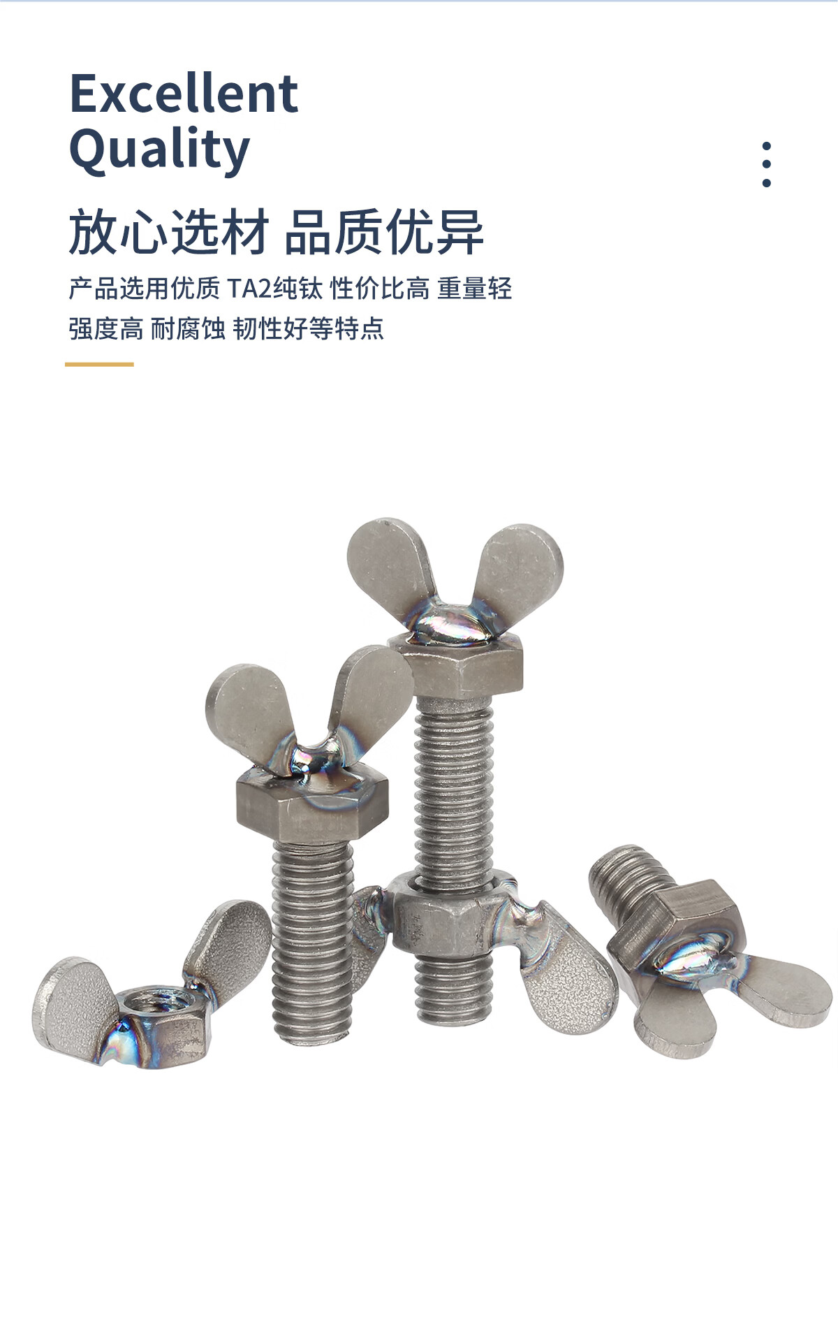 固万基(GUWANJI)国标TA2纯钛蝶形螺丝钛合金蝴蝶型羊角螺母螺钉元宝手拧螺栓M5-M8 M5x10(2只)