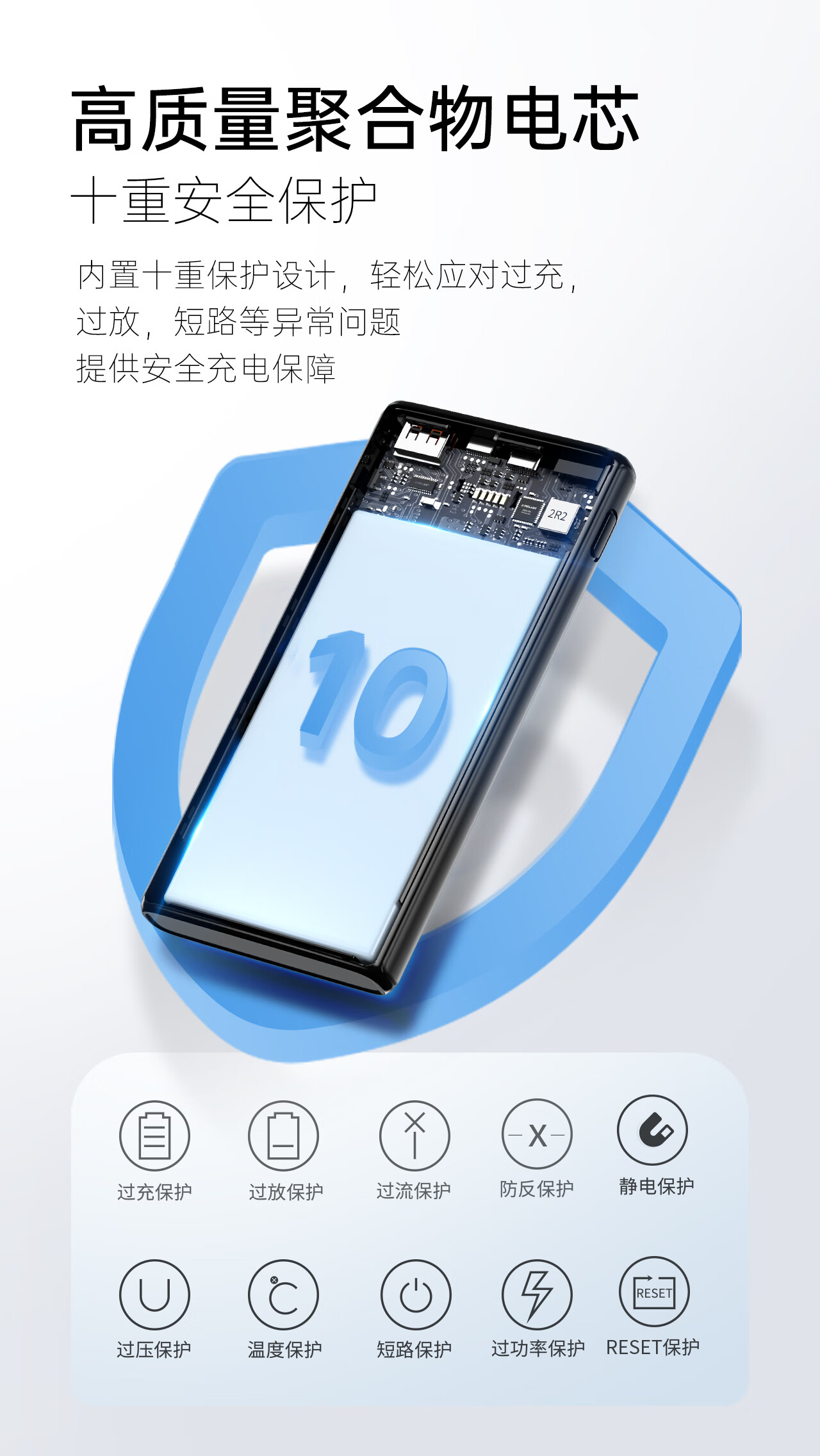 科希帝【国家3C认证】【新国标丨飞机高铁】超级快充自带线充电宝小巧便携移动电源适用苹果小米20000 炫酷黑【标准版+3C安全认证】