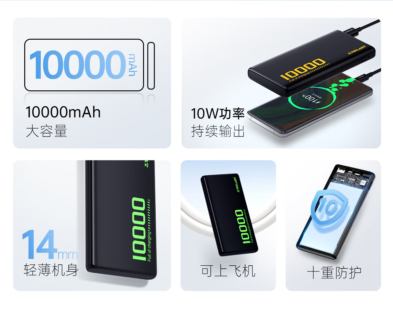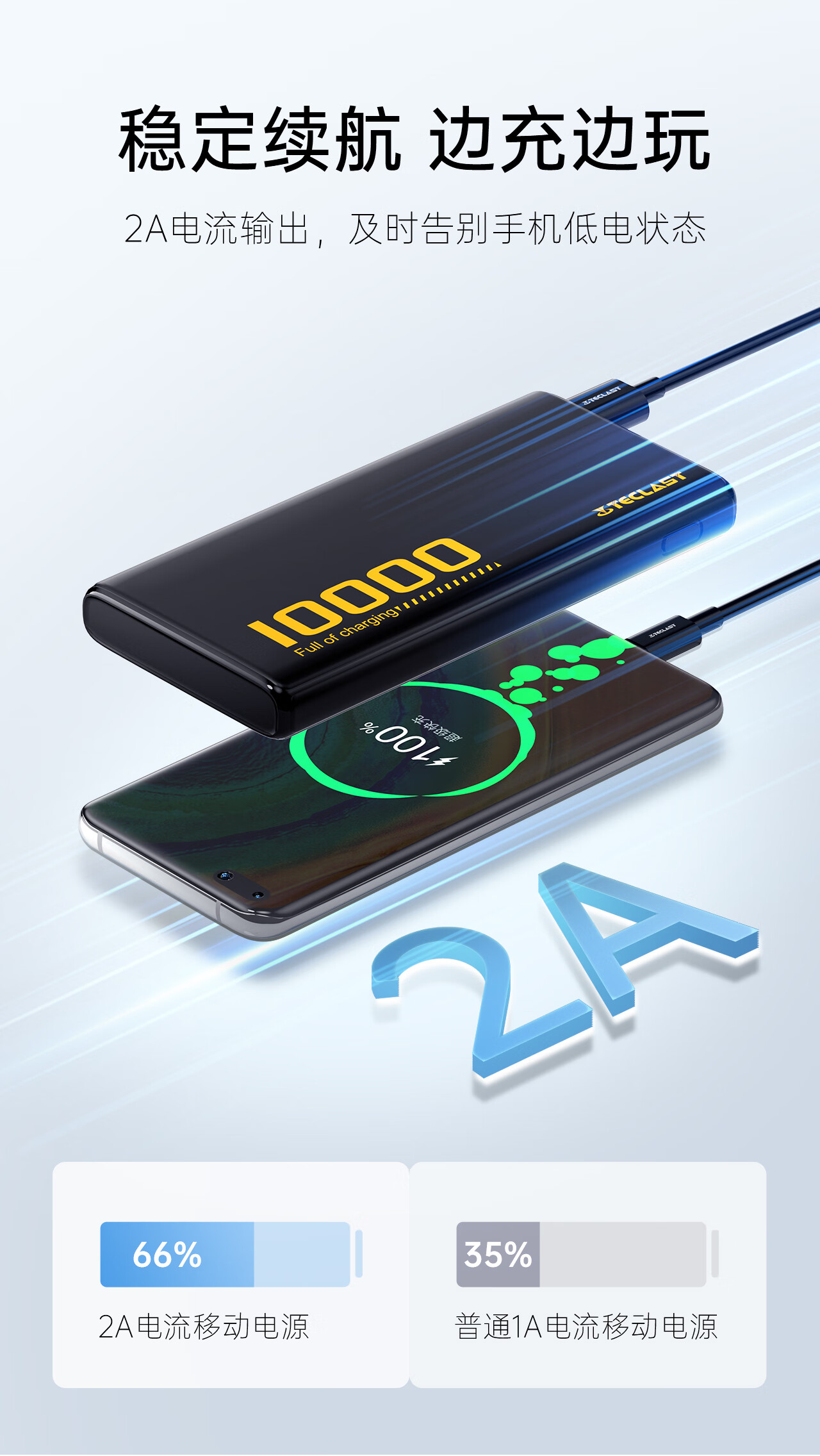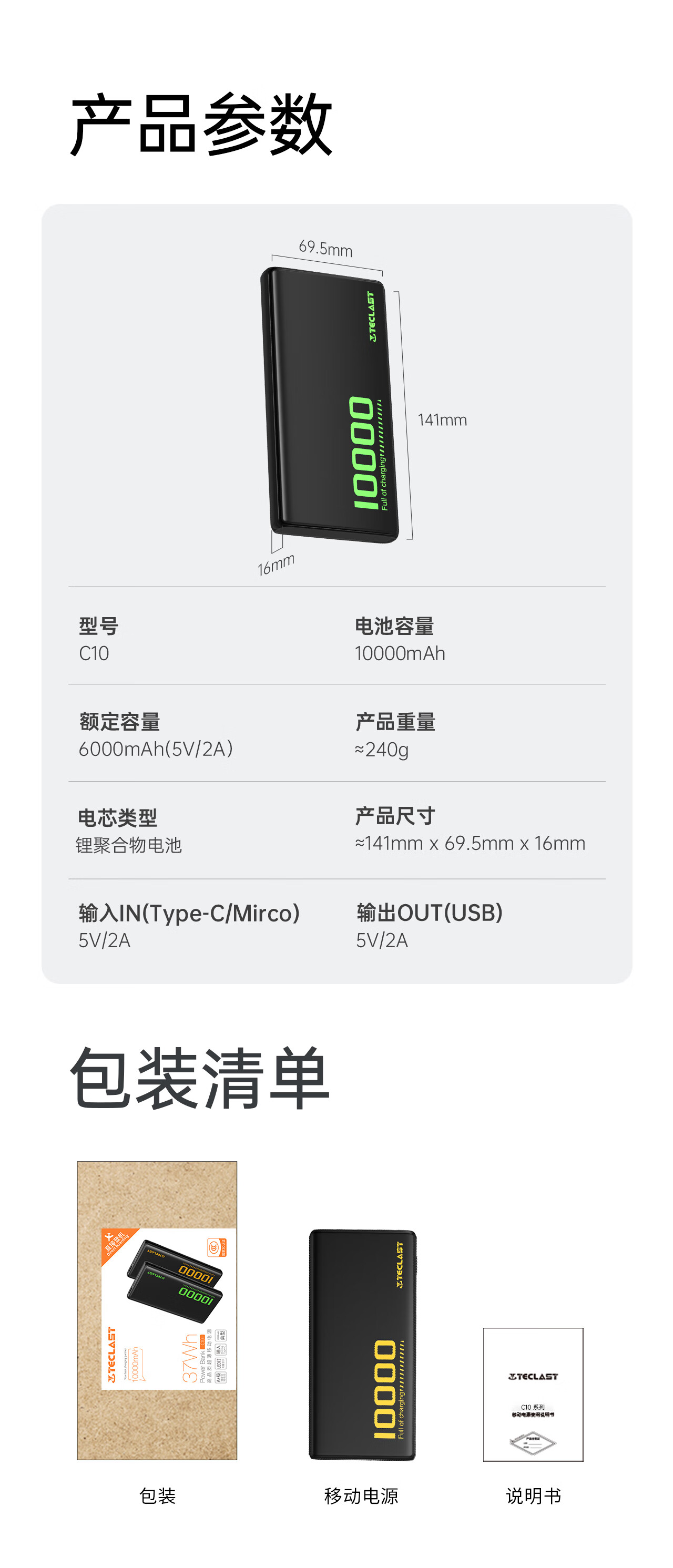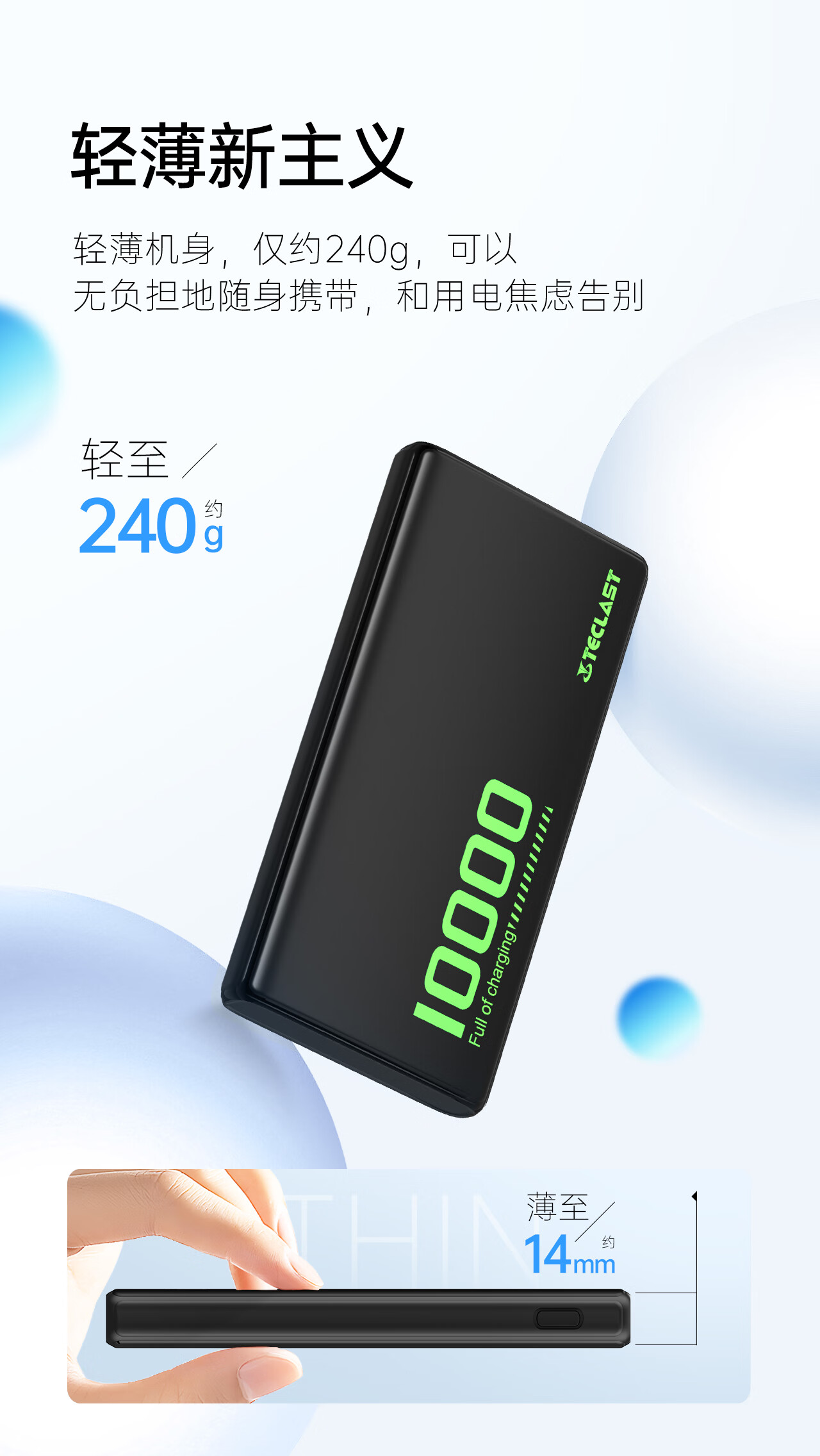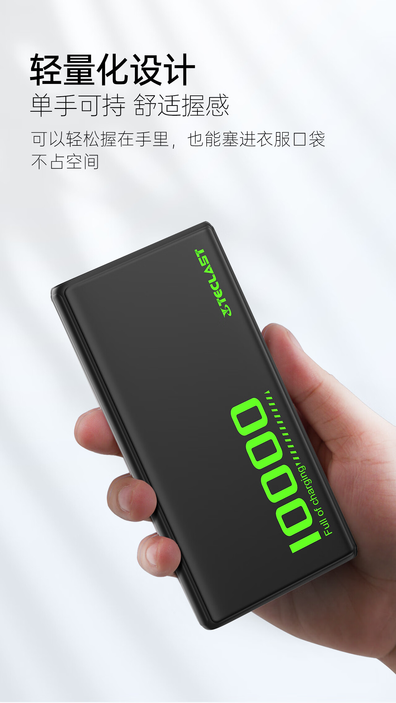 台电(TECLAST)充电宝【3C认证】10000毫安时轻薄便携移动电源快充小巧迷你户外电源 适用于小米苹果华为安卓 绿