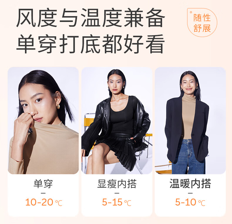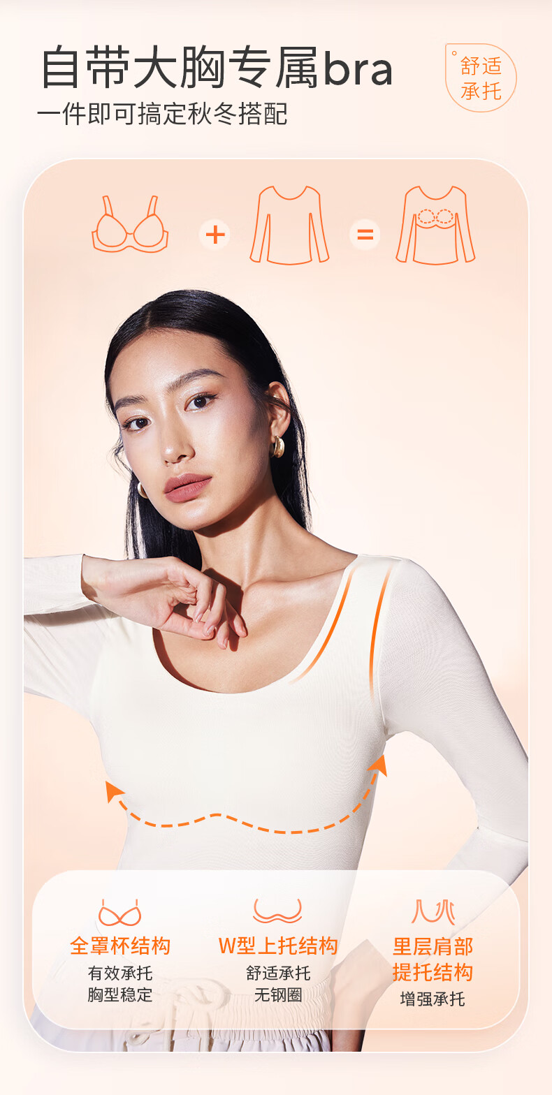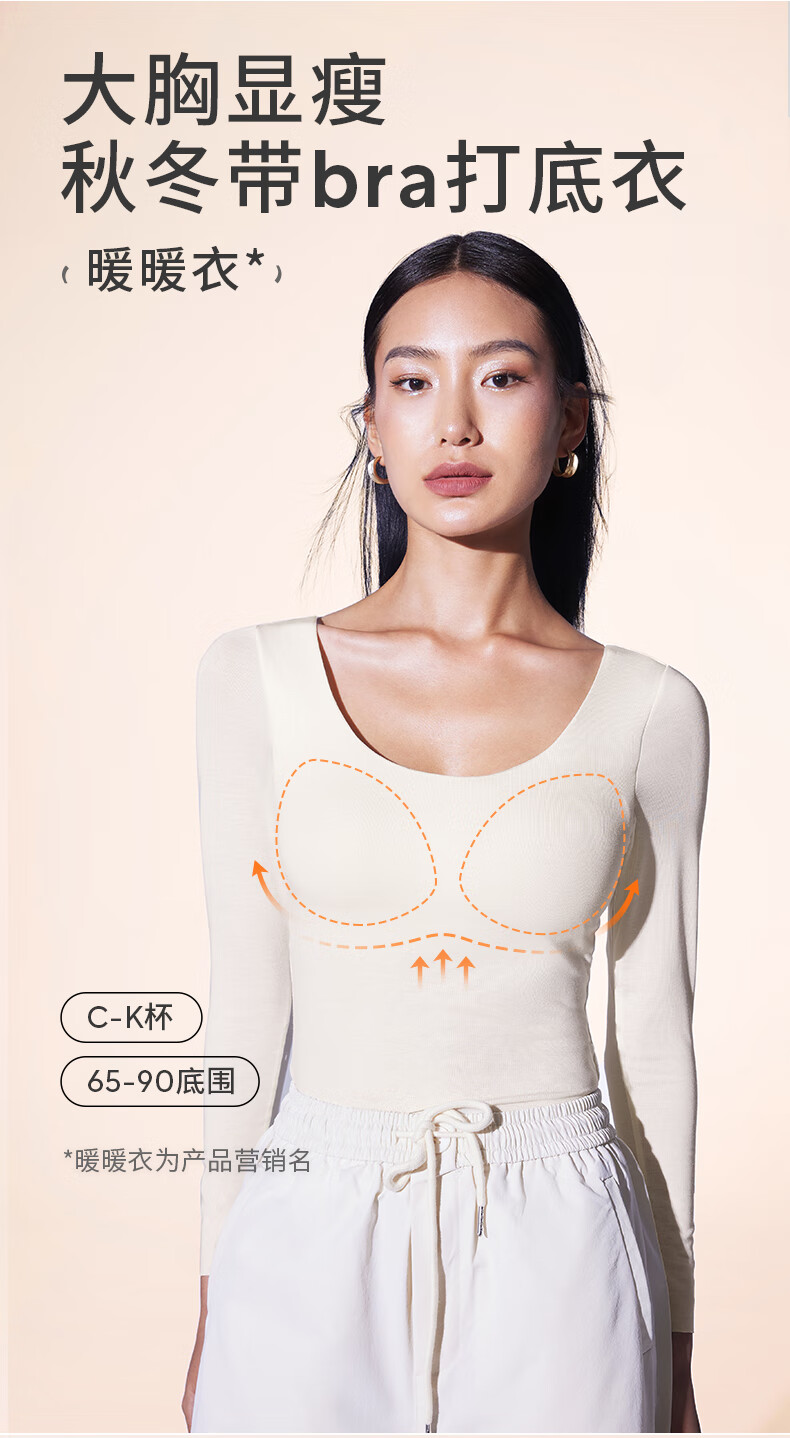 奶糖派文胸打底二合一保暖内衣秋衣免穿文胸暖暖衣无痕可外穿带胸垫 堆堆领·燕麦奶 M 3【75F-G,80E-F】