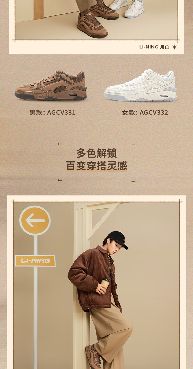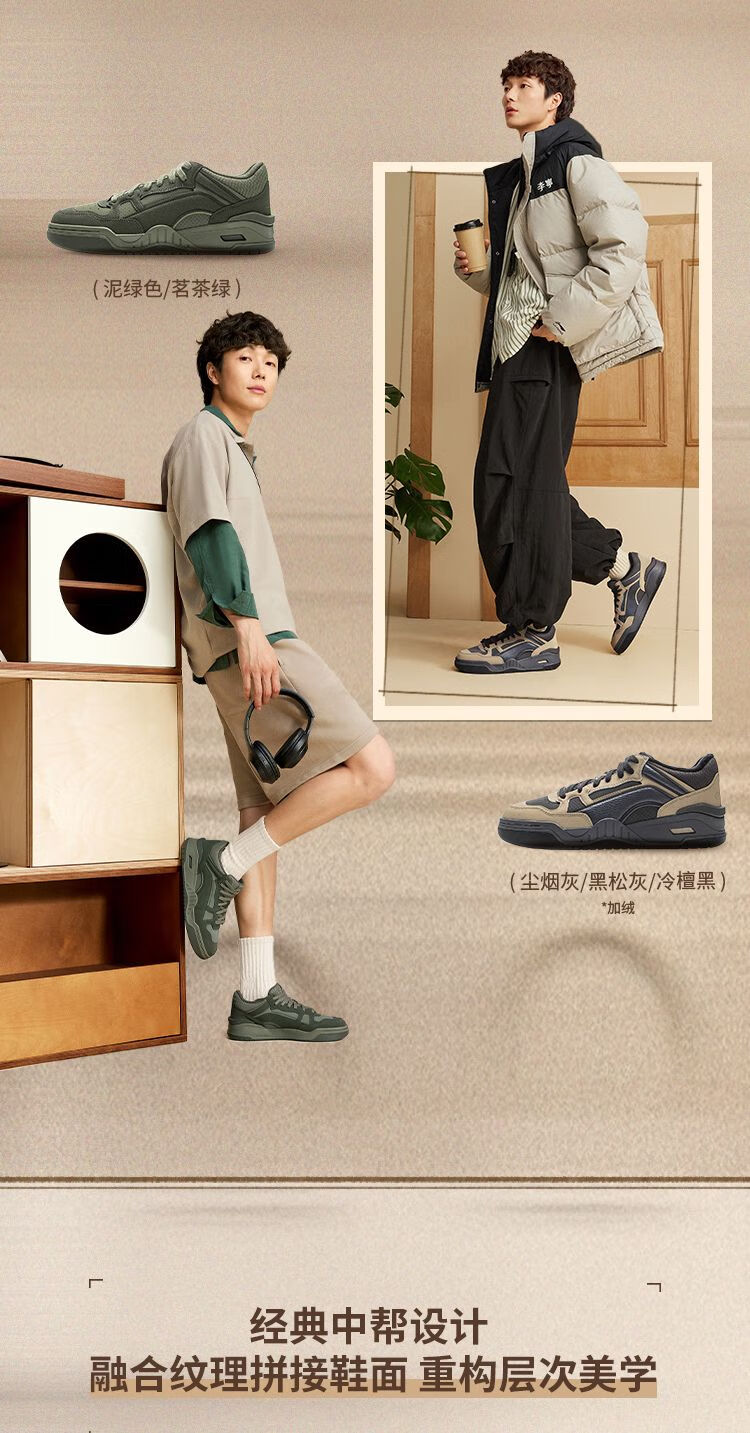 李宁月白2 MID丨板鞋男鞋2025秋冬季保暖低帮百搭经典运动鞋AGCV331