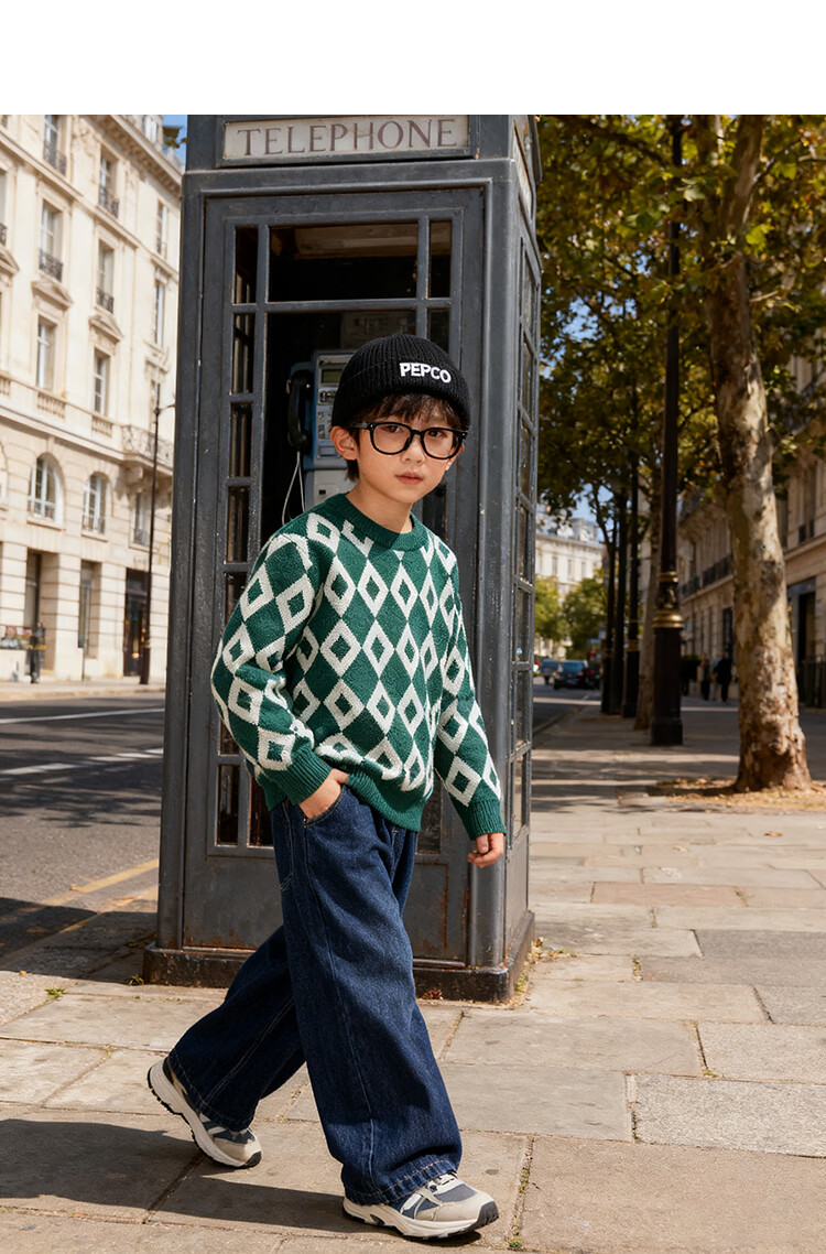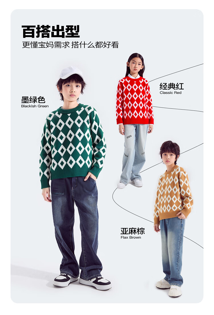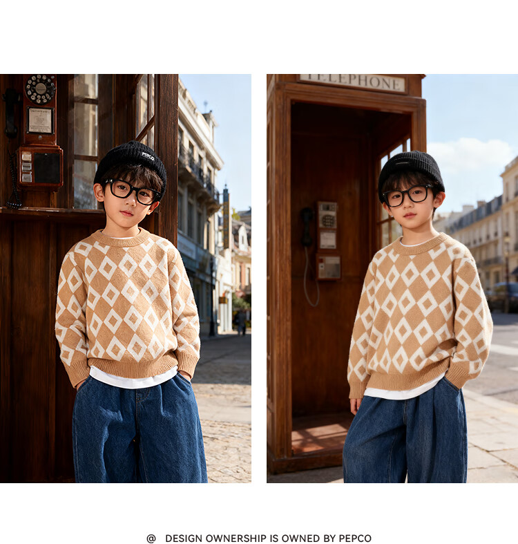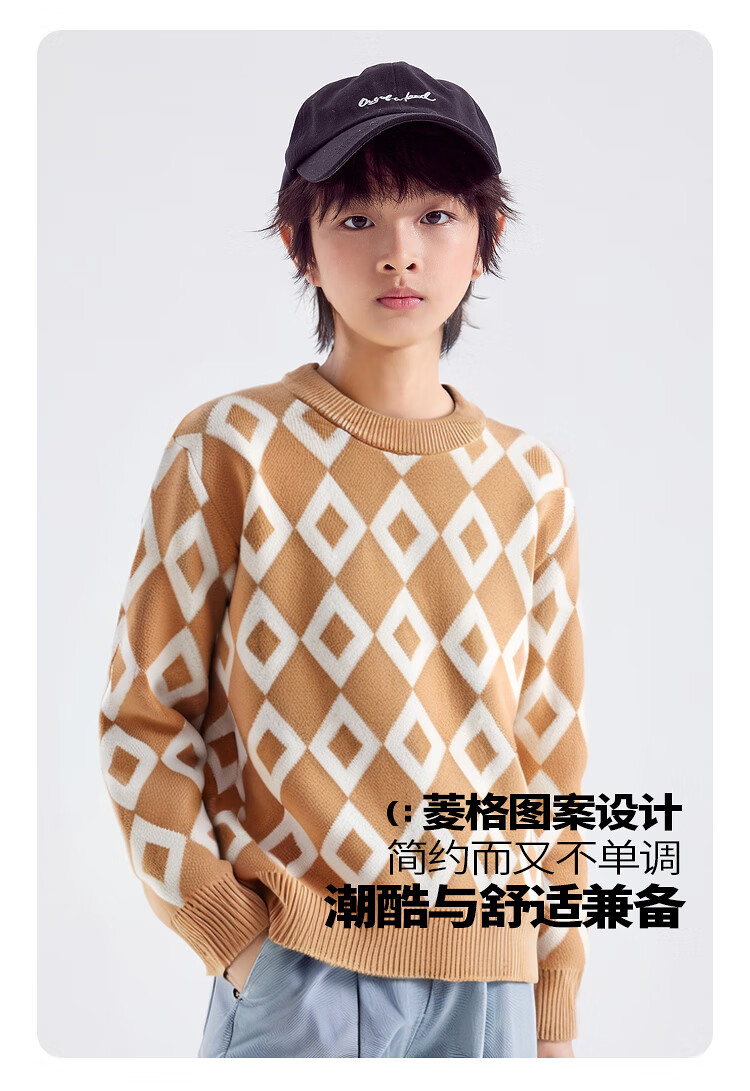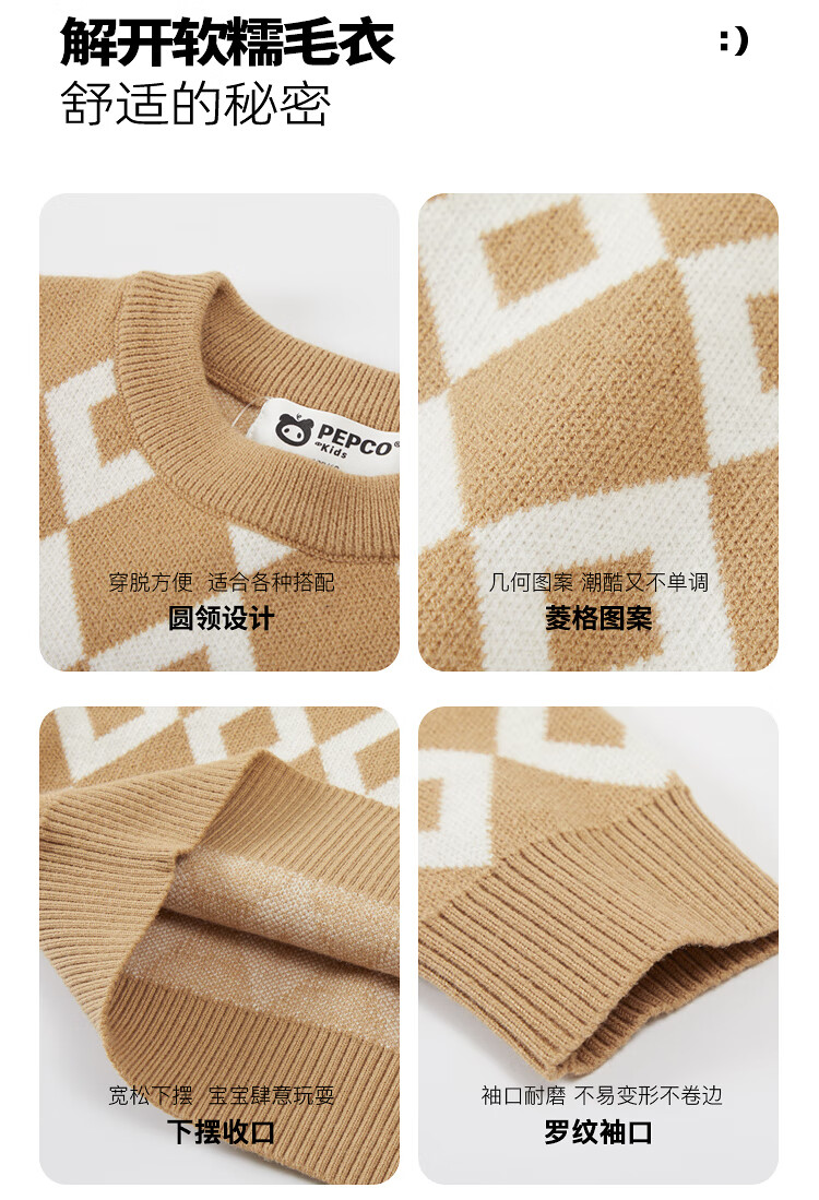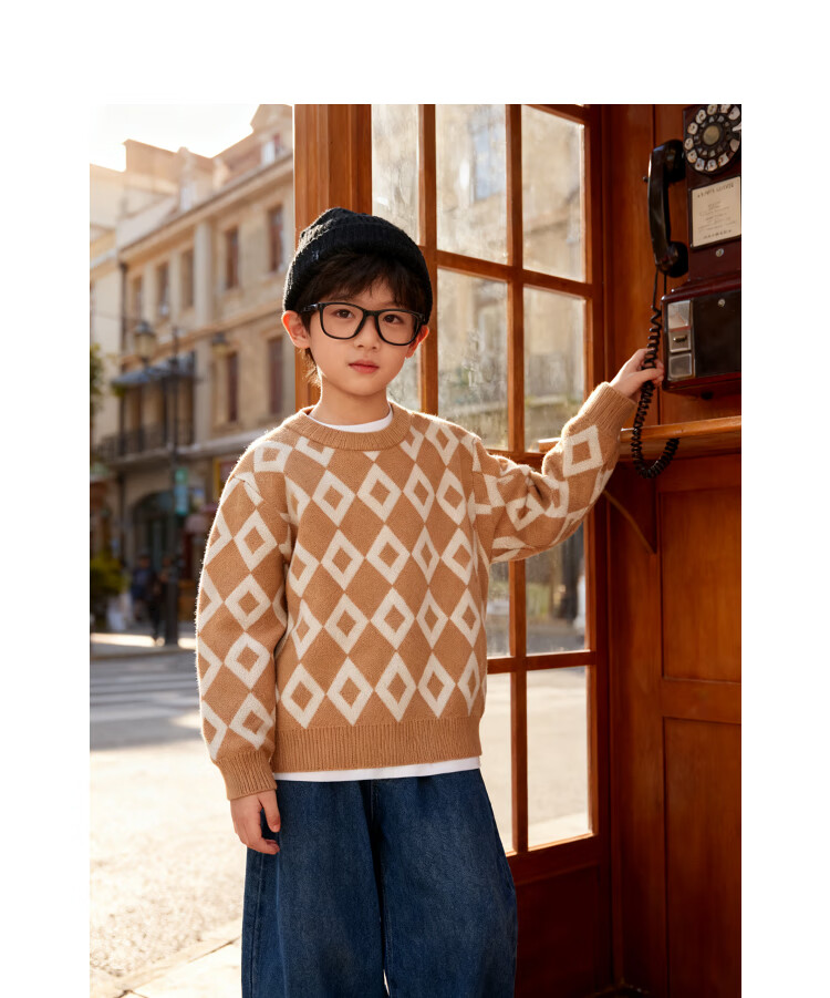 小猪班纳童装2025秋装新款儿童毛衣中大童男童毛衫女童套头衫上衣 亚麻棕 150 cm