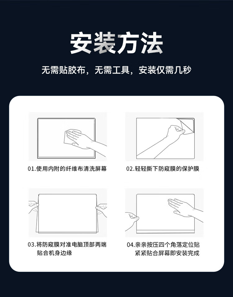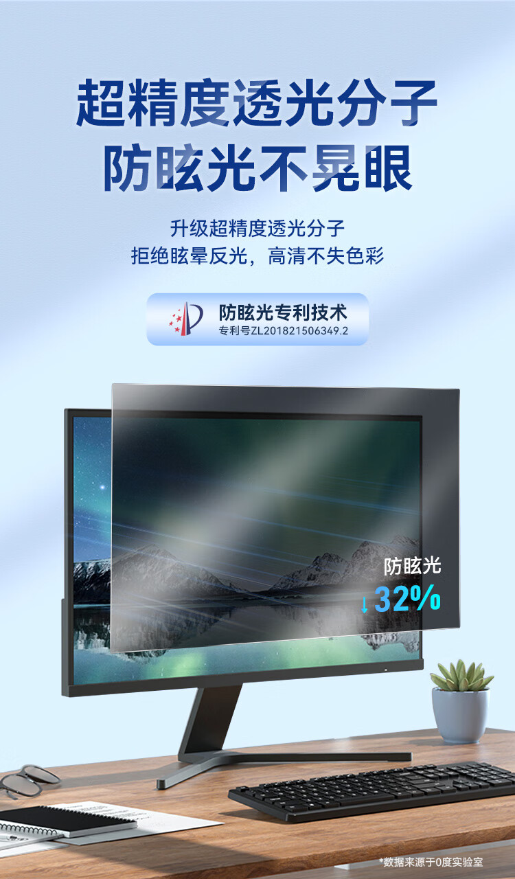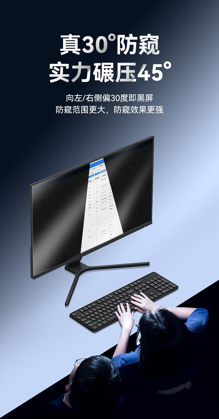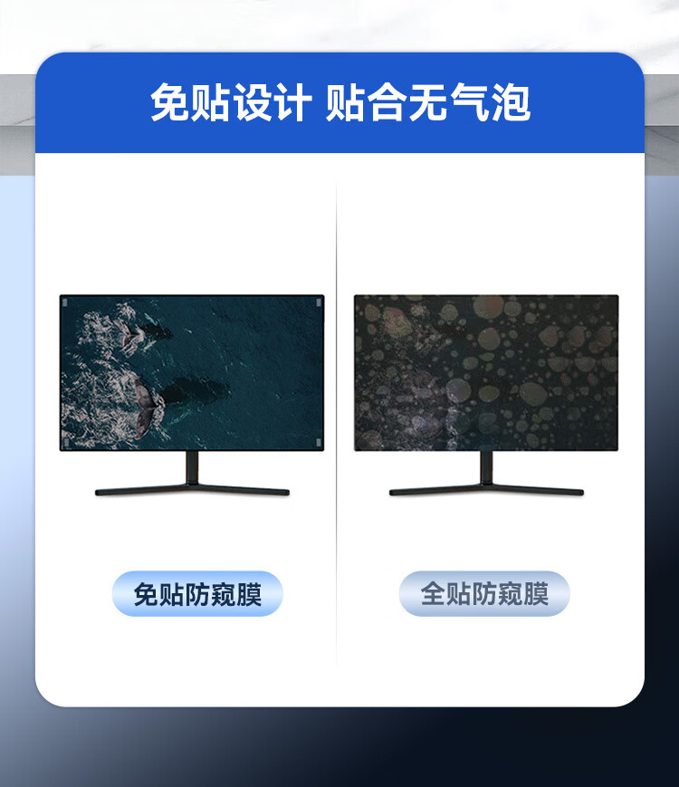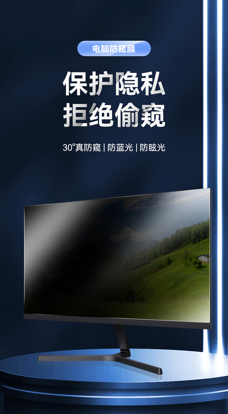 0度适用台式显示器电脑防窥膜24英寸27英寸电防窥膜贴膜防蓝光防贴膜【边角固定免贴】 27英寸(598*337) 防窥防蓝光贴膜