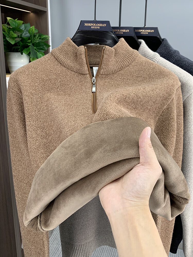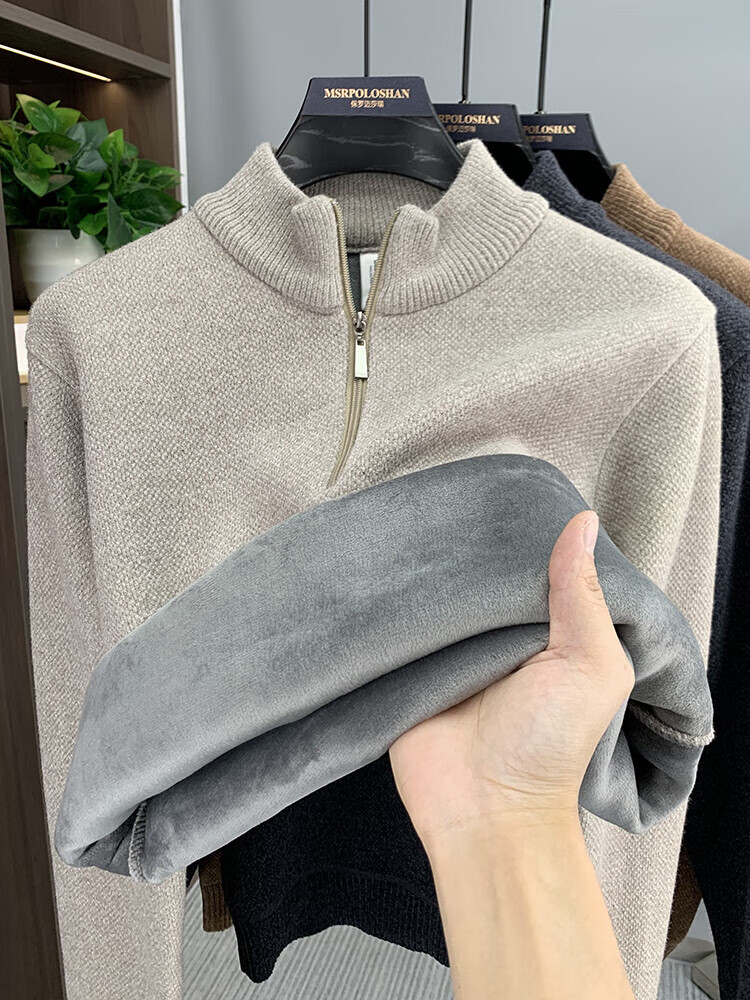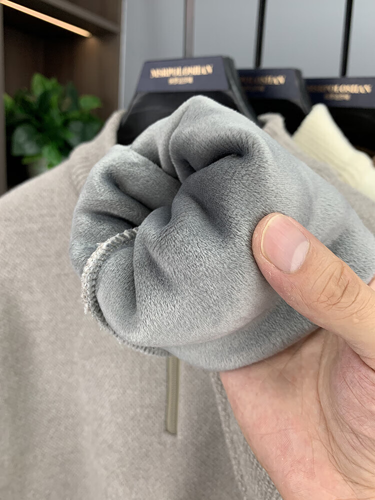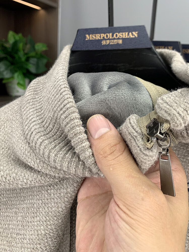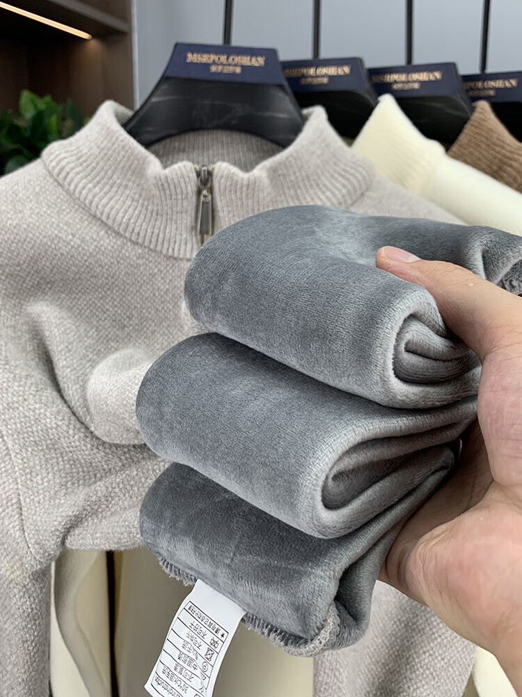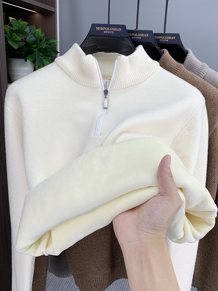 EMZ鄂尔多斯斯半高领拉链加绒加厚男士毛衣冬季新款2025保暖一体绒打 米白色 4XL 190