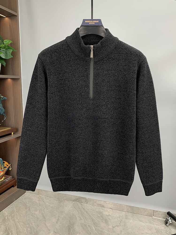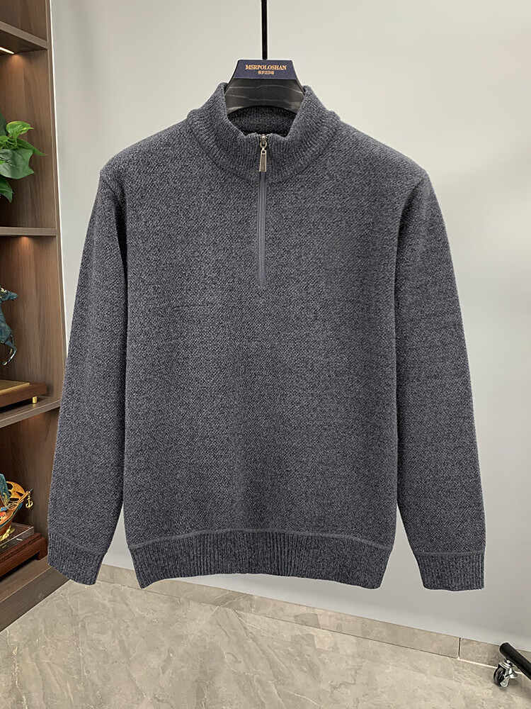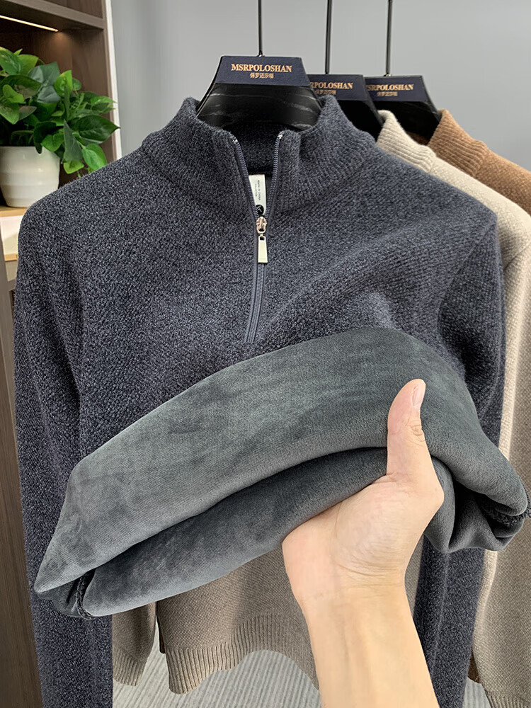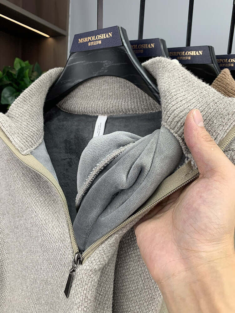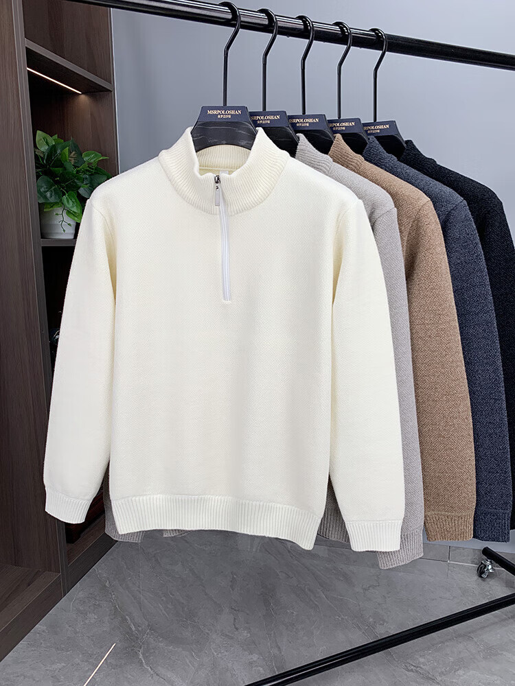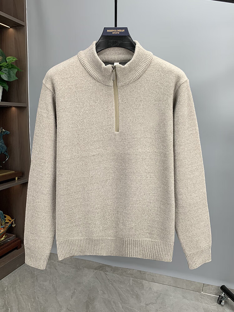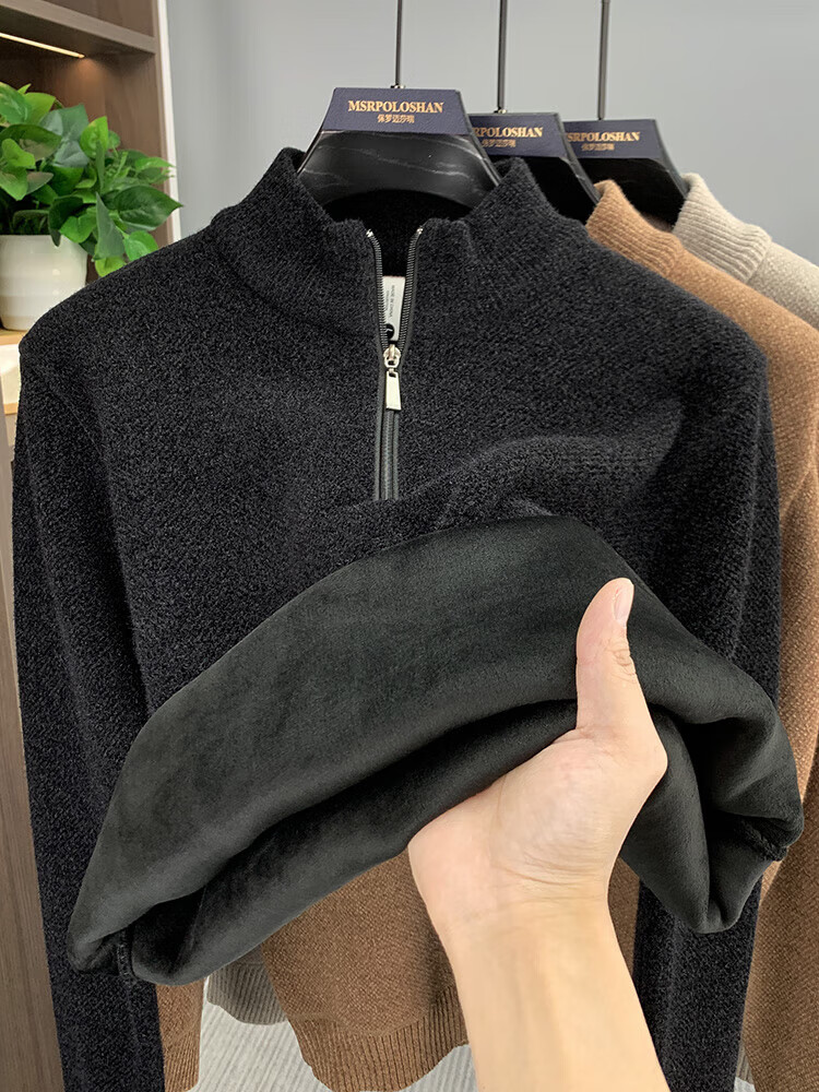 EMZ鄂尔多斯斯半高领拉链加绒加厚男士毛衣冬季新款2025保暖一体绒打 米白色 4XL 190