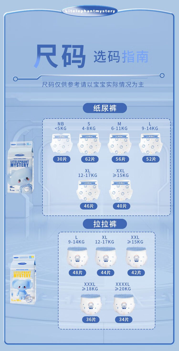 小象奥秘新生婴儿纸尿裤拉拉裤学步裤NB-xxxxl泡泡腰围超薄透气柔软新生 拉拉裤XXXL码36