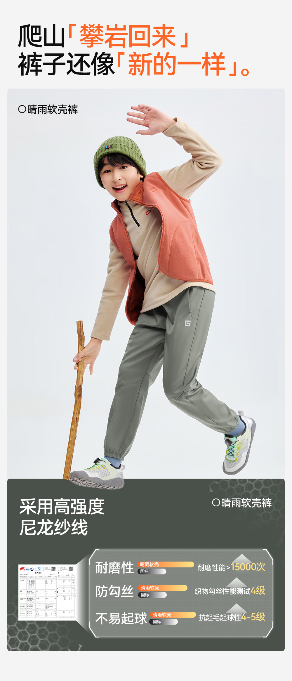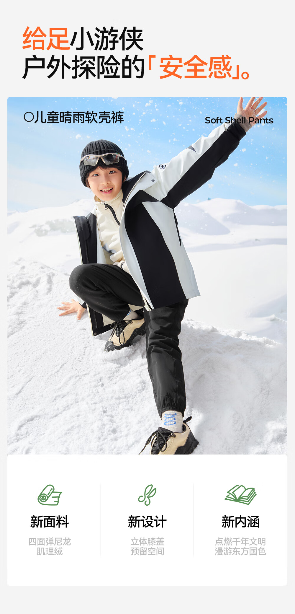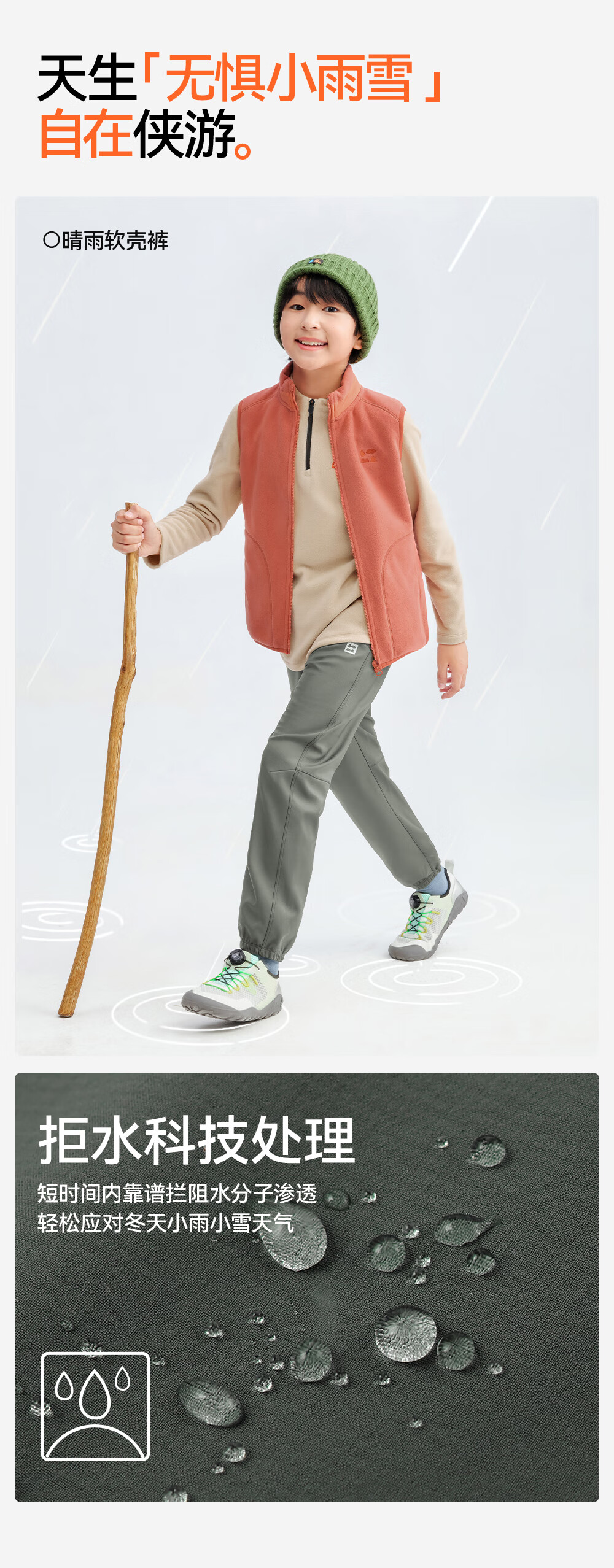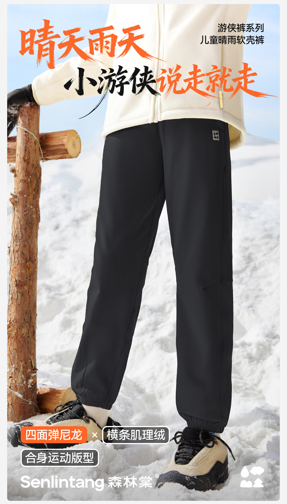 森林棠【晴雨软壳游侠裤】森林棠25冬防风保暖防泼水儿童户外加绒运动裤 泼墨走笔 均码 160cm
