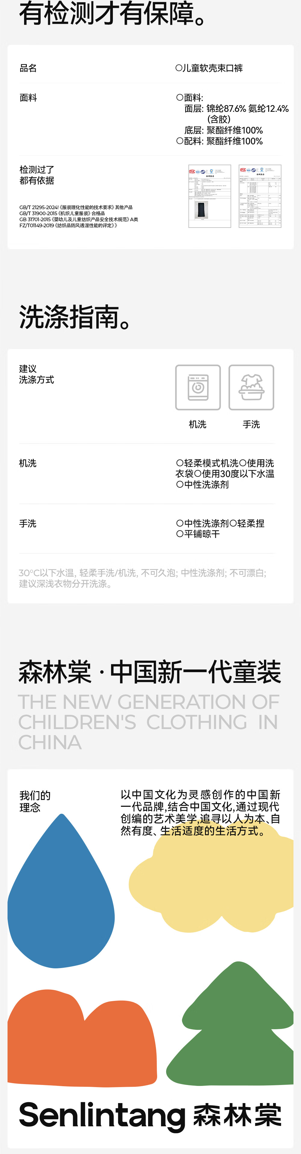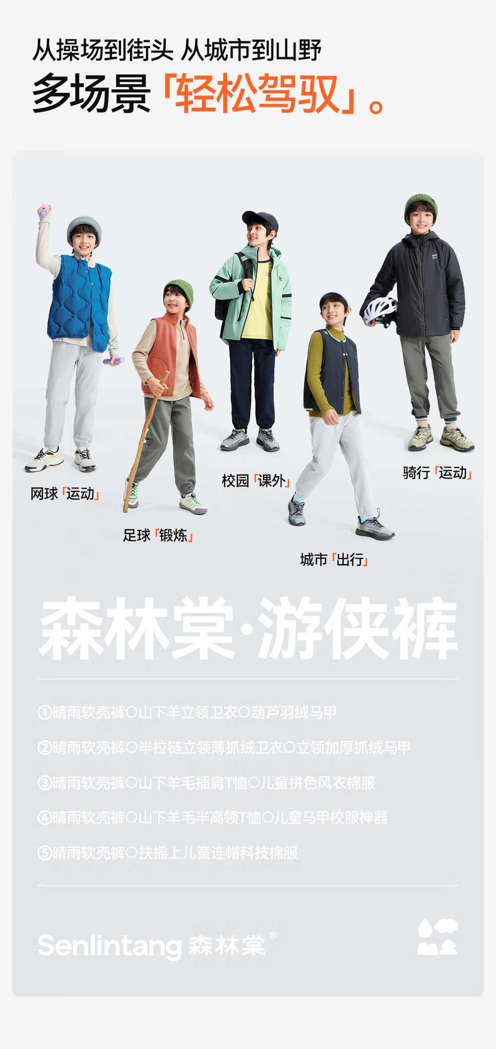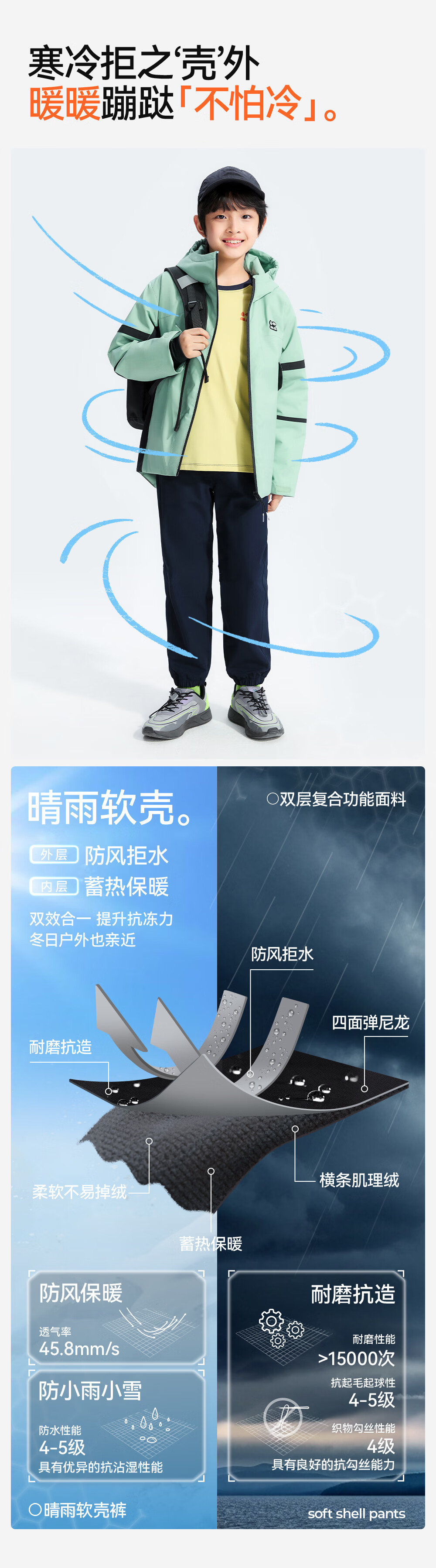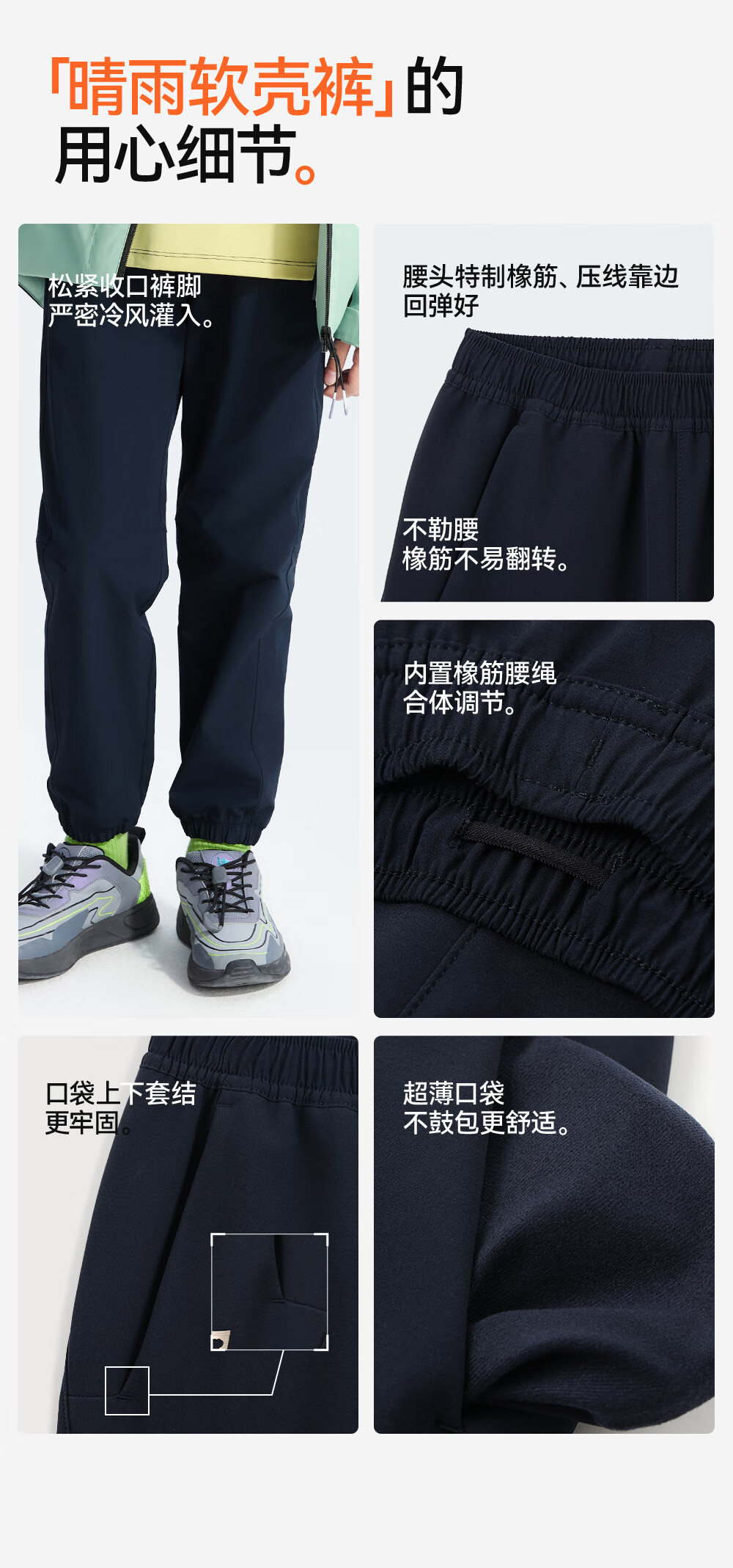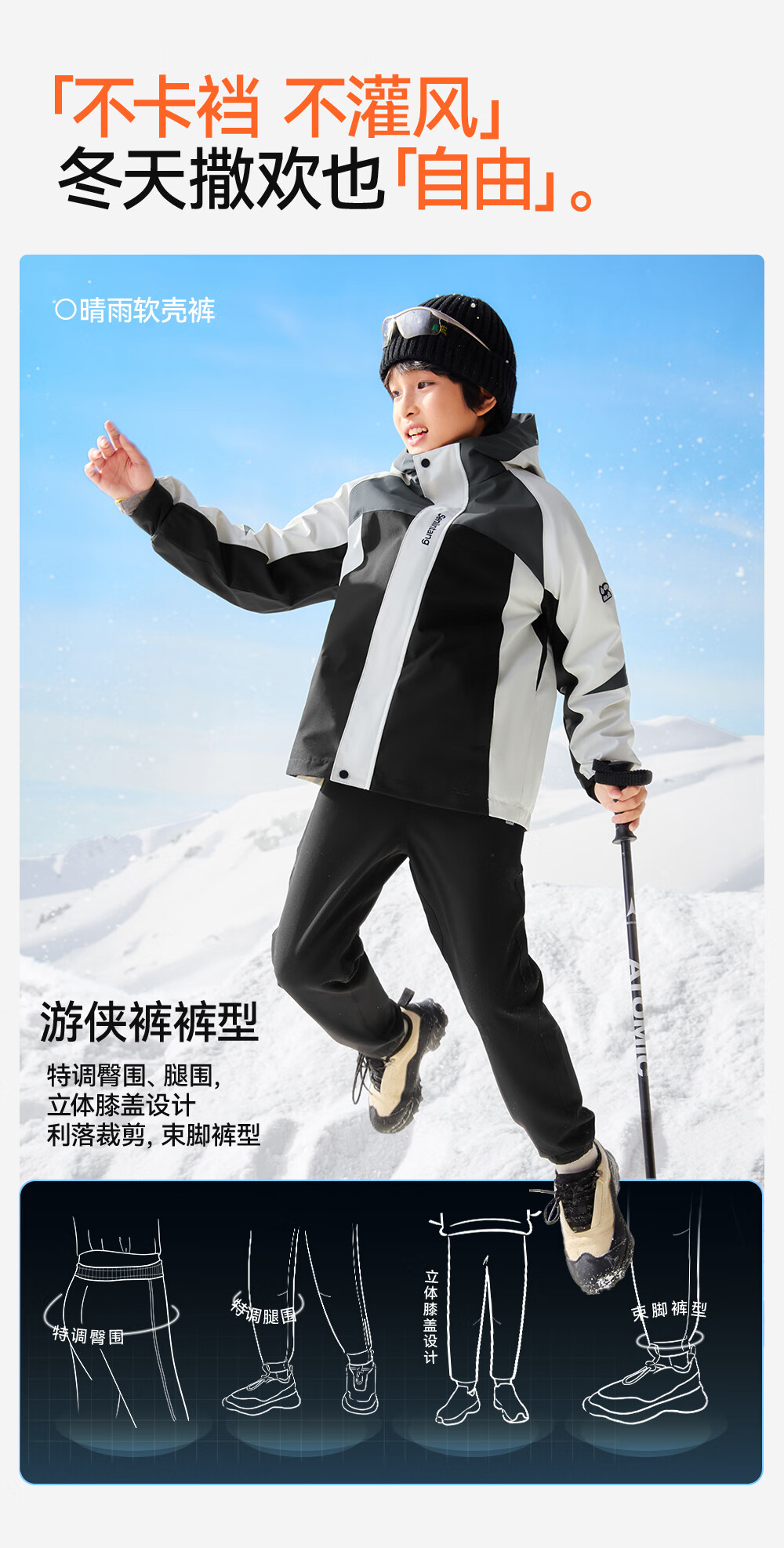 森林棠【晴雨软壳游侠裤】森林棠25冬防风保暖防泼水儿童户外加绒运动裤 泼墨走笔 均码 160cm
