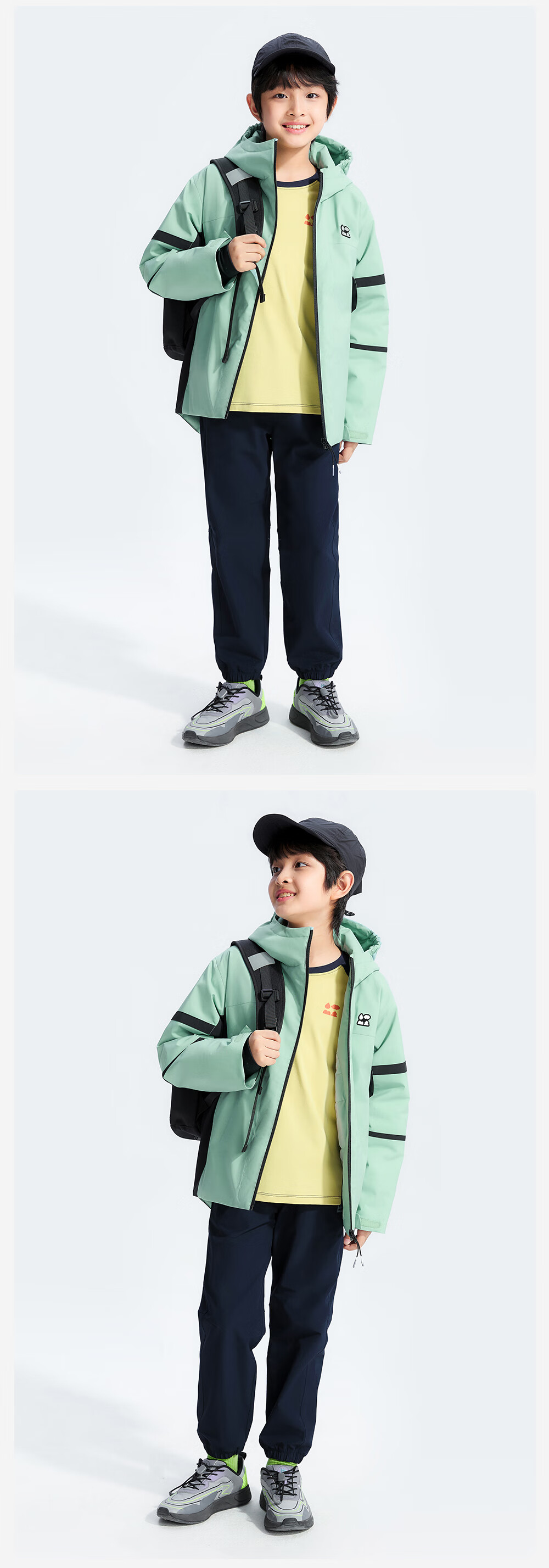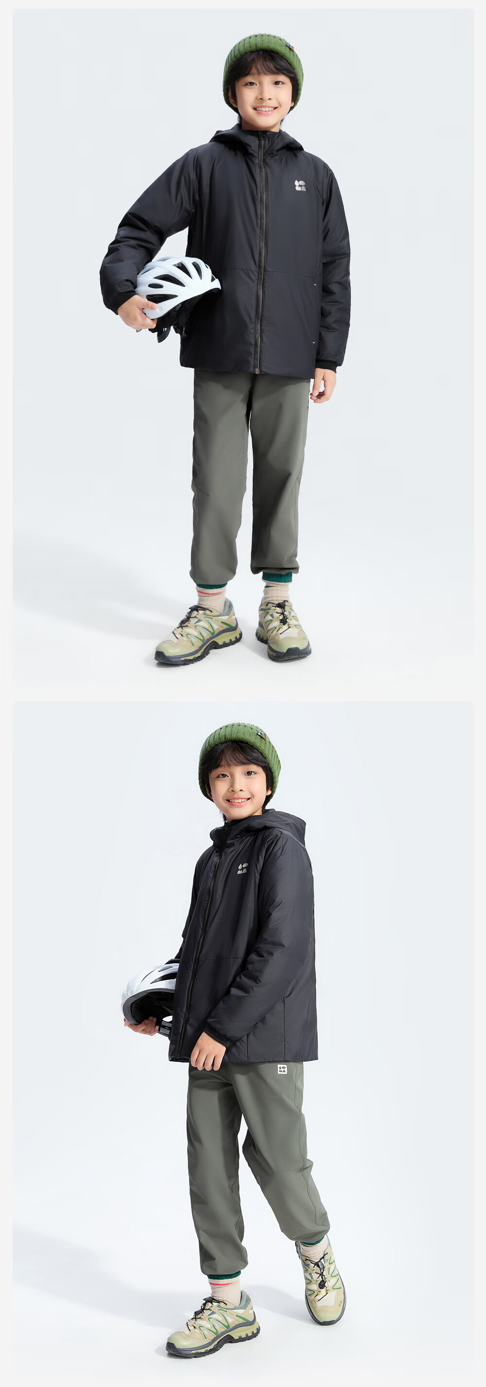 棉致2025新款90白鸭绒轻薄羽绒服冬季时尚拼接校服神器外套中大童上衣 黑 150