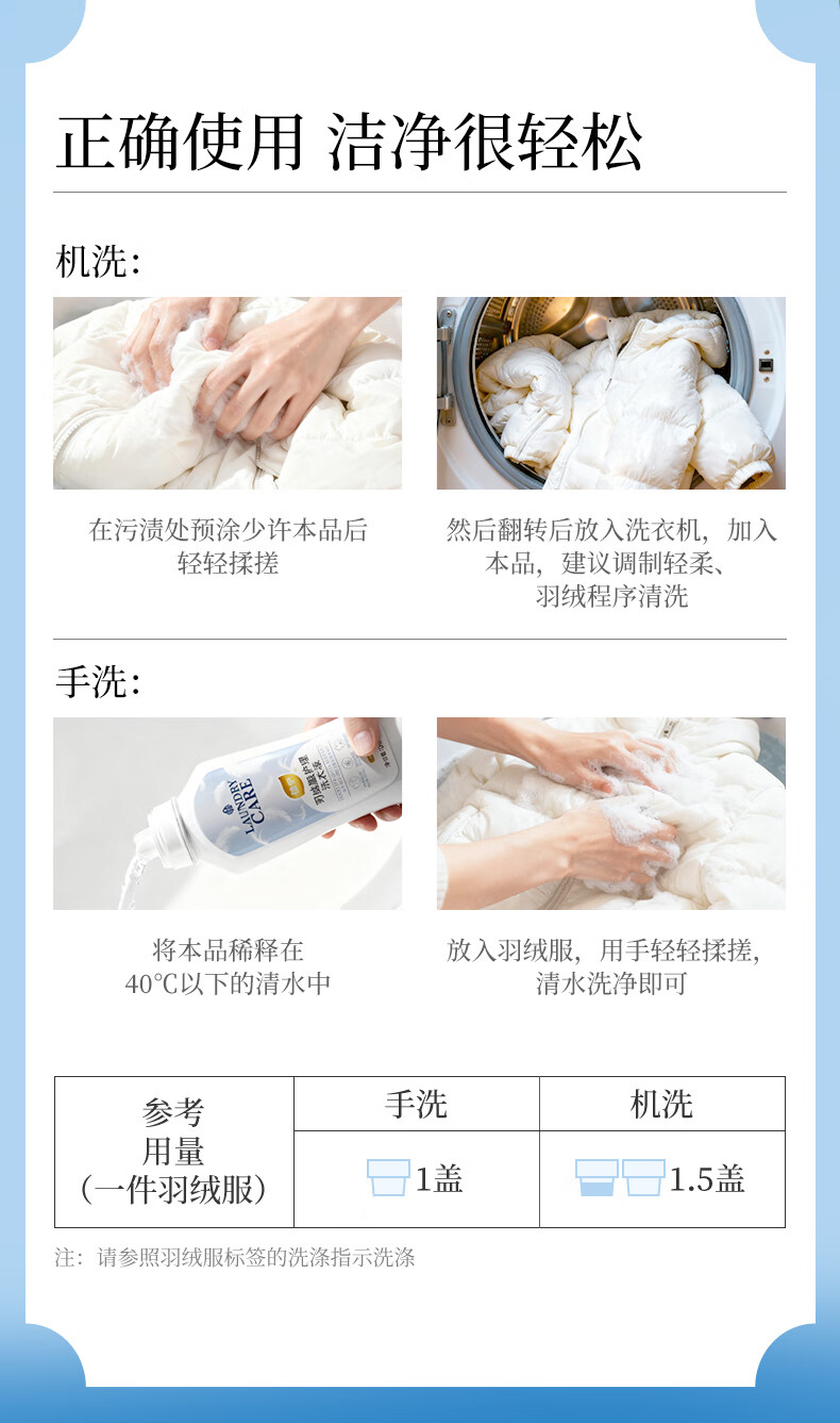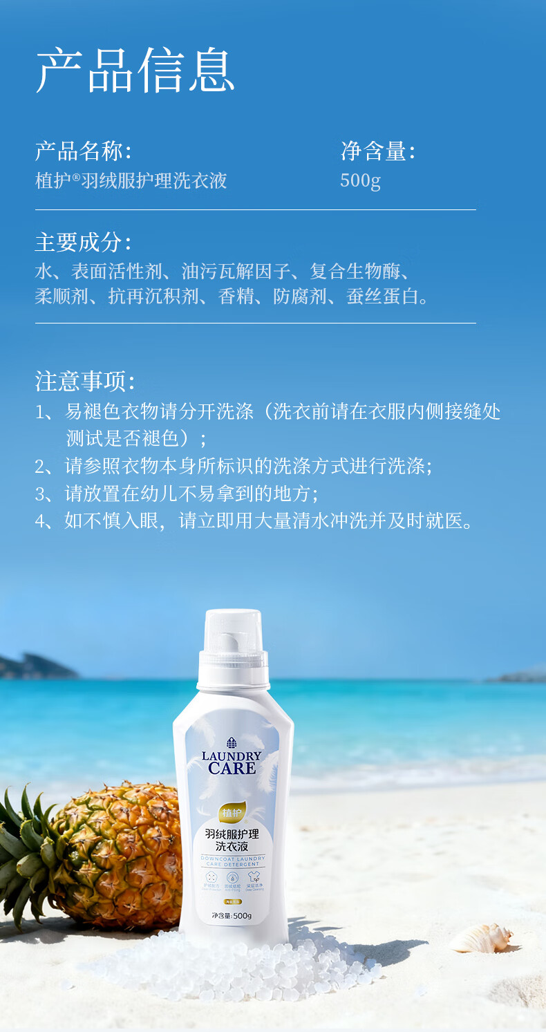 植护羽绒服专用洗衣液清洗剂除菌除螨深层清洁去污渍 500g*1瓶