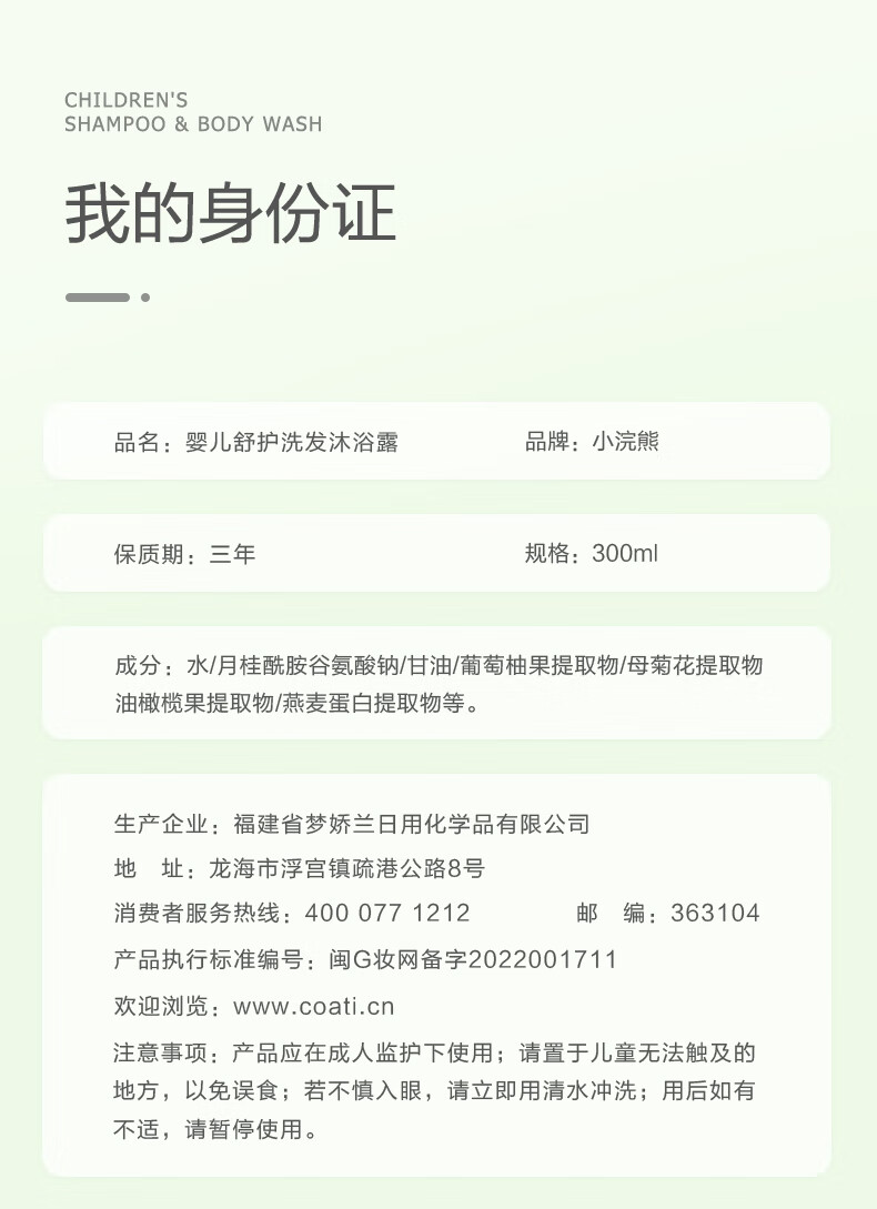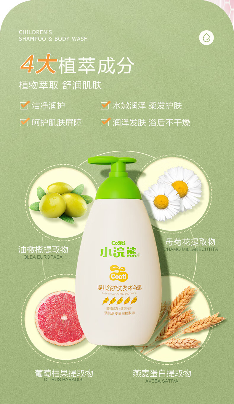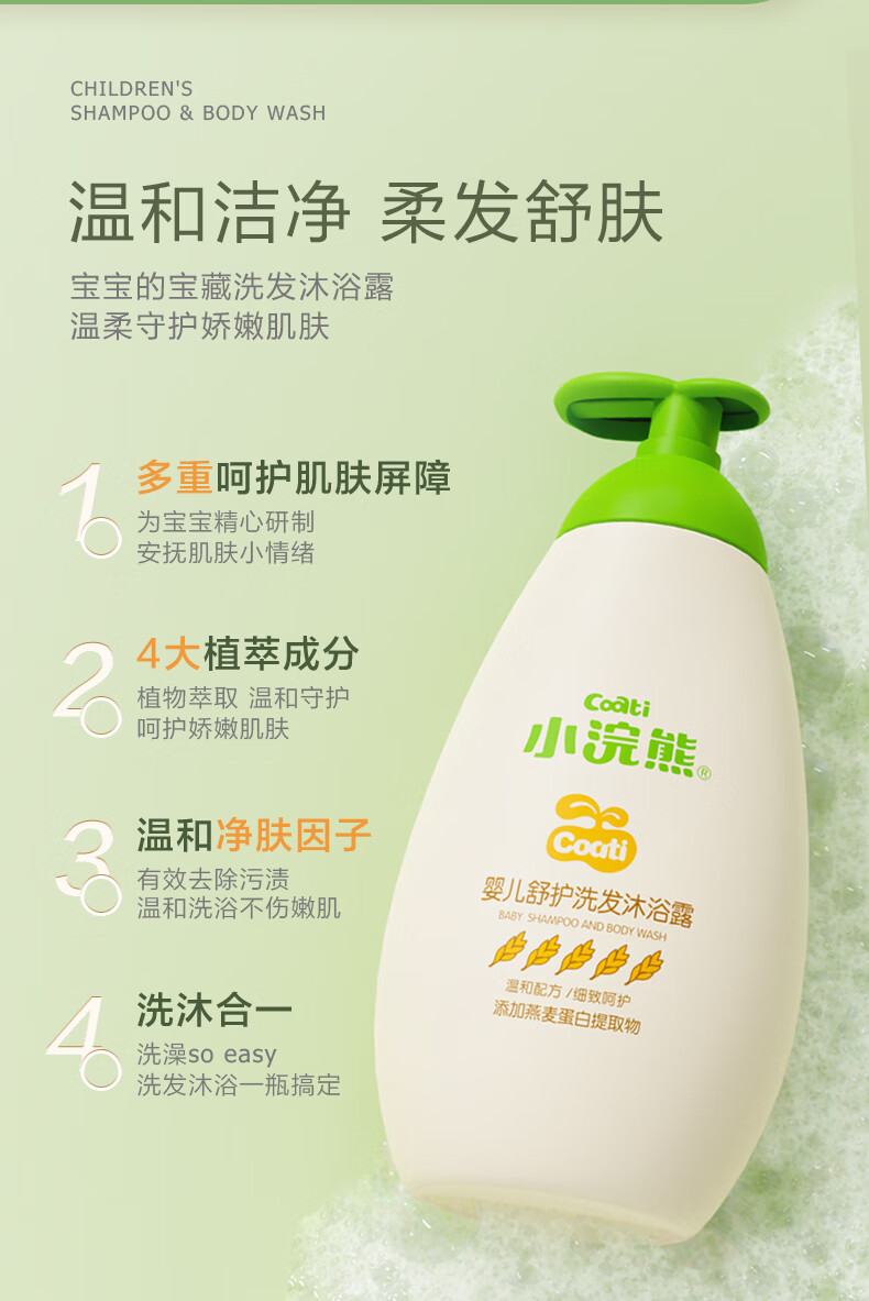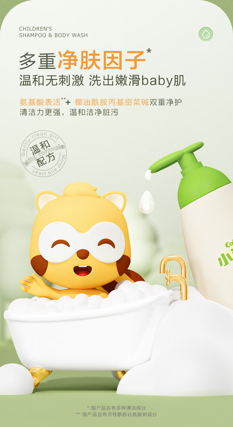 小浣熊 婴儿沐浴露洗发水洗护二合一 300ml