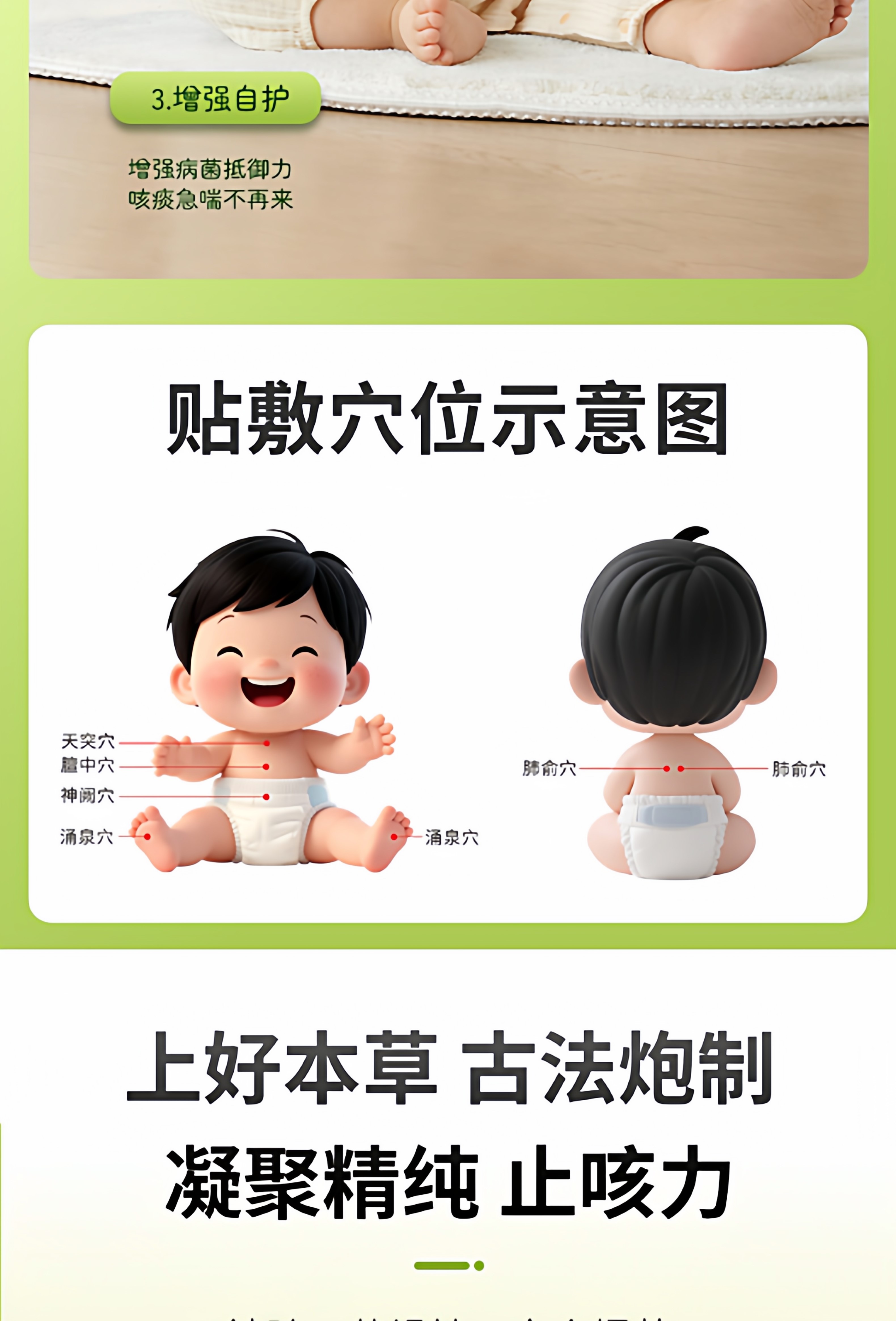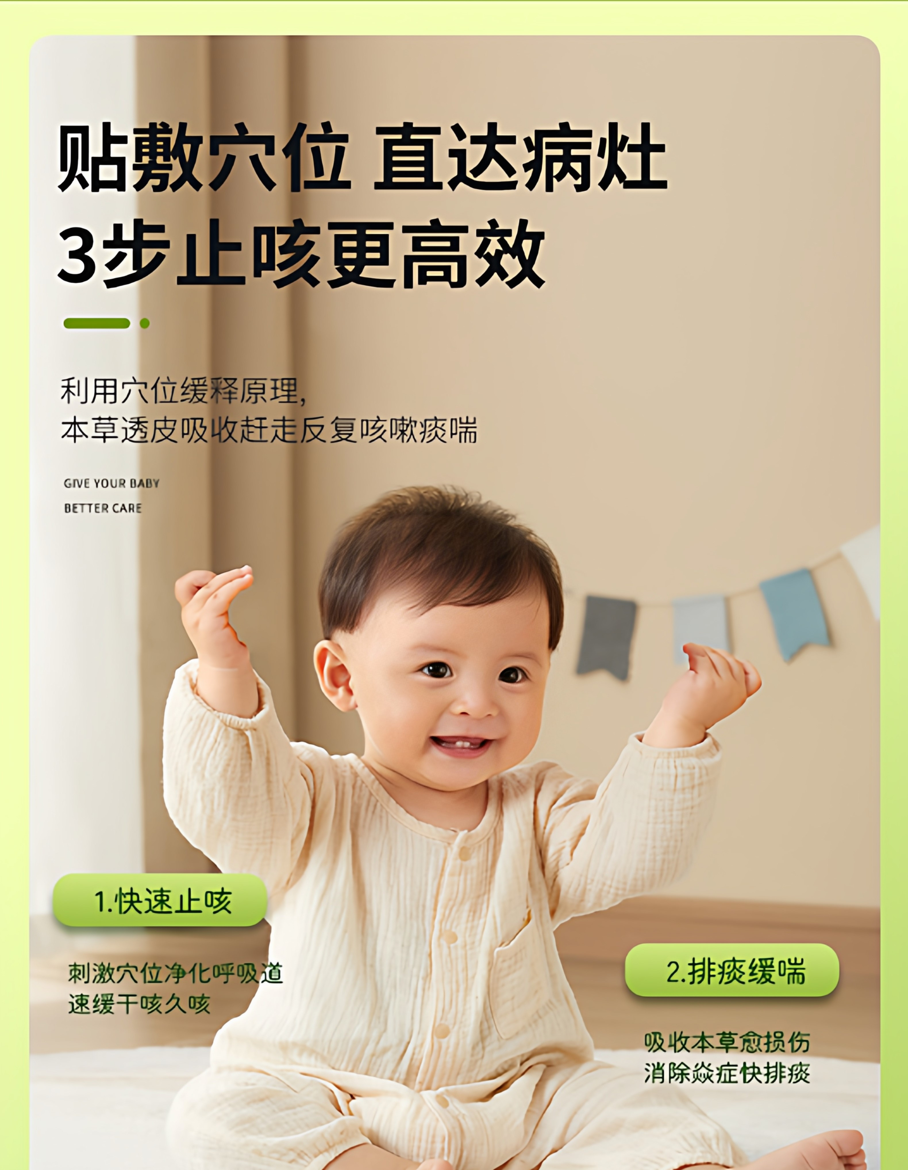幼诺星止咳贴小儿咳喘化痰贴咳止化痰中草药贴咳嗽贴外用穴位贴 一盒装8贴/盒