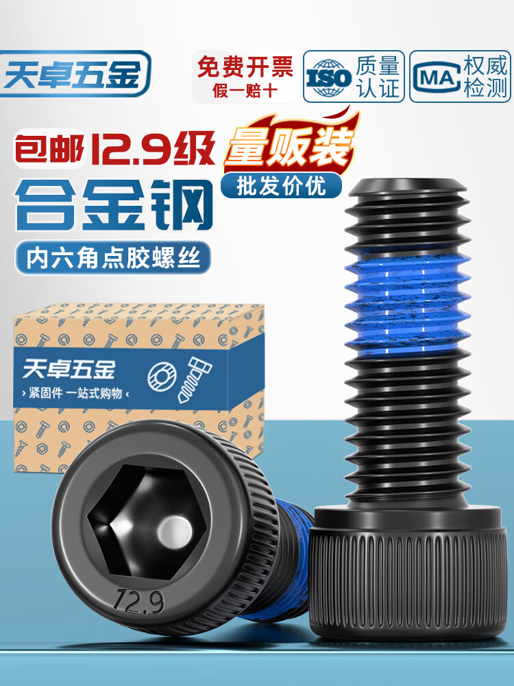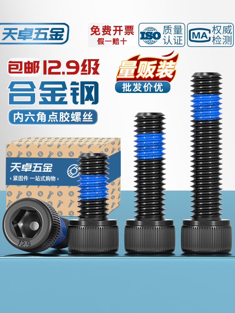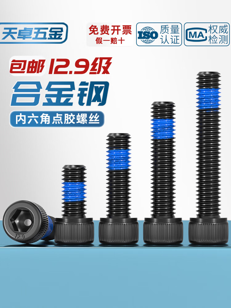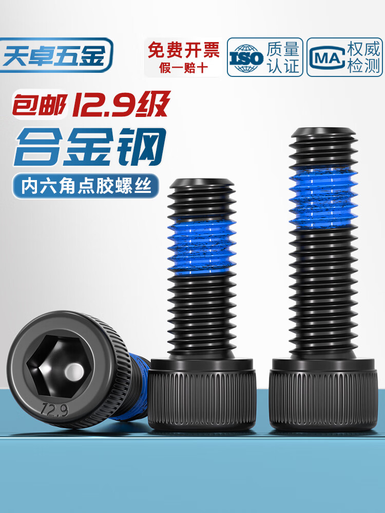 天卓五金12.9级高强度内六角耐脱螺丝钉防松点胶防震涂胶螺丝M2M3M4M5M6M8 -螺丝表层 涂有【防锈油】-