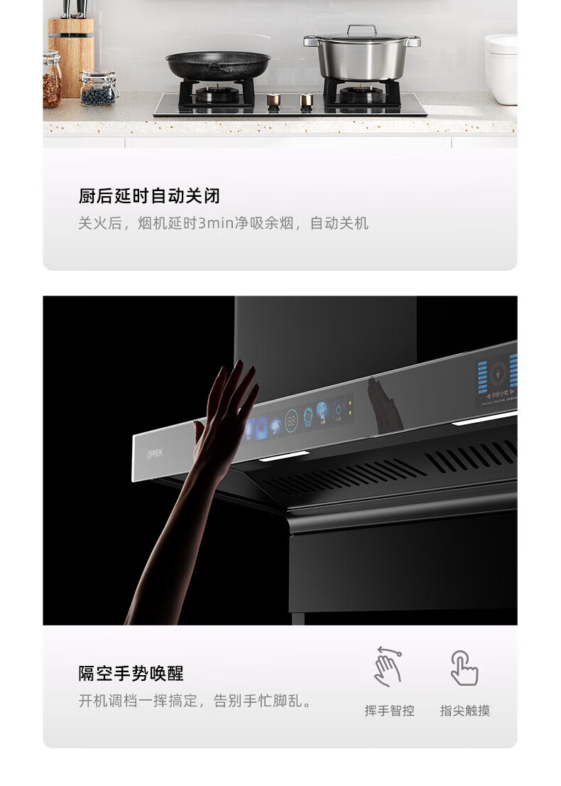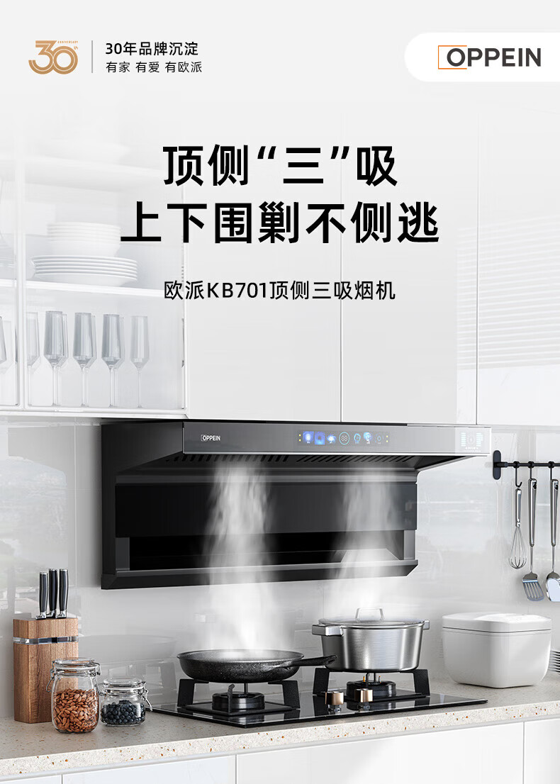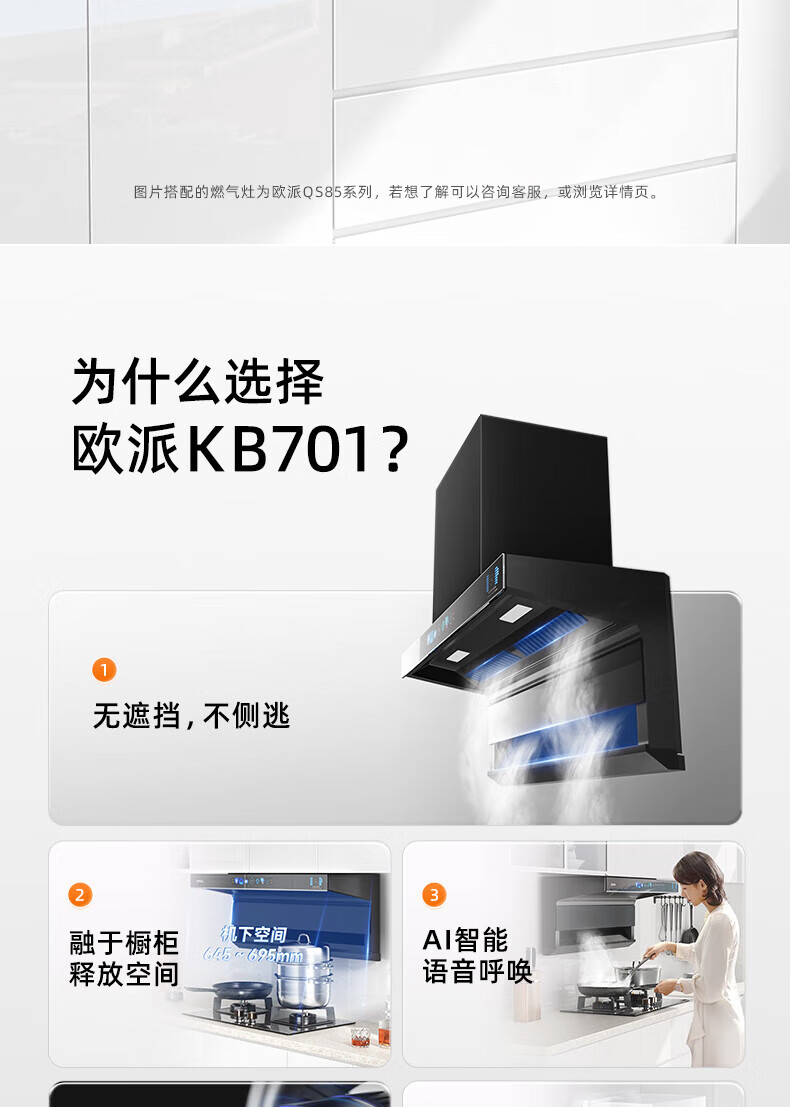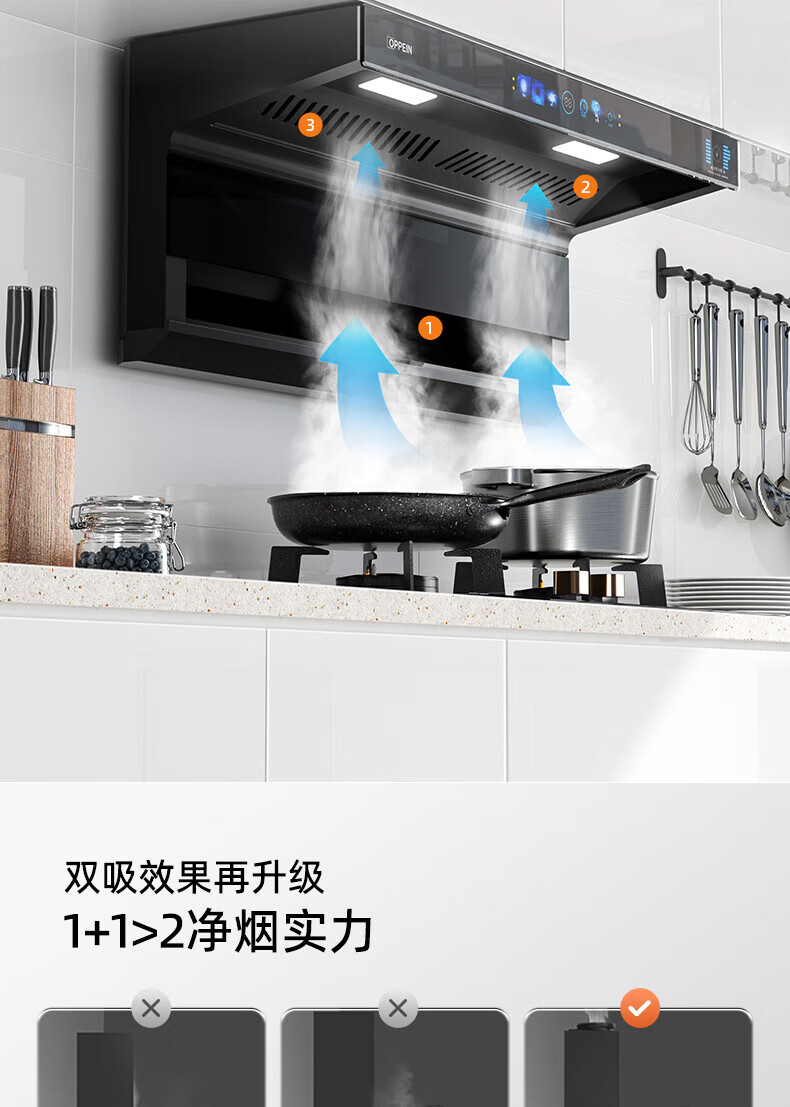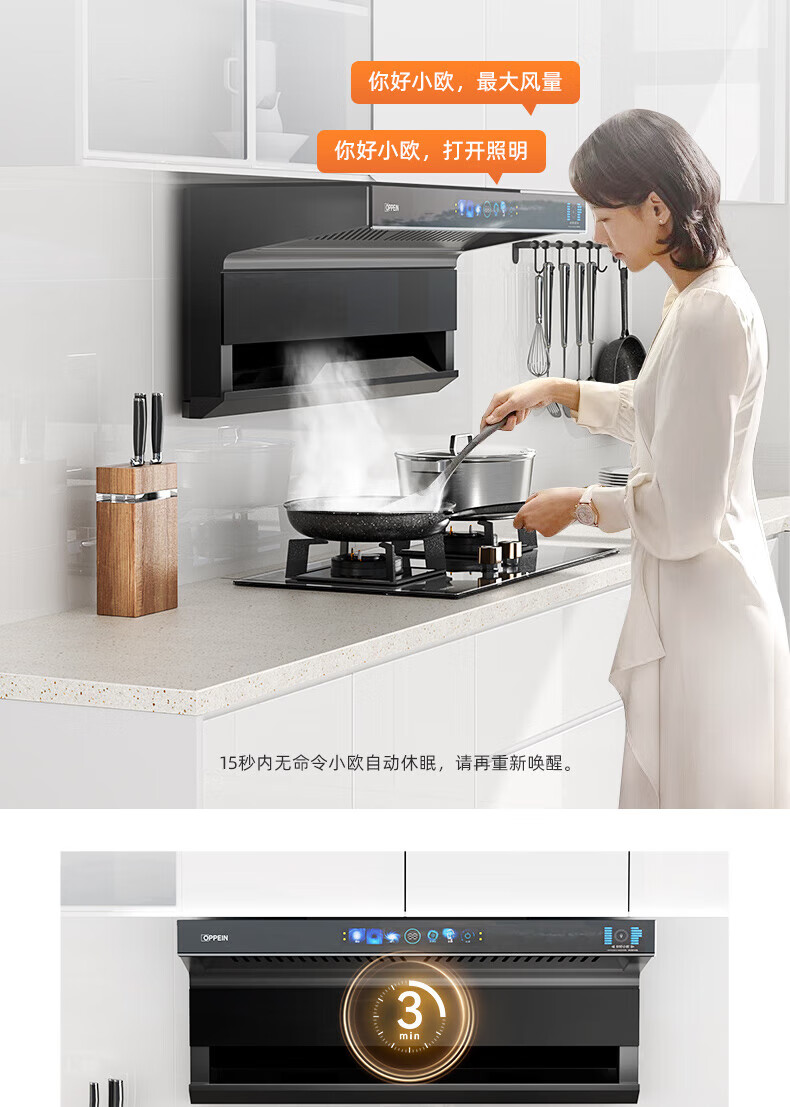 欧派(OPPEIN)顶侧双吸油烟机家用超薄大吸力7字型智能体感控制 三速爆吸大风量烟灶套装一级能效 【三面顶侧吸】-AI语音智能控制