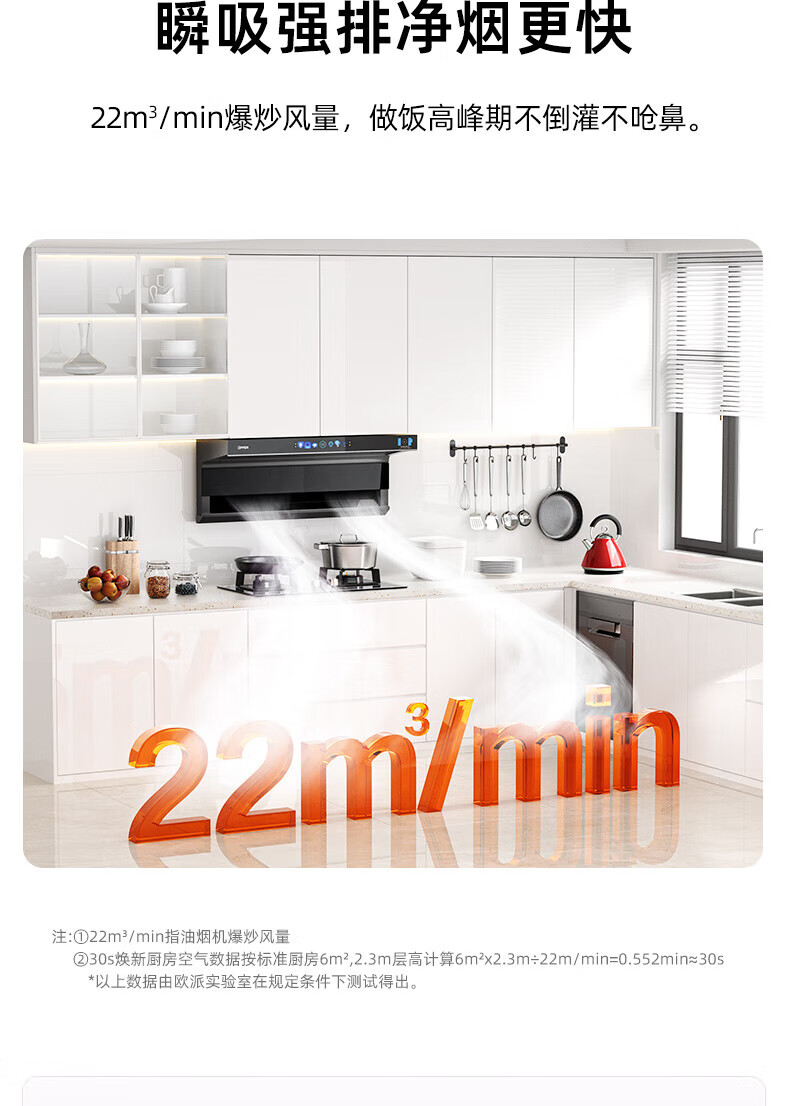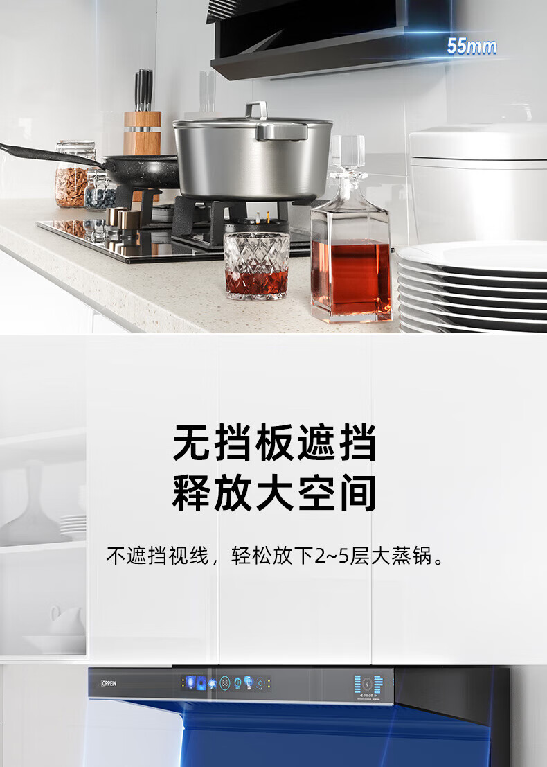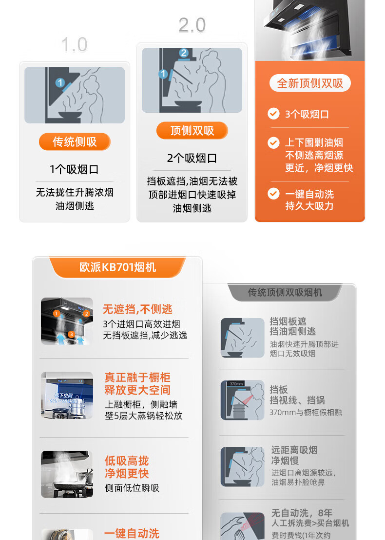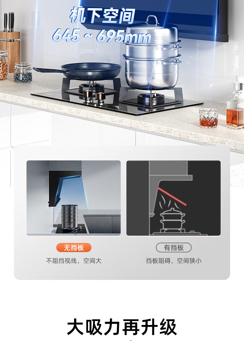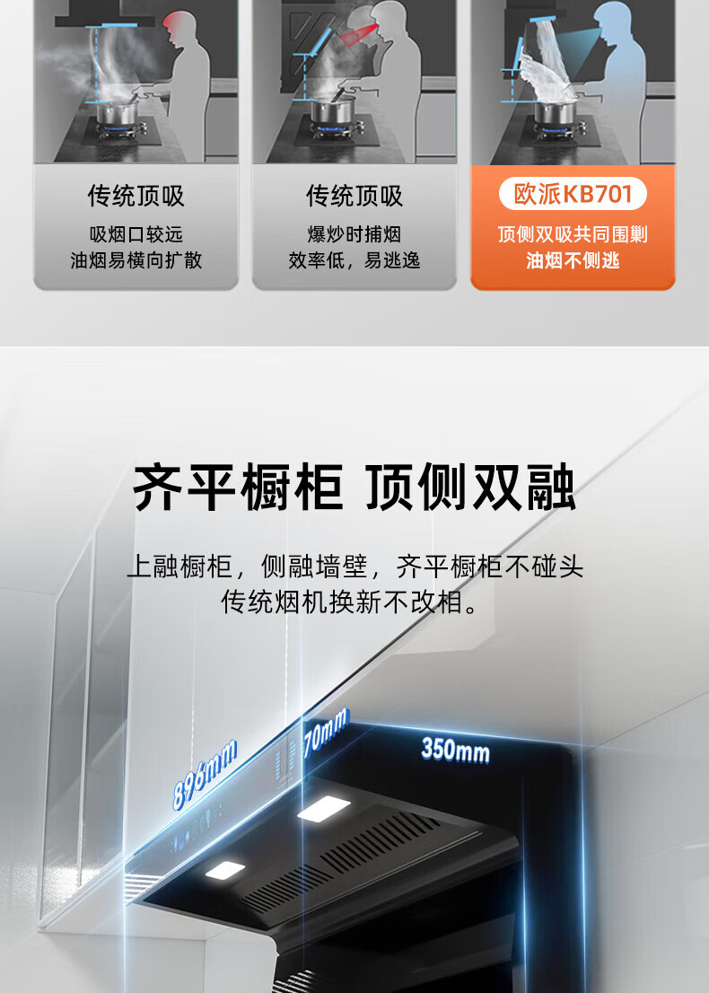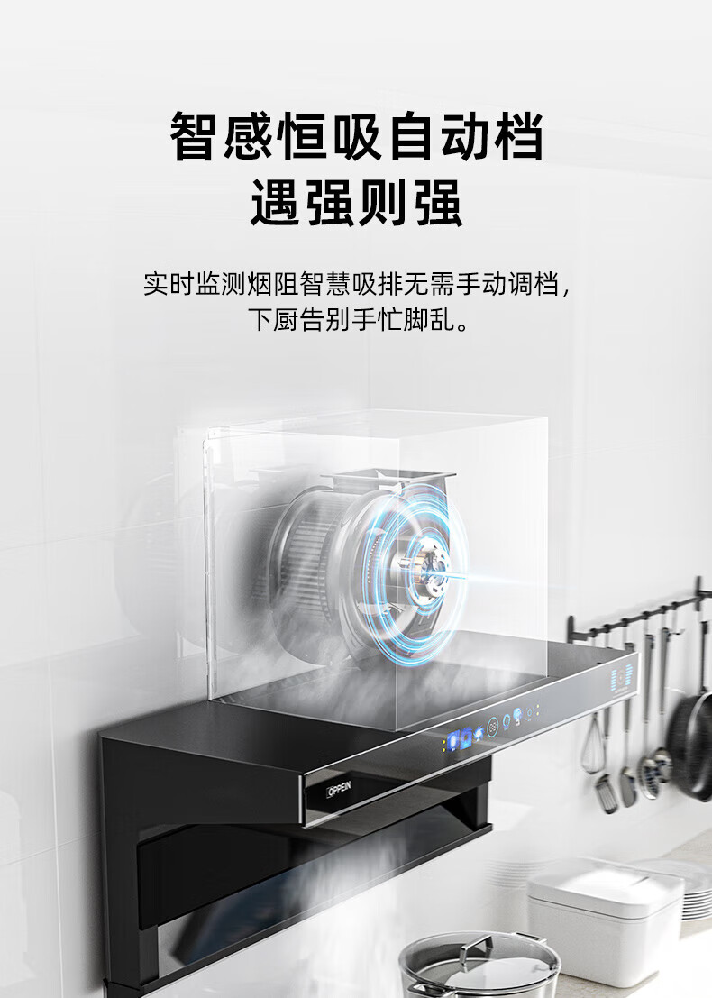 欧派(OPPEIN)顶侧双吸油烟机家用超薄大吸力7字型智能体感控制 三速爆吸大风量烟灶套装一级能效 【三面顶侧吸】-AI语音智能控制