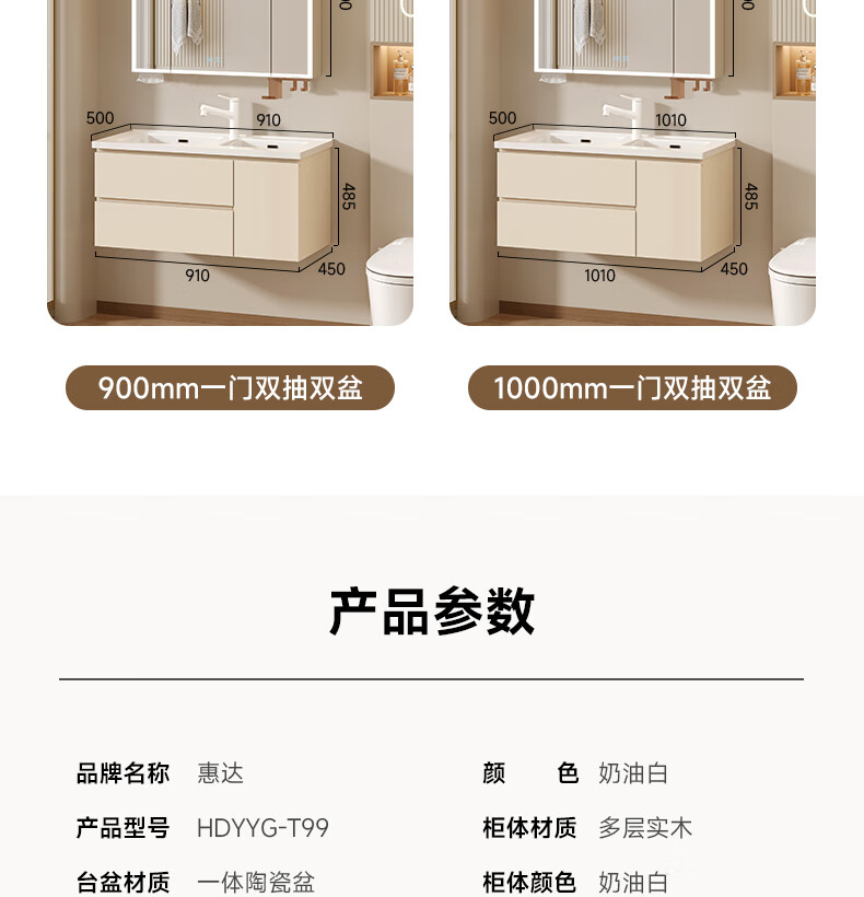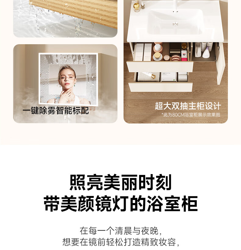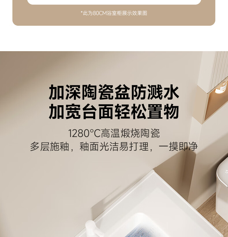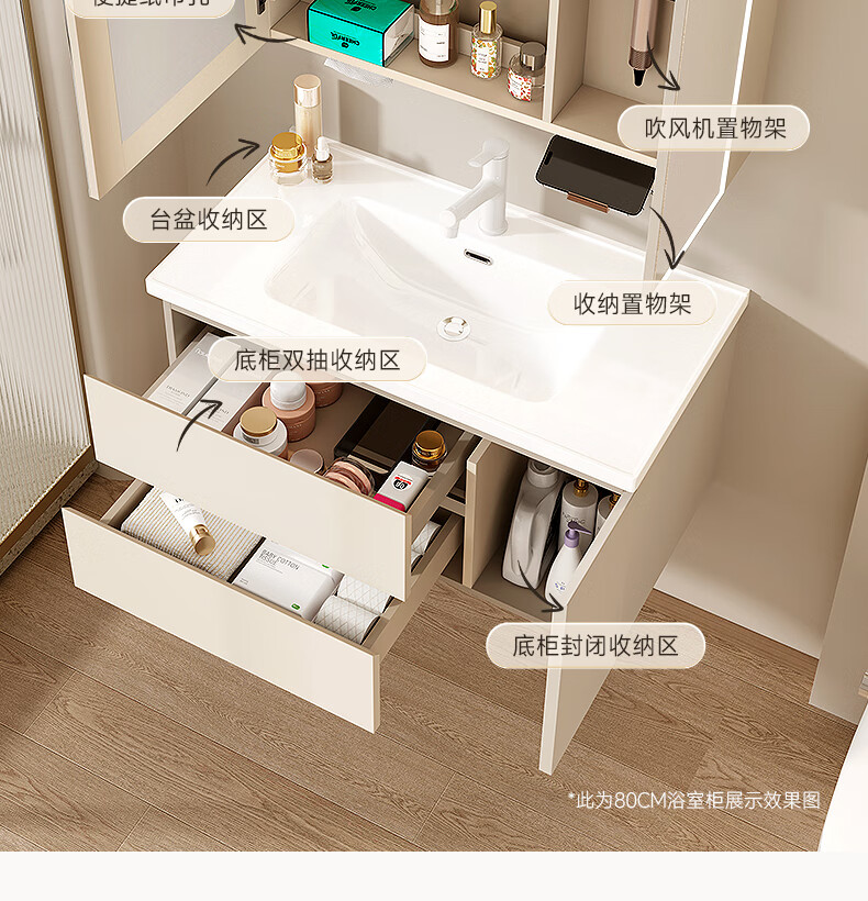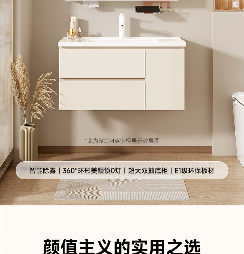 惠达(HUIDA)智能浴室柜陶瓷一体盆卫生间洗脸盆柜组合T99 80cm