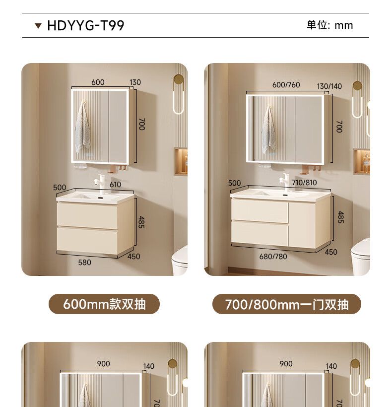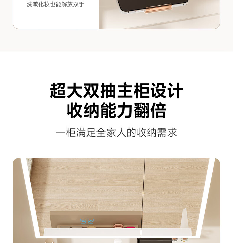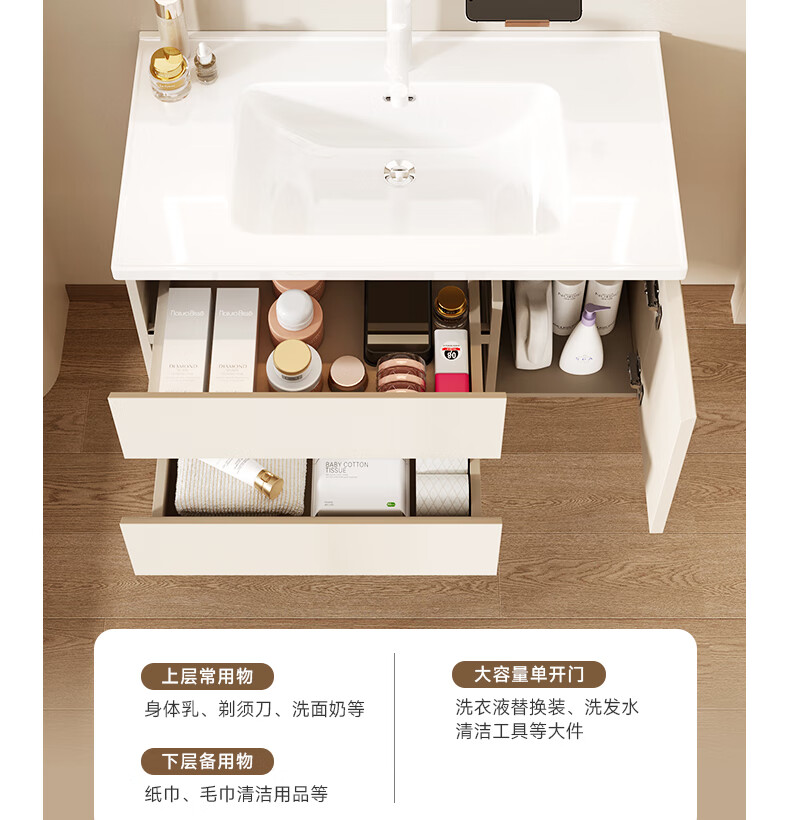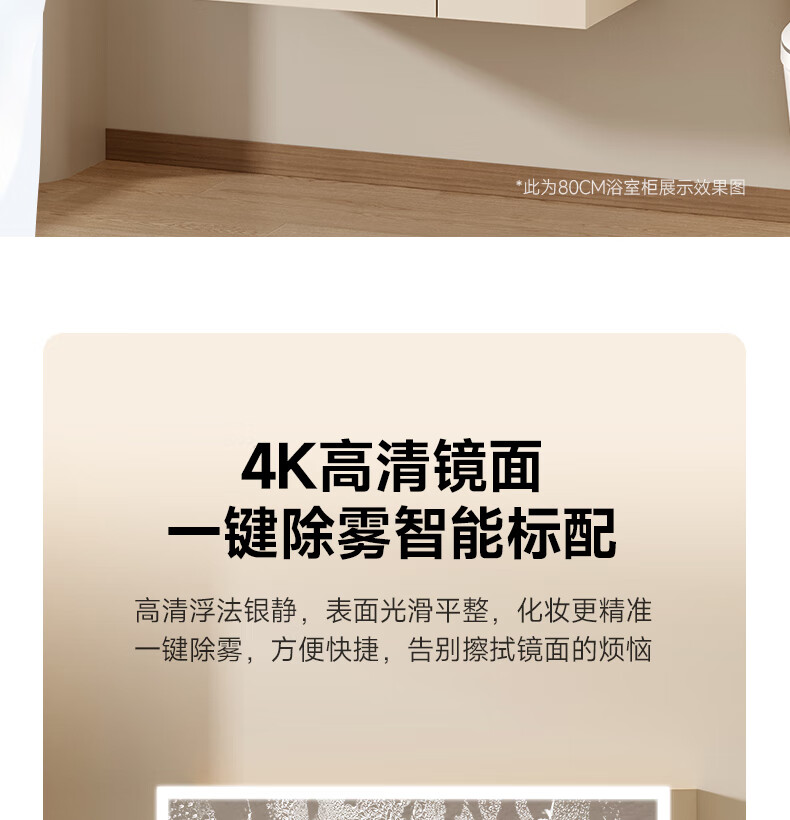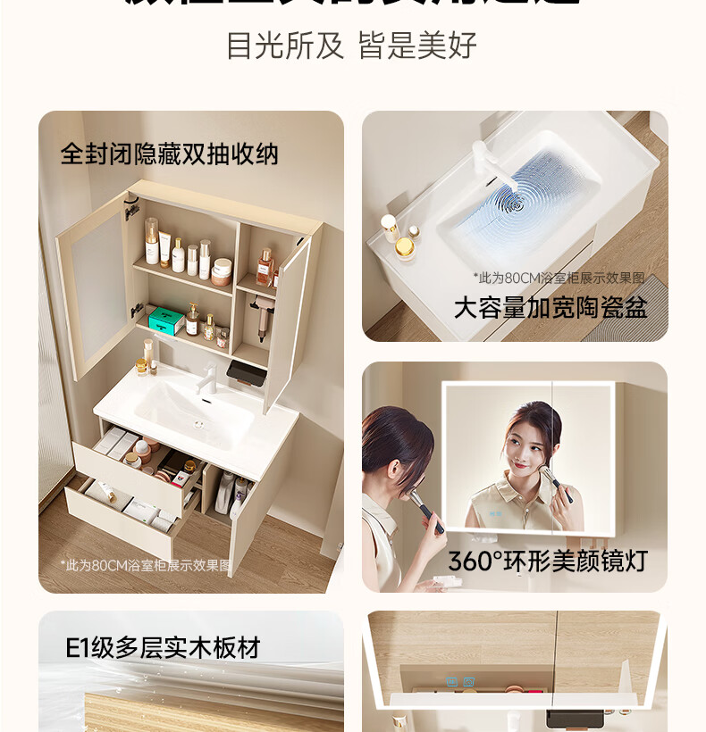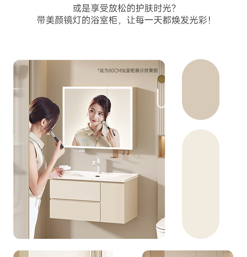 惠达(HUIDA)智能浴室柜陶瓷一体盆卫生间洗脸盆柜组合T99 80cm