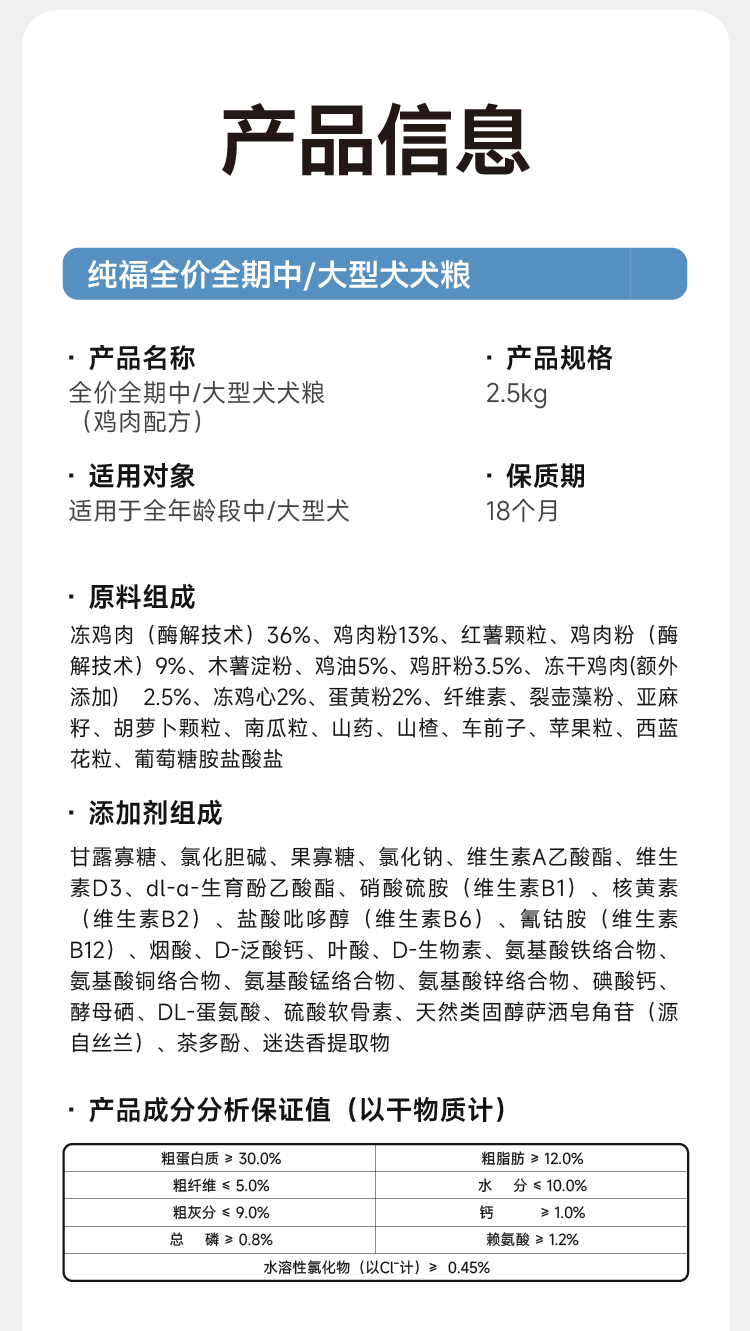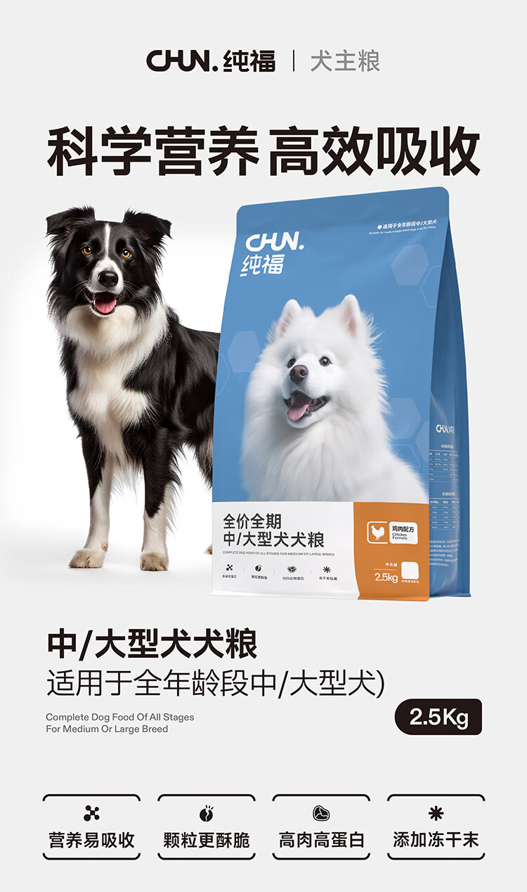 纯福通用型金毛拉布拉多边牧中型犬大型犬幼犬成犬专用酶解冻干狗粮 中大型犬粮12.5kg【5包囤货装】