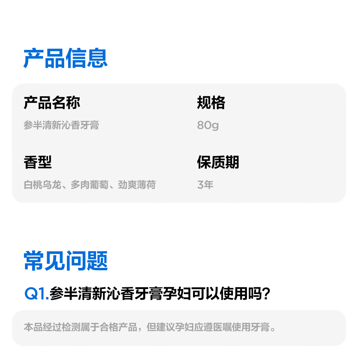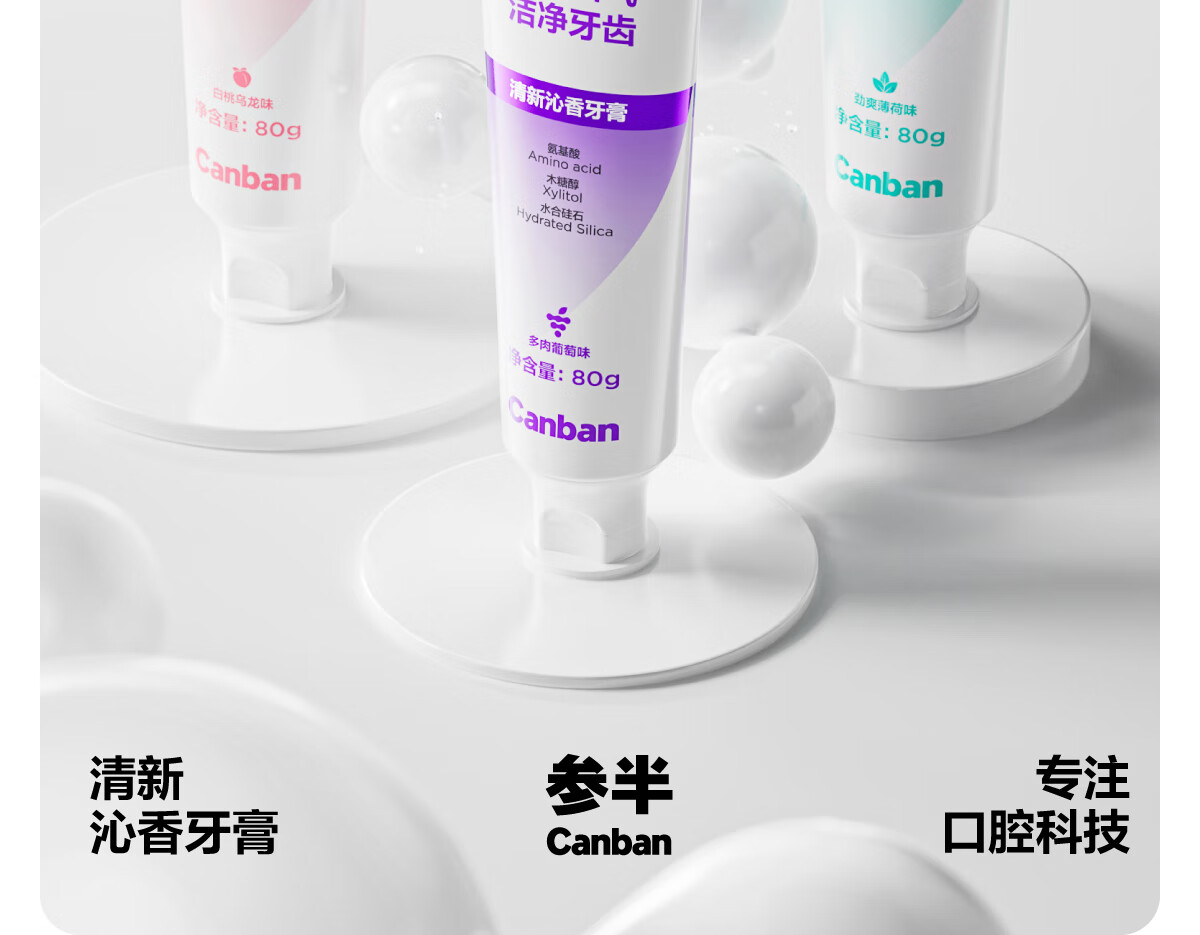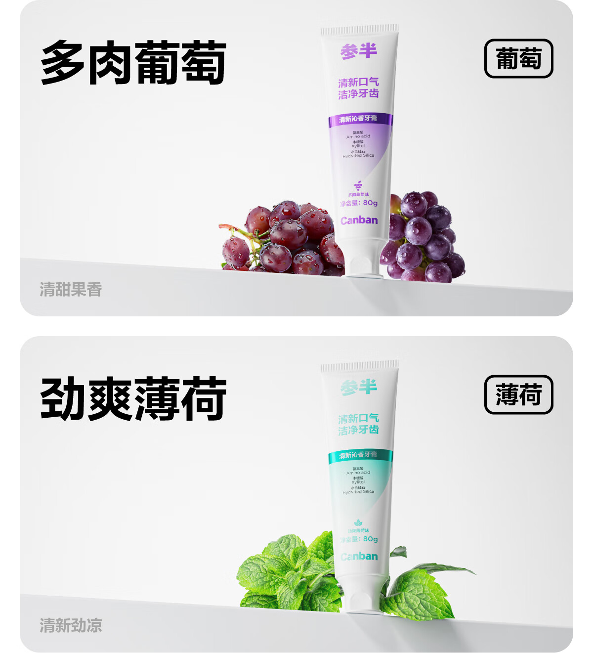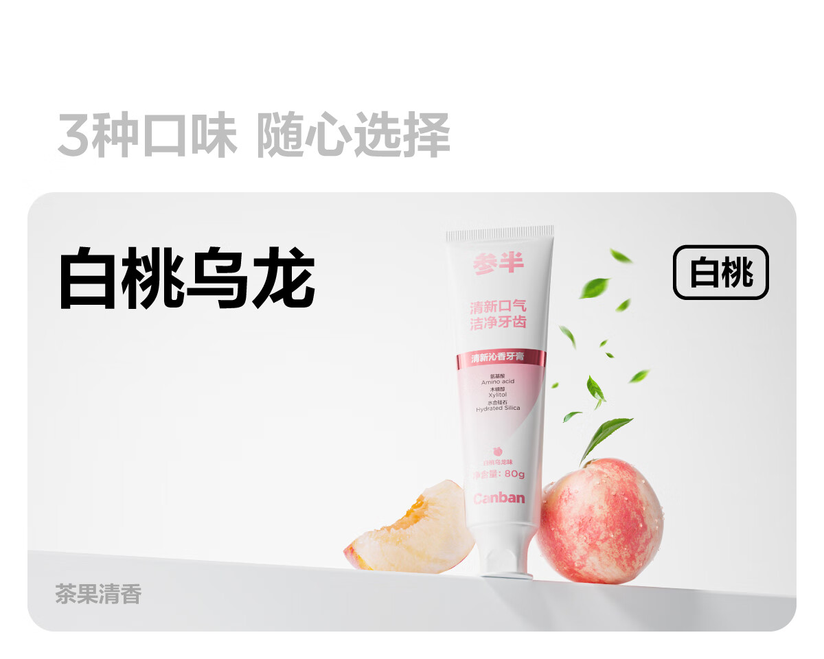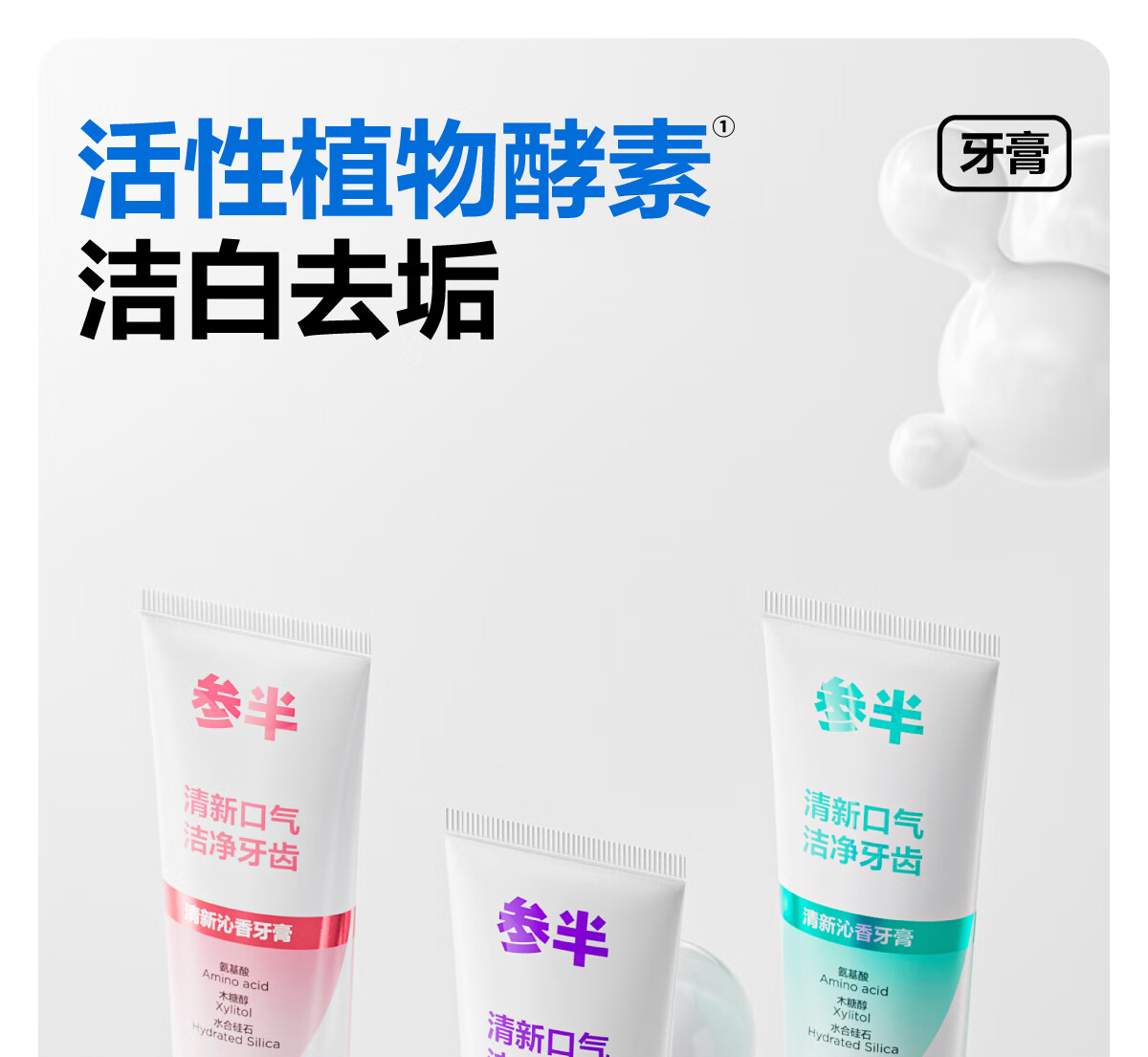 参半清新沁香牙膏 活性植物酵素美白绵密泡沫清新护龈组合装80g*3