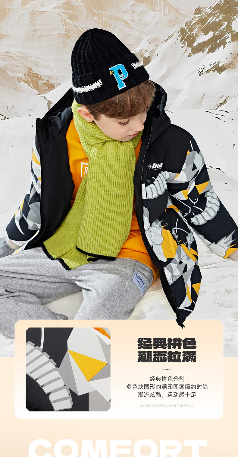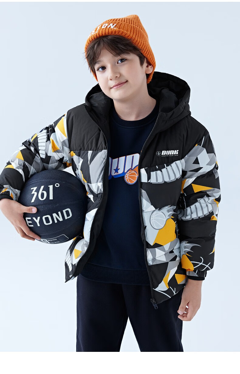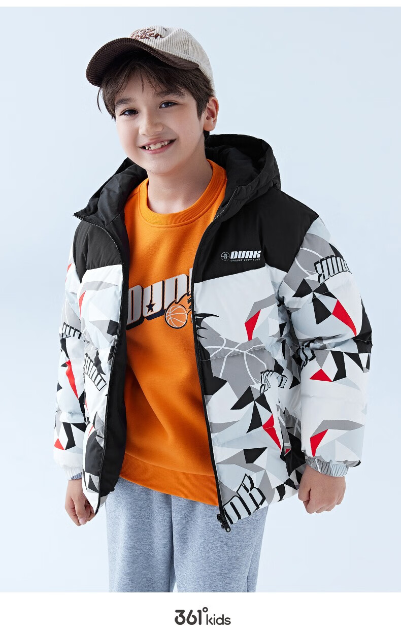 361°童装儿童羽绒服男中大童防风保暖外套冬季新款学生潮流羽绒服 电光橘 170