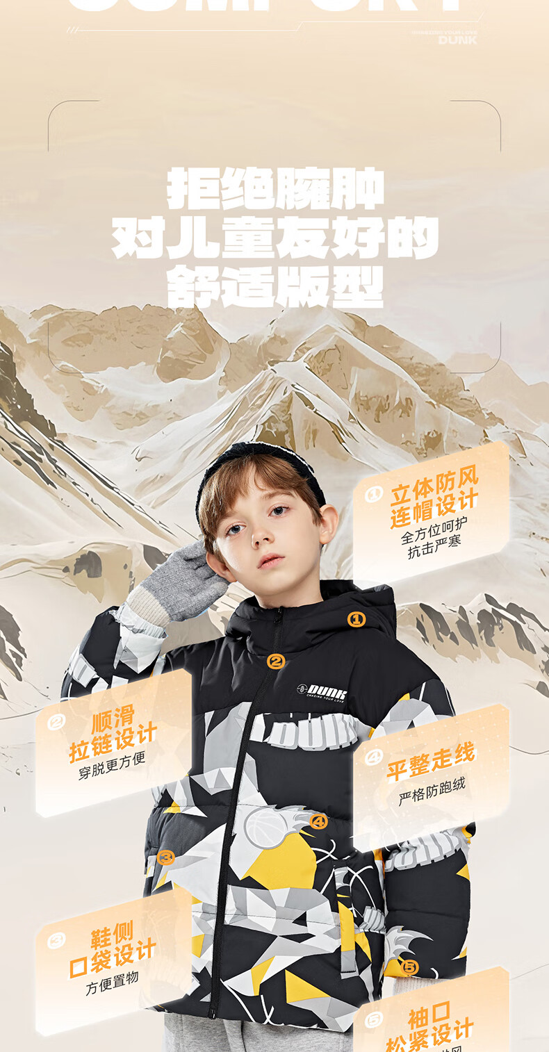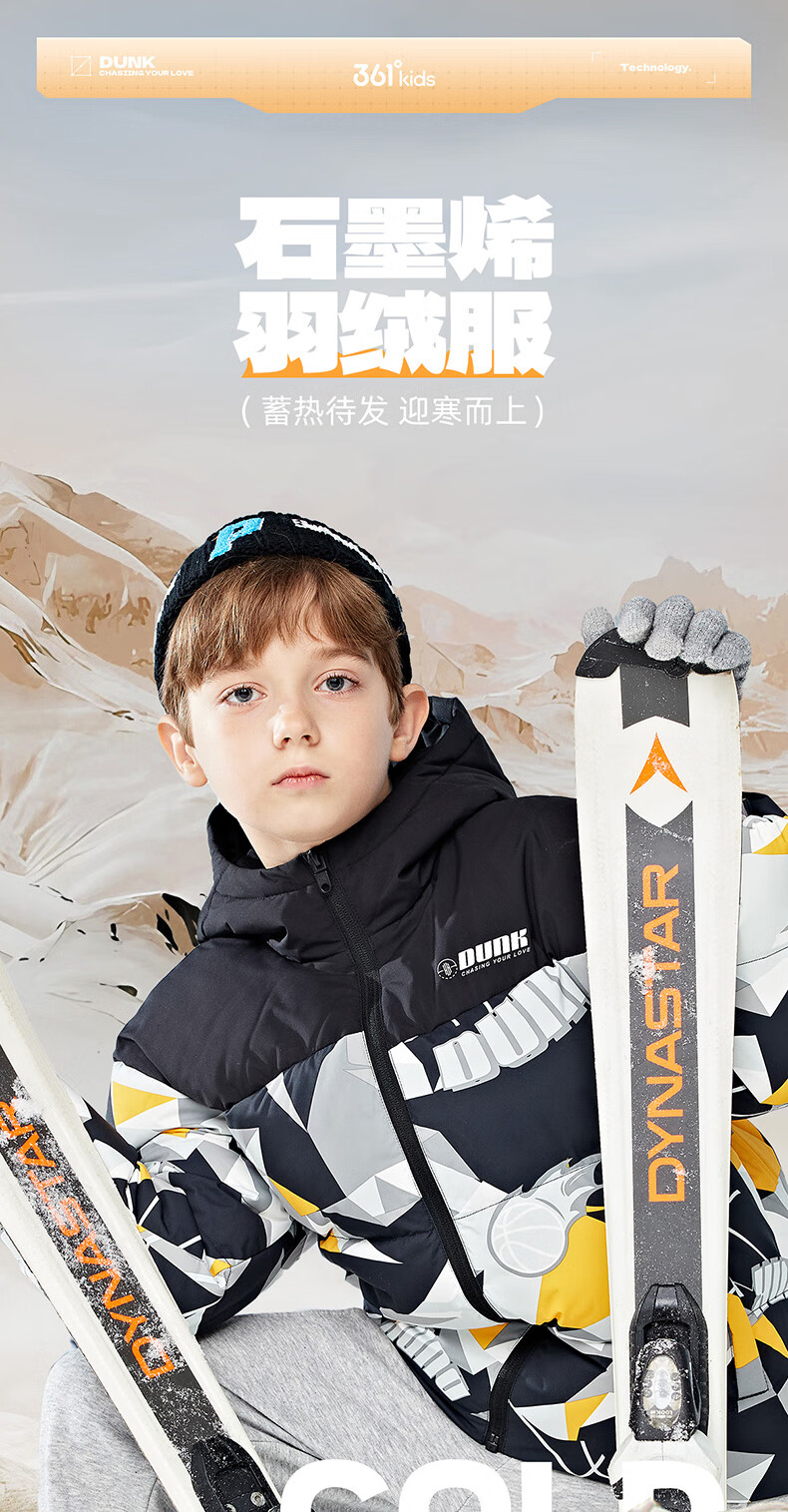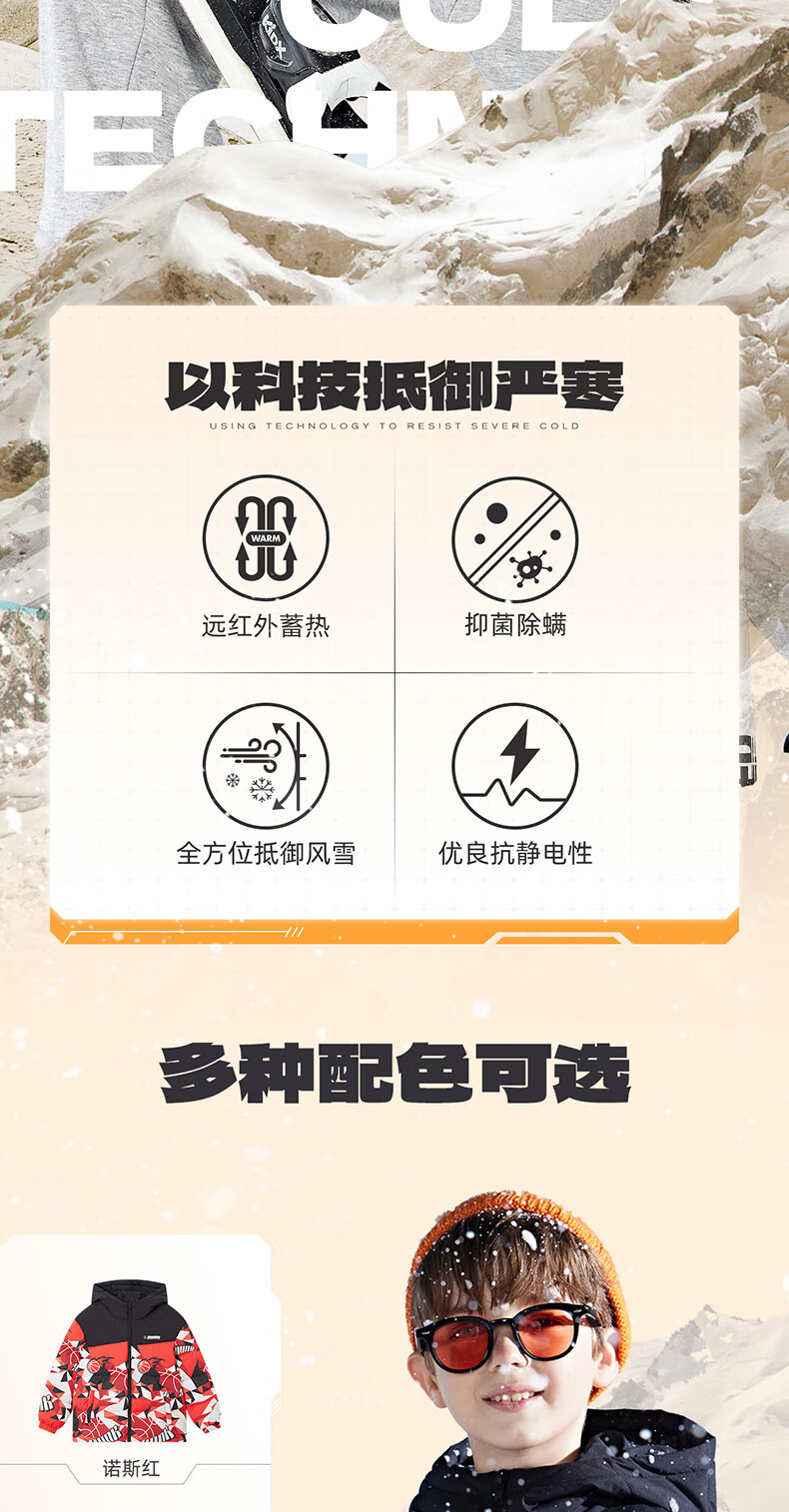 361°童装儿童羽绒服男中大童防风保暖外套冬季新款学生潮流羽绒服 电光橘 170