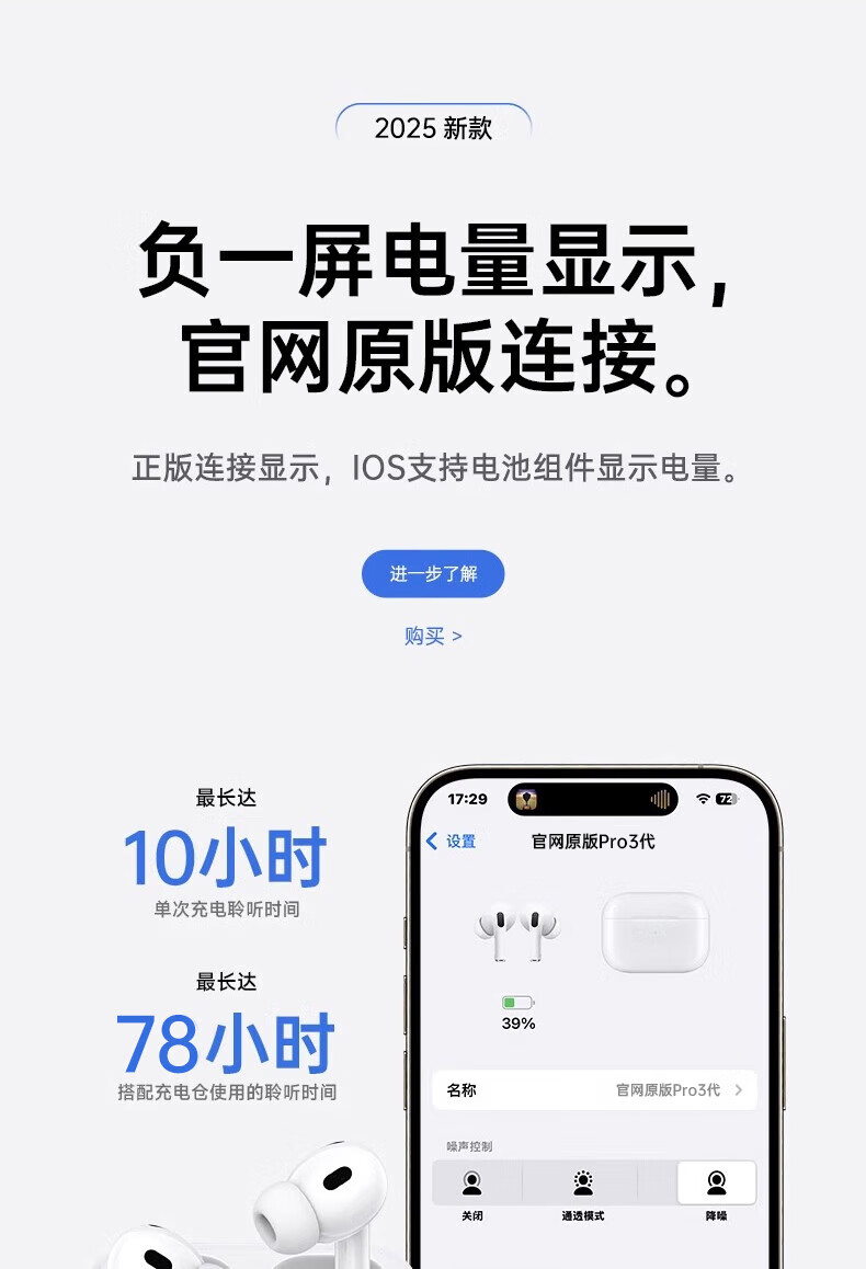 华强北新款【国家补贴丨顶配Pro3】华强北蓝牙耳机适用苹果真无线ANC主动降噪iphone17/16五代入耳式心率监测 【Pro3纯原版】1:1全功能体验丨-150db主动降噪 ANC主动降噪+测心率血氧+空间音频