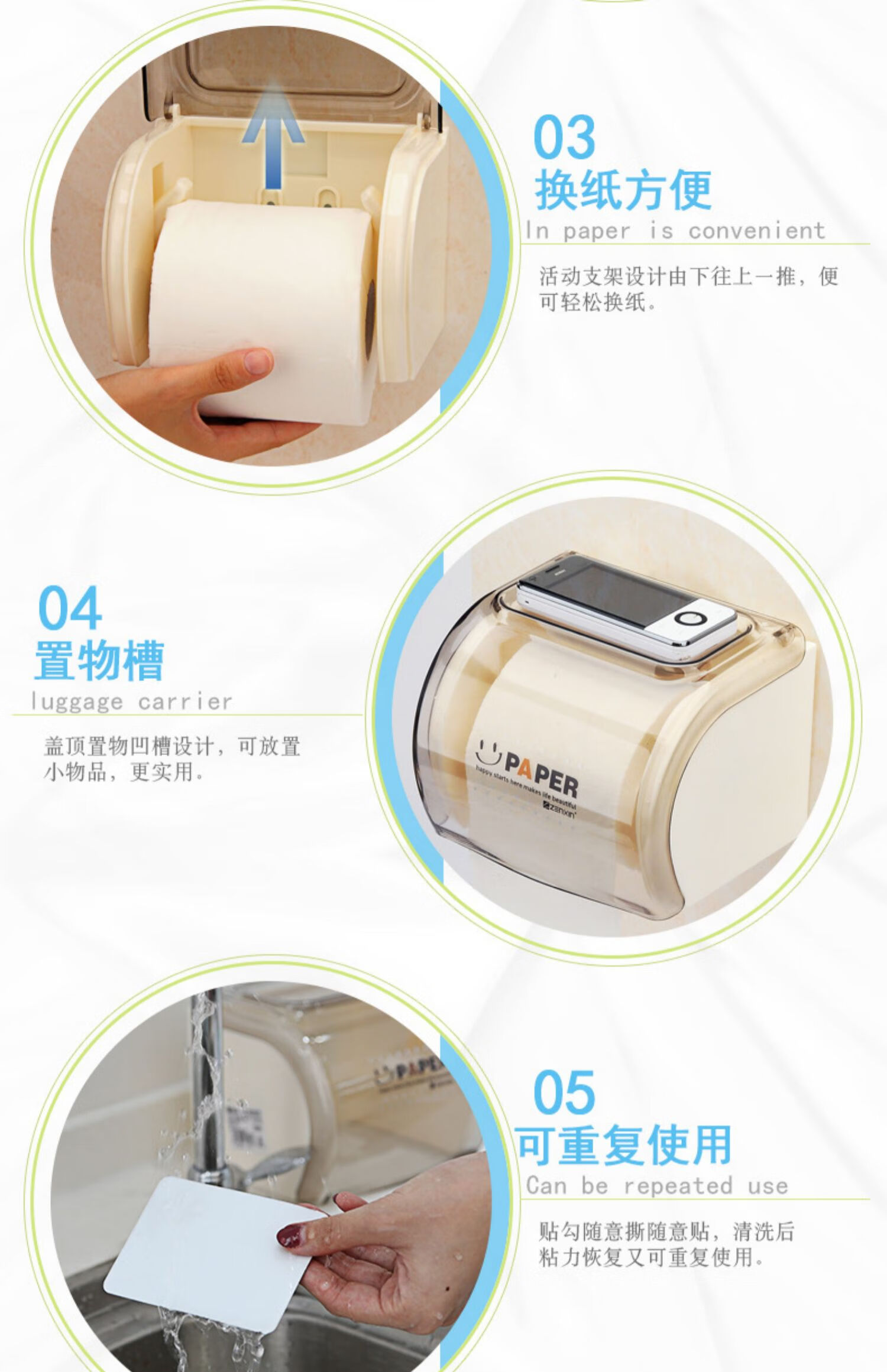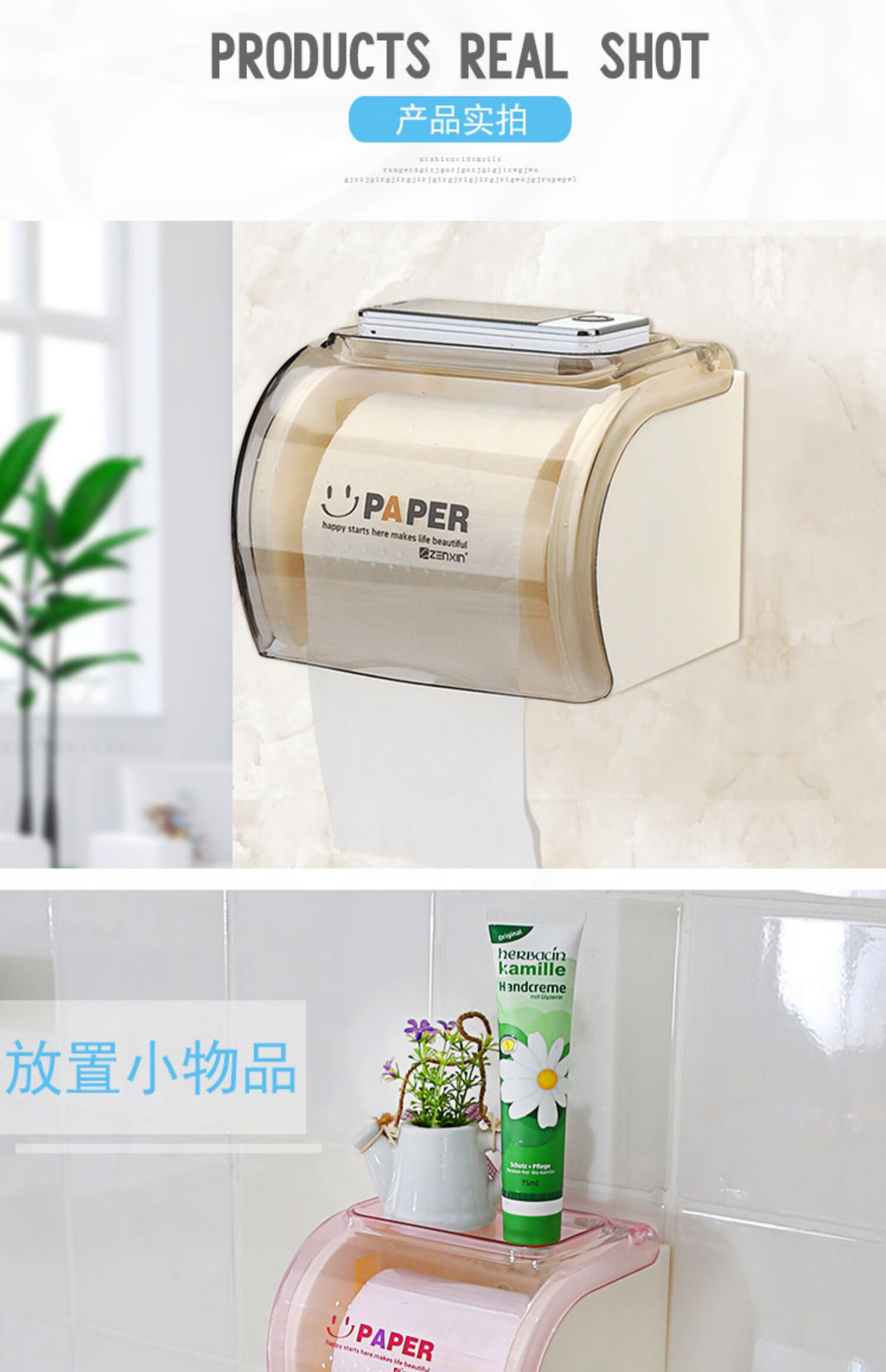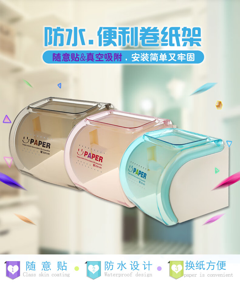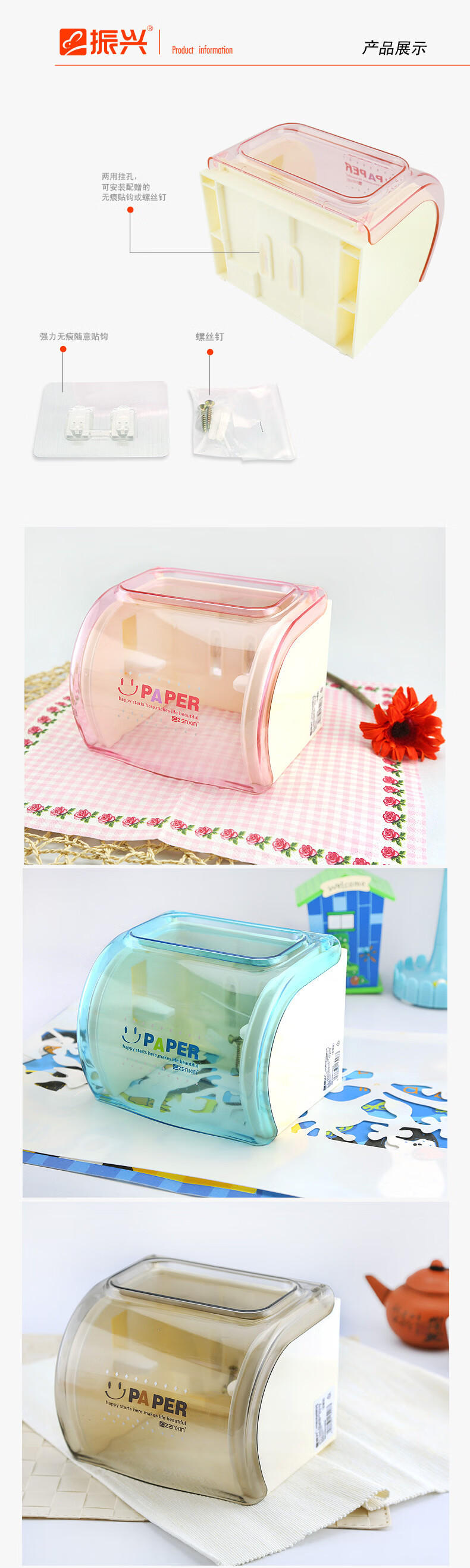 振兴厕所卷筒纸巾盒 浴室防水纸巾架 卫生间多功能壁挂墙免打孔纸巾筒 【品牌正品】经典咖 无痕贴片安装/螺丝固定安装/两用