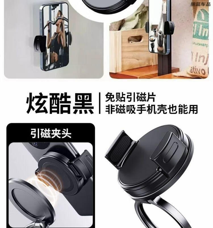 行后通用型车载磁吸手机夹头强磁吸附中控台防抖导航专用支架夹子配件 炫酷黑【单个磁吸背夹】非磁吸手机也能用