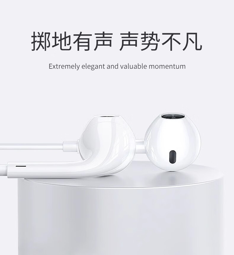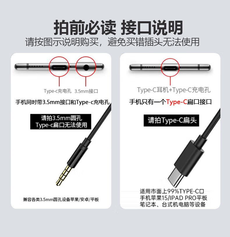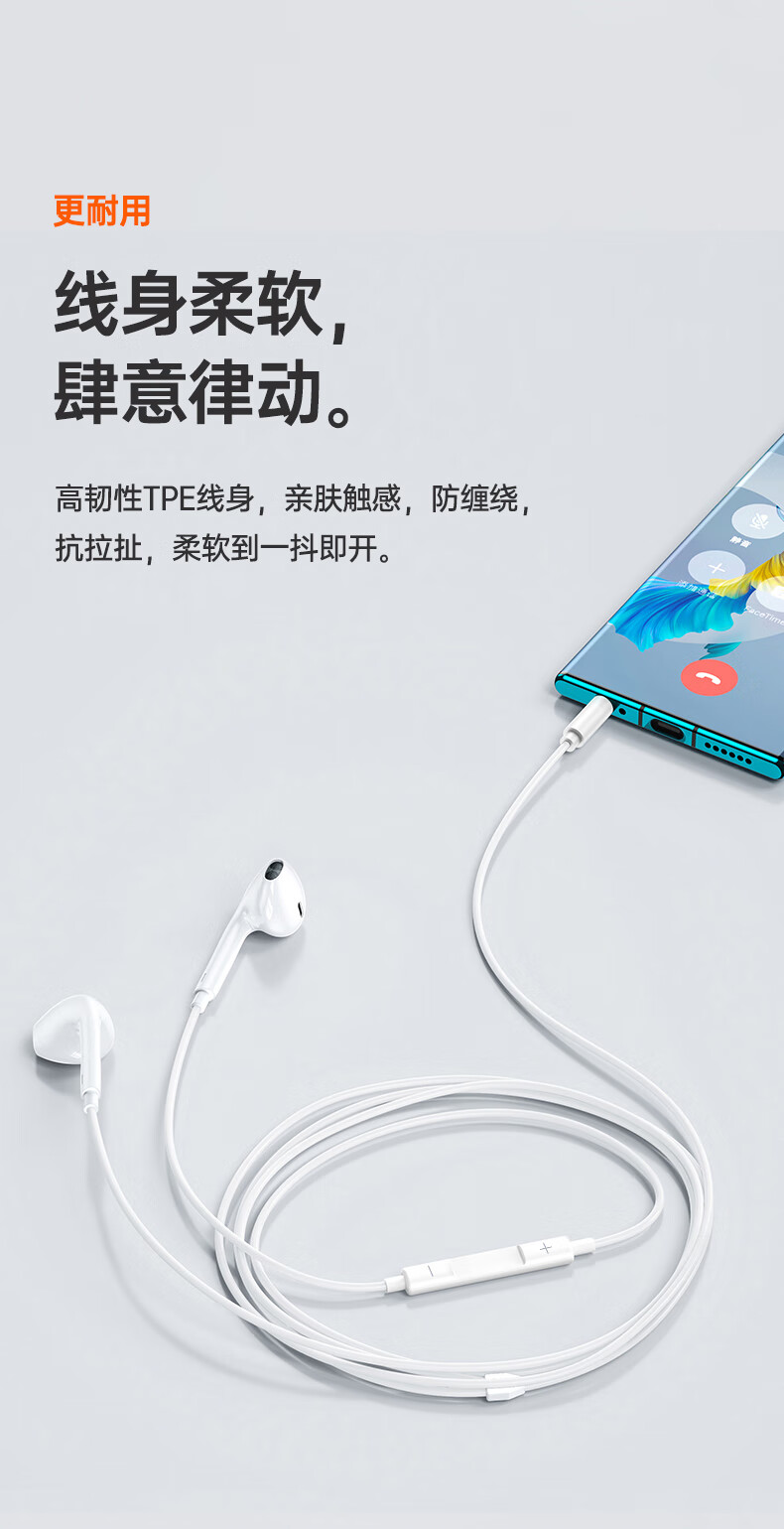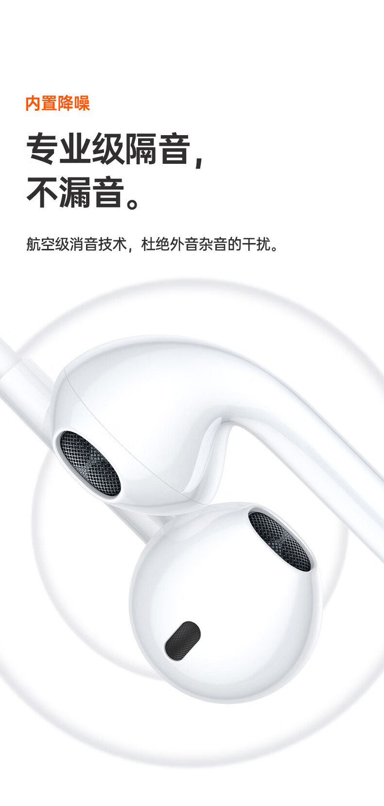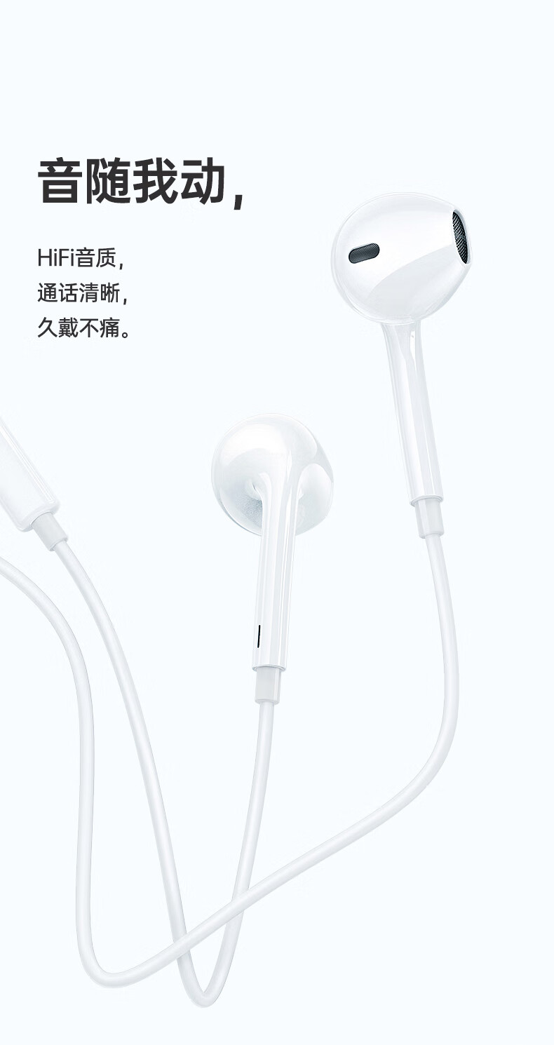 YOMO【原声版】Type-C耳机 扁口有线耳机游戏电竞耳机 适用于苹果华为小米oppo手机 苹果15/16-白色