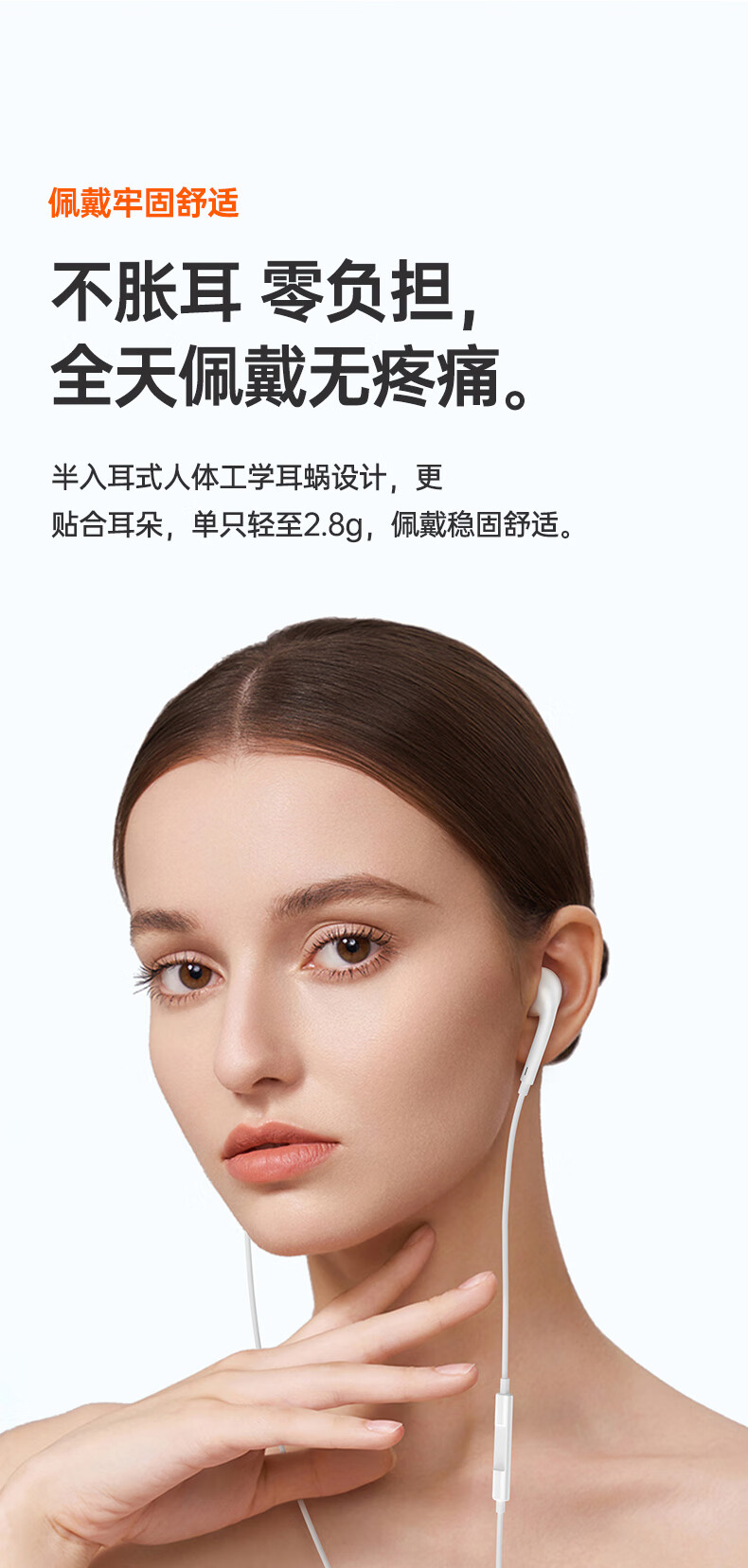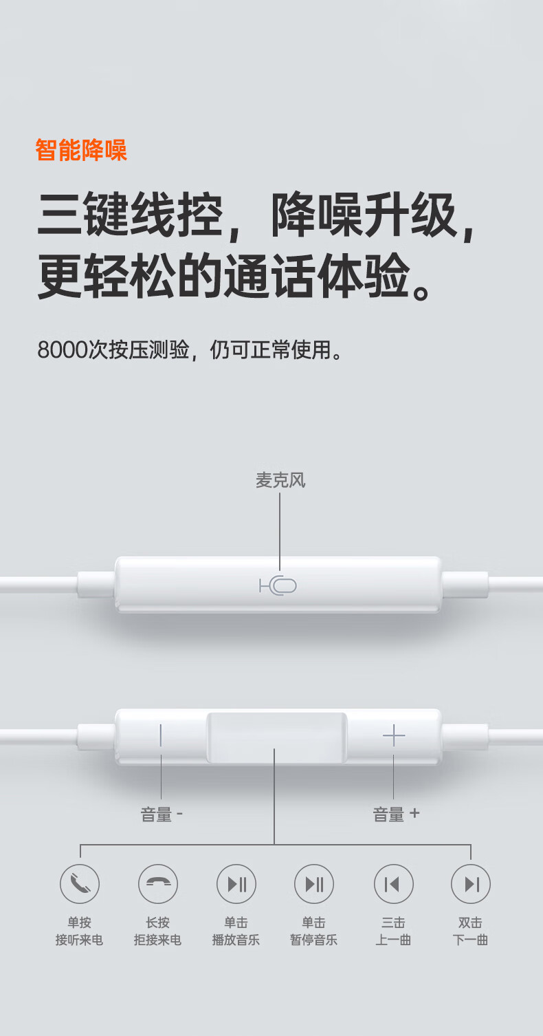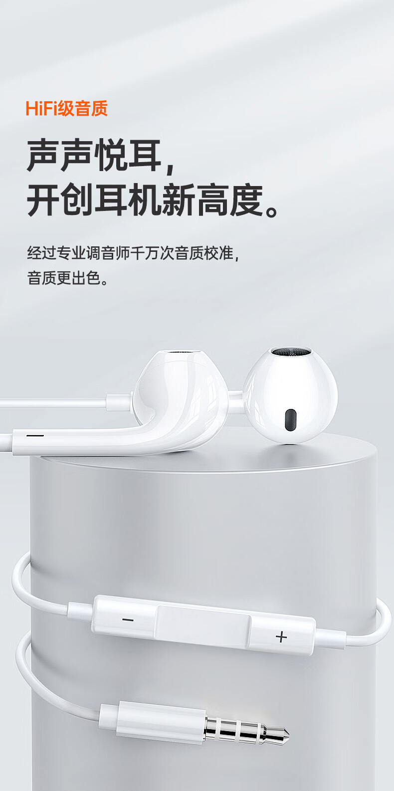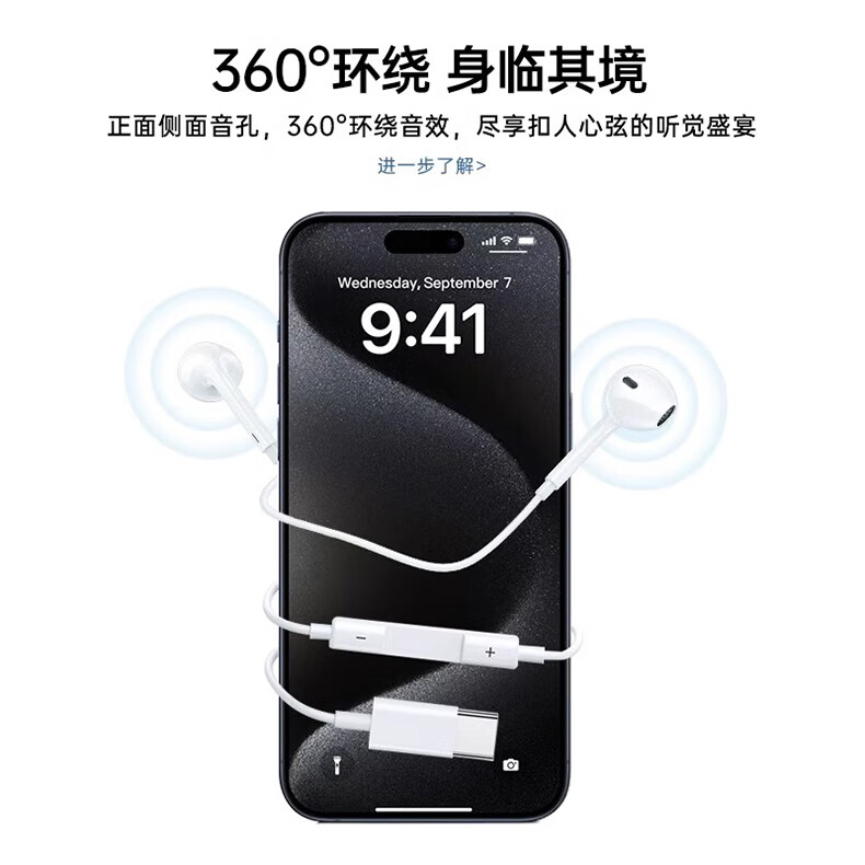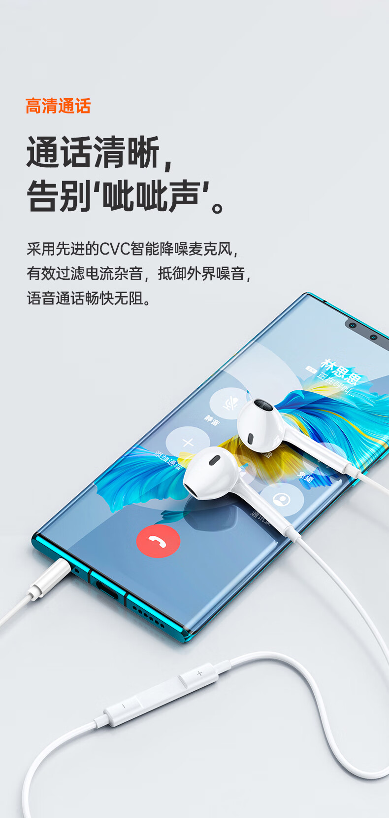 YOMO【原声版】Type-C耳机 扁口有线耳机游戏电竞耳机 适用于苹果华为小米oppo手机 苹果15/16-白色