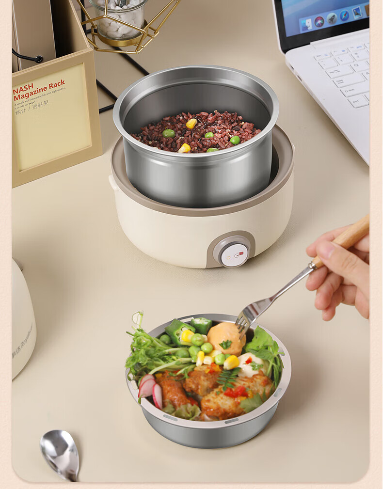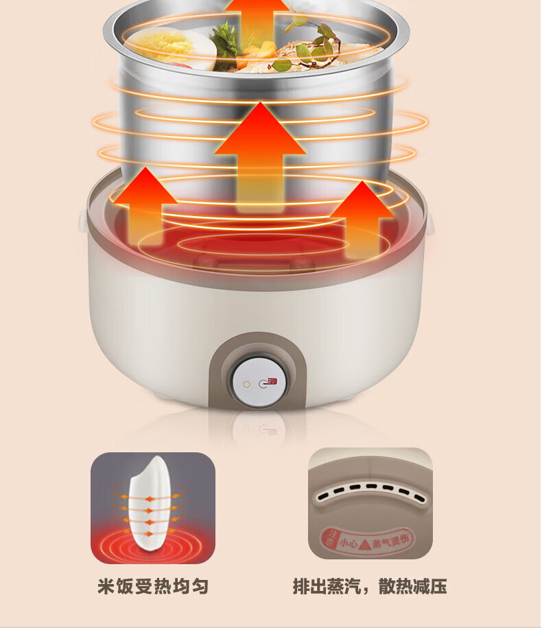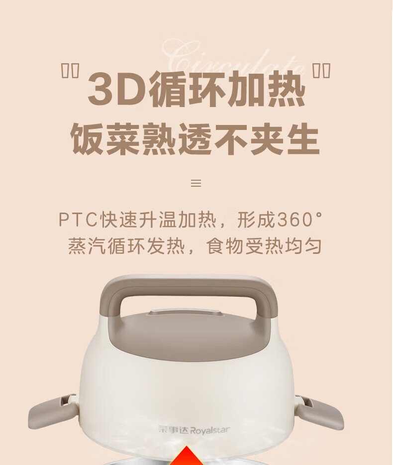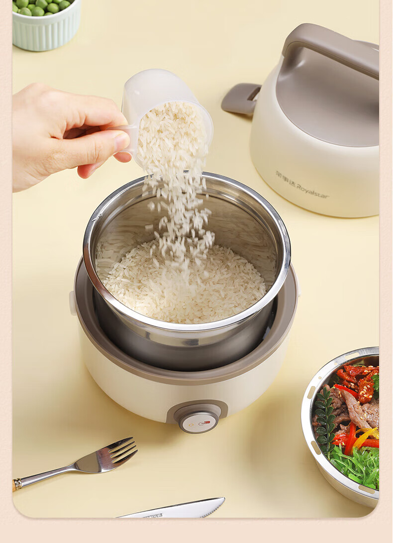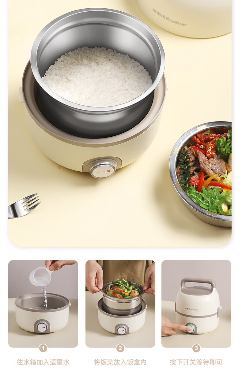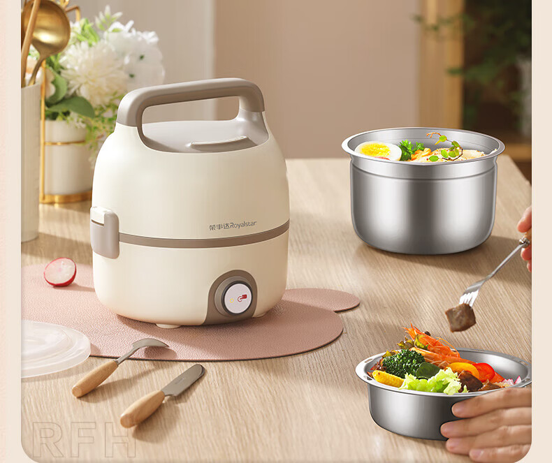 荣事达(Royalstar)电热饭盒加热饭盒保温饭盒可插电注水煮饭便携小型蒸汽加热1.2L 【双层 304钢蒸盘】RFH302(D)