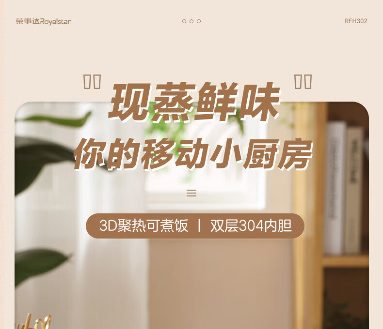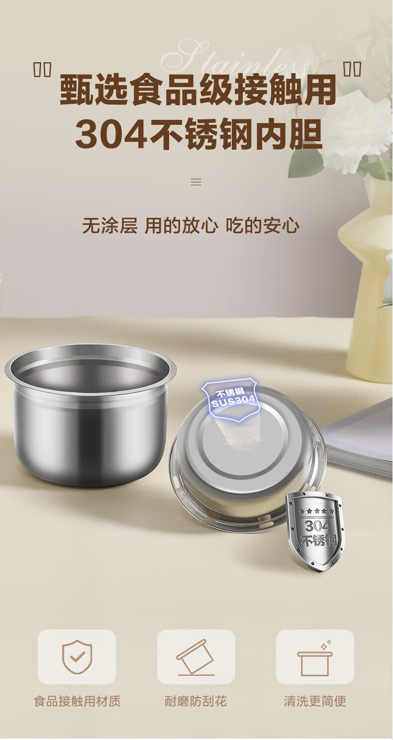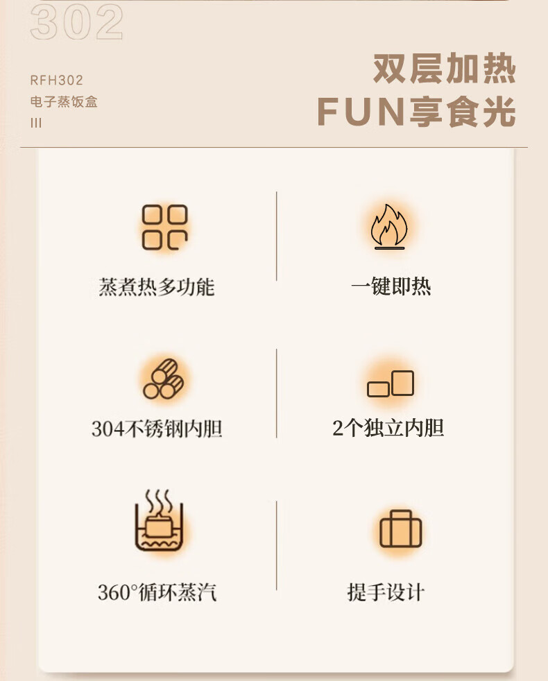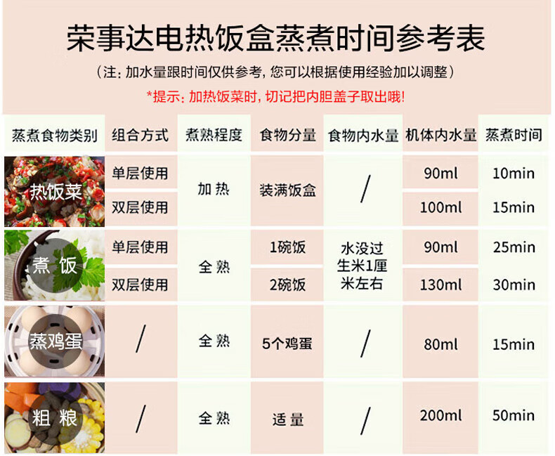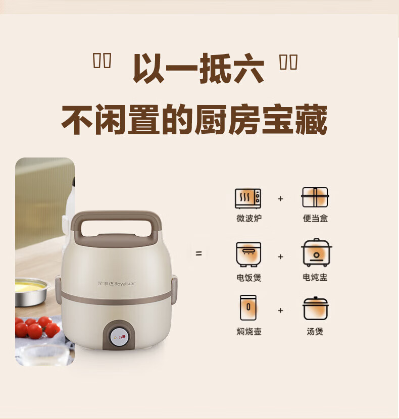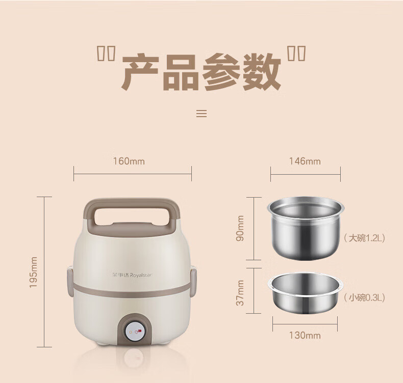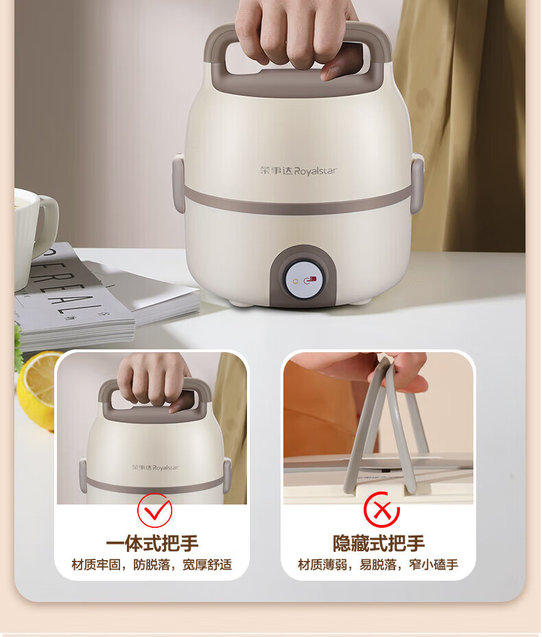 荣事达(Royalstar)电热饭盒加热饭盒保温饭盒可插电注水煮饭便携小型蒸汽加热1.2L 【双层 304钢蒸盘】RFH302(D)