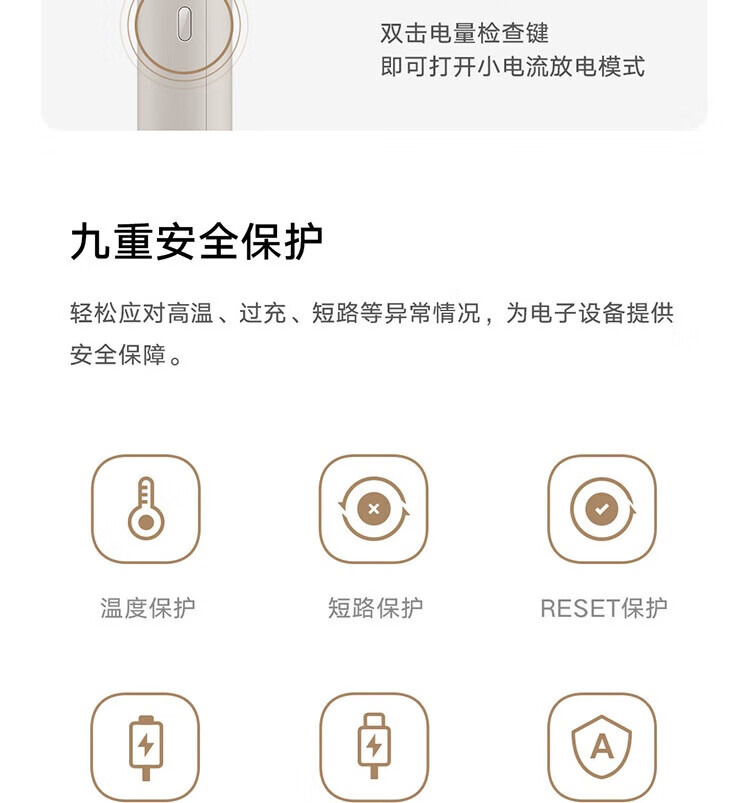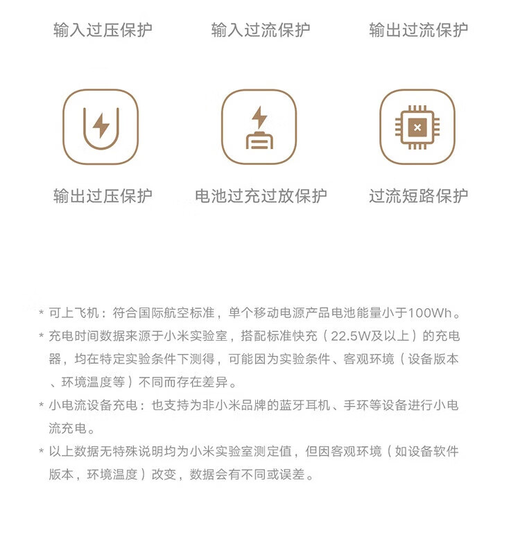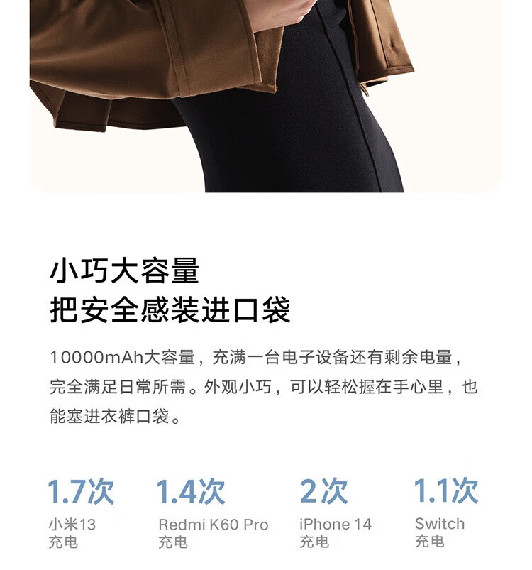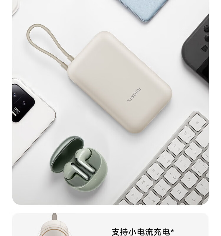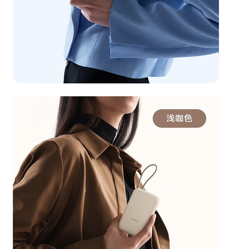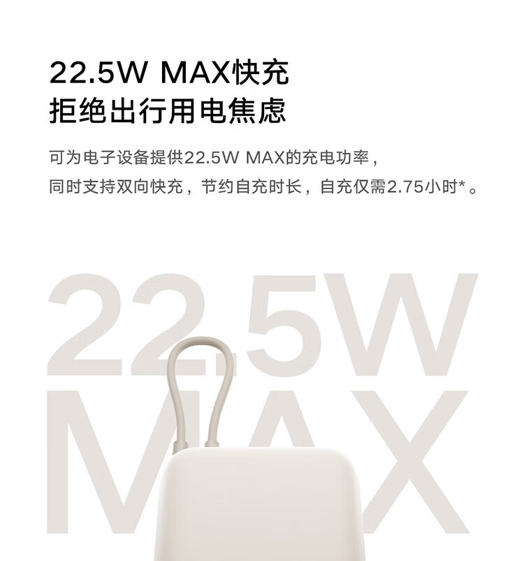 小米(MI)【3C认证】自带线充电宝10000mAh口袋版移动电源可上飞机Type-C双向快充 22.5W大功率适用小米苹果 浅咖色