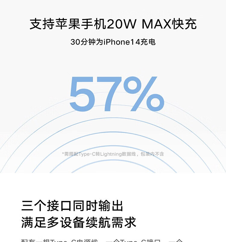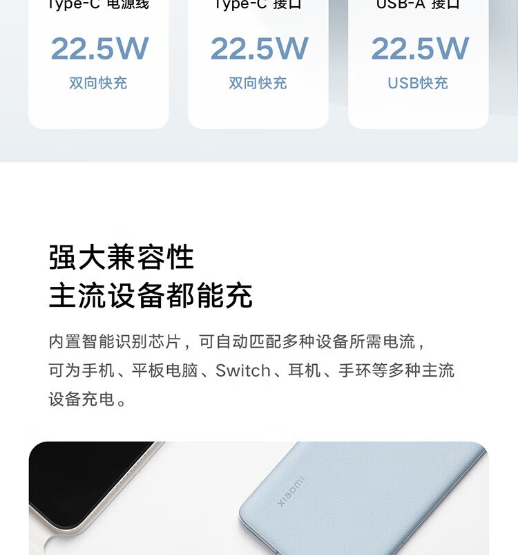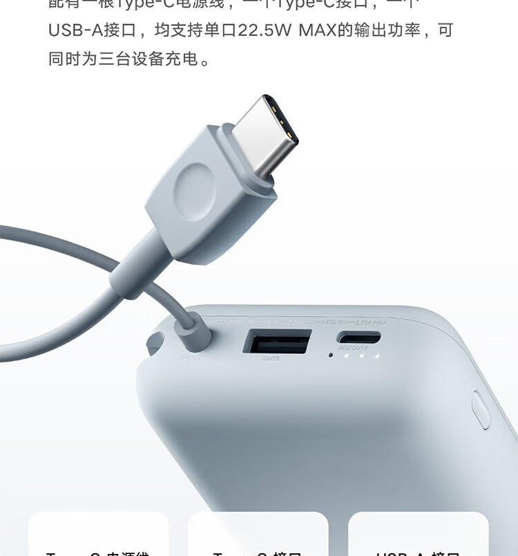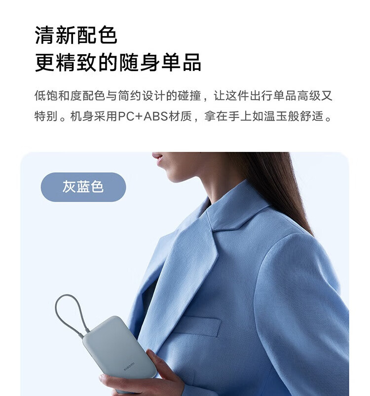 小米(MI)【3C认证】自带线充电宝 20000 67W 可上飞机/火车 可充手机平板笔记本耳机 iPhone安卓可用 浅蓝色