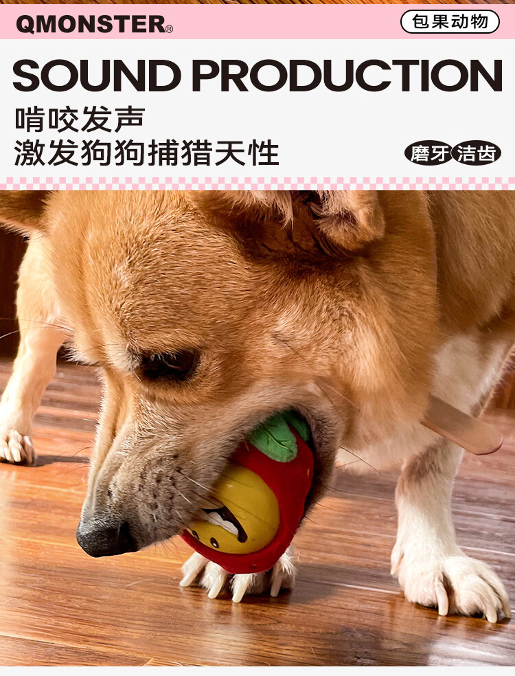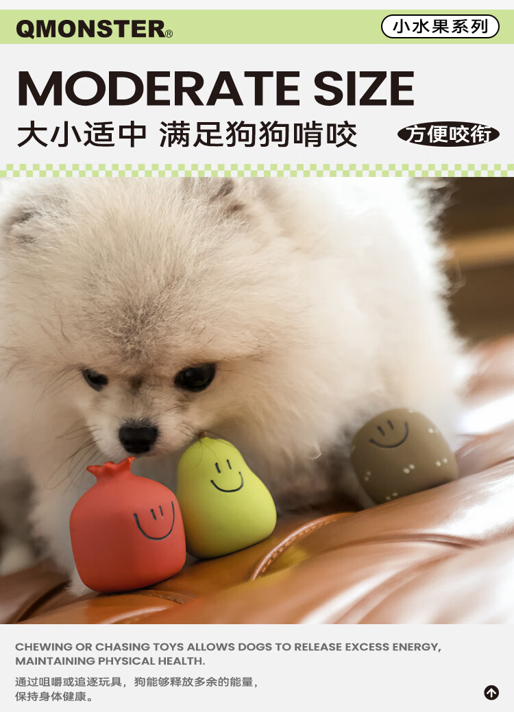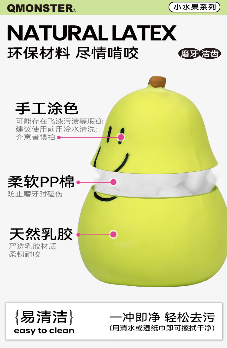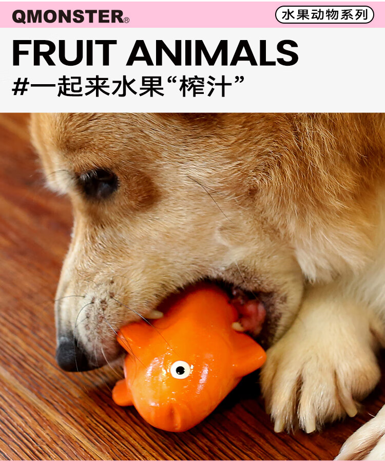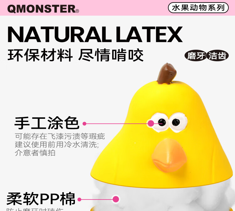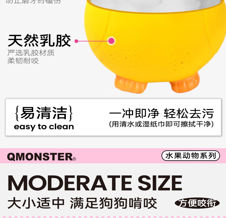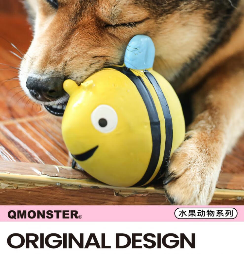 QMONSTER乳胶发声狗玩具QMONSTER洁齿球香蕉磨牙棒解闷宠物中小型猫犬 柠檬蜜蜂 乳胶加厚发声CNAS安全认证