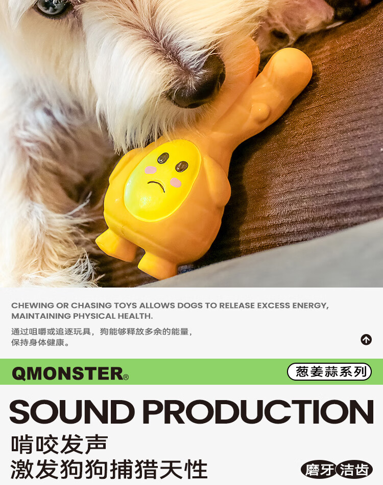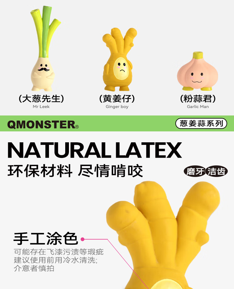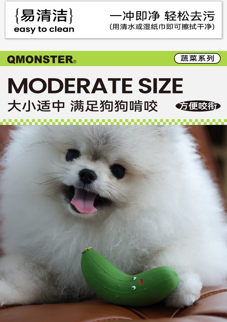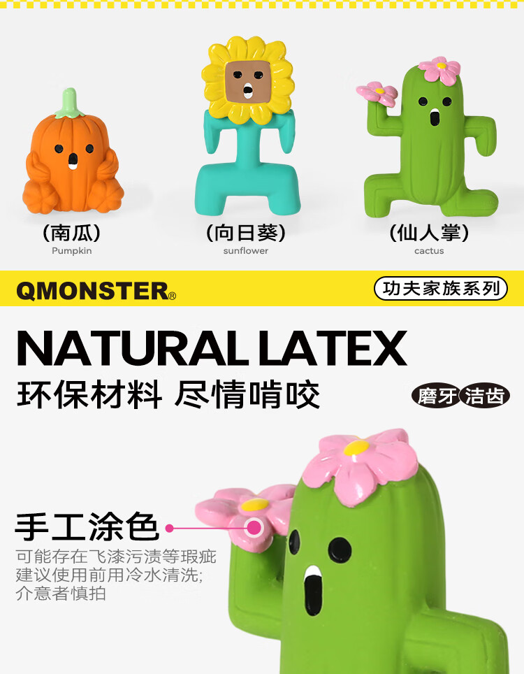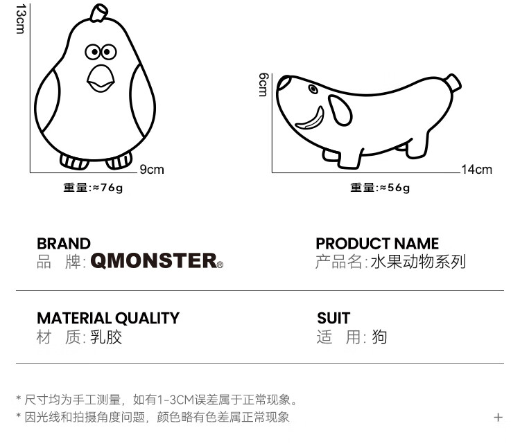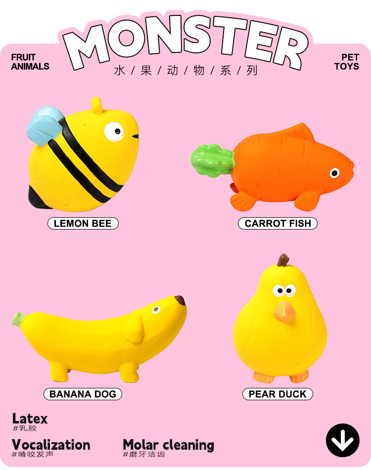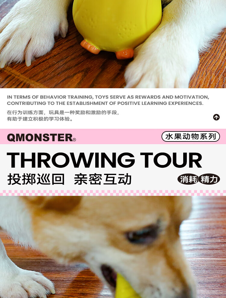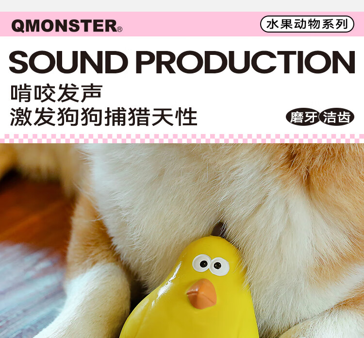 QMONSTER乳胶发声狗玩具QMONSTER洁齿球香蕉磨牙棒解闷宠物中小型猫犬 柠檬蜜蜂 乳胶加厚发声CNAS安全认证