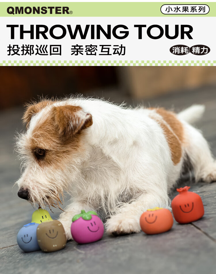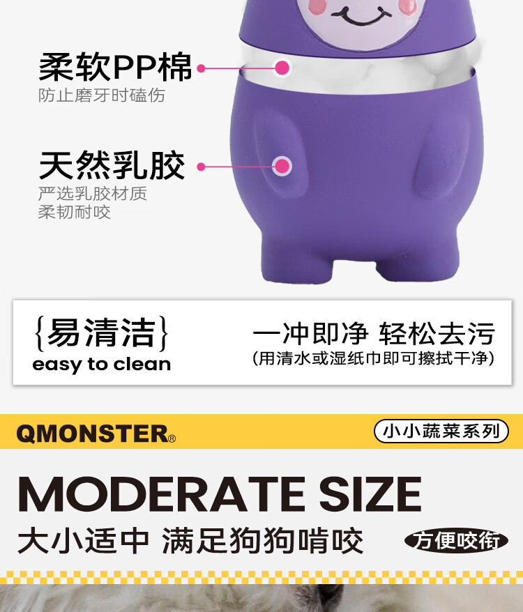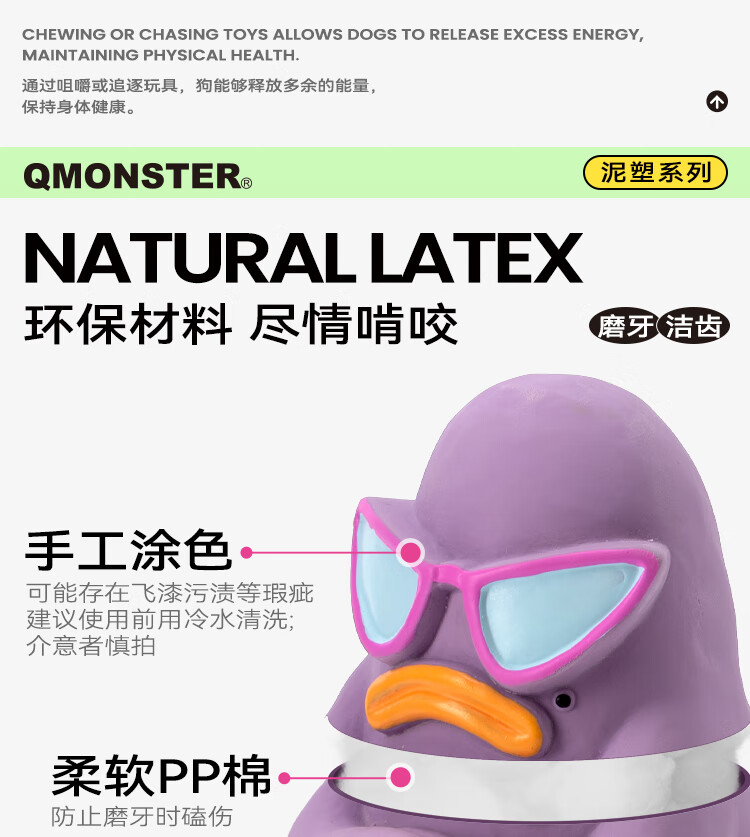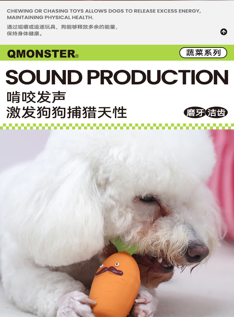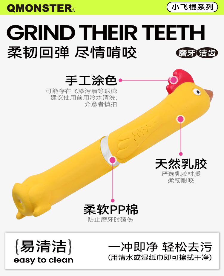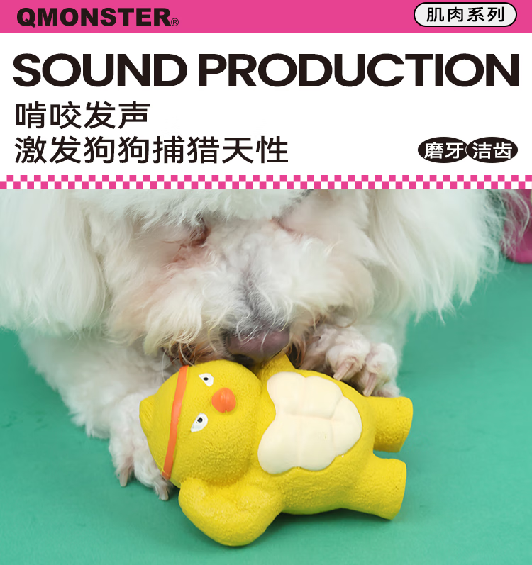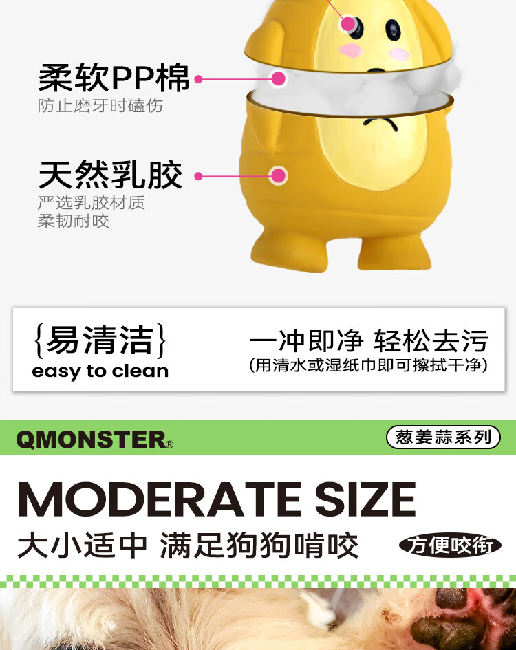 QMONSTER乳胶发声狗玩具QMONSTER洁齿球香蕉磨牙棒解闷宠物中小型猫犬 柠檬蜜蜂 乳胶加厚发声CNAS安全认证