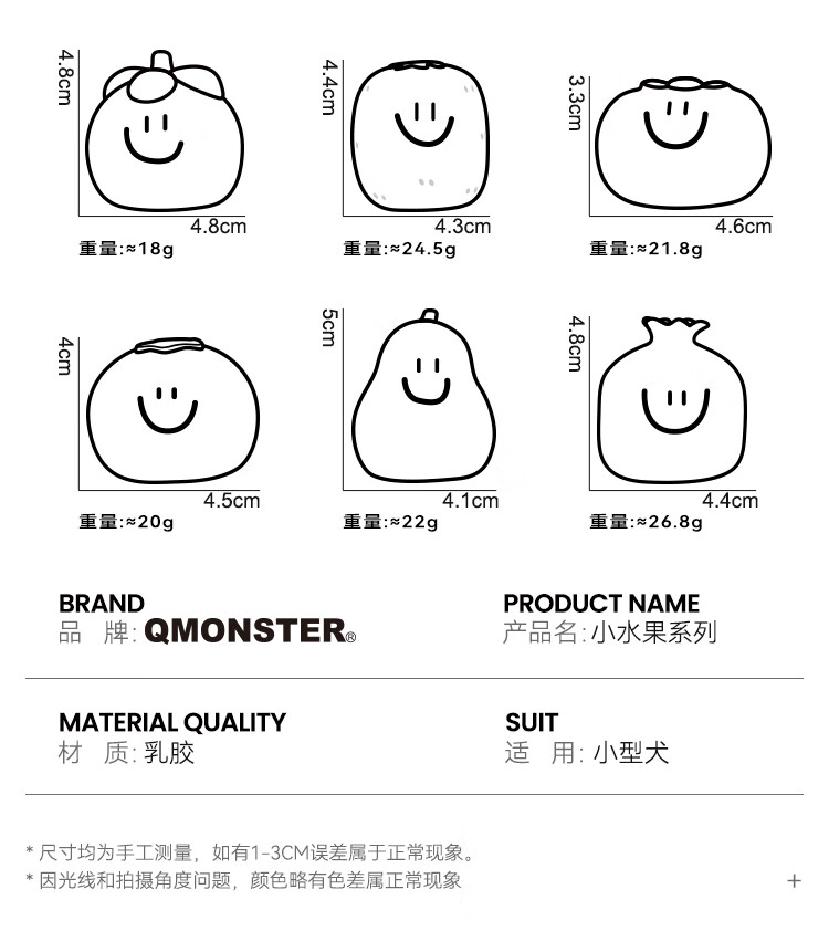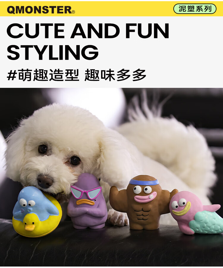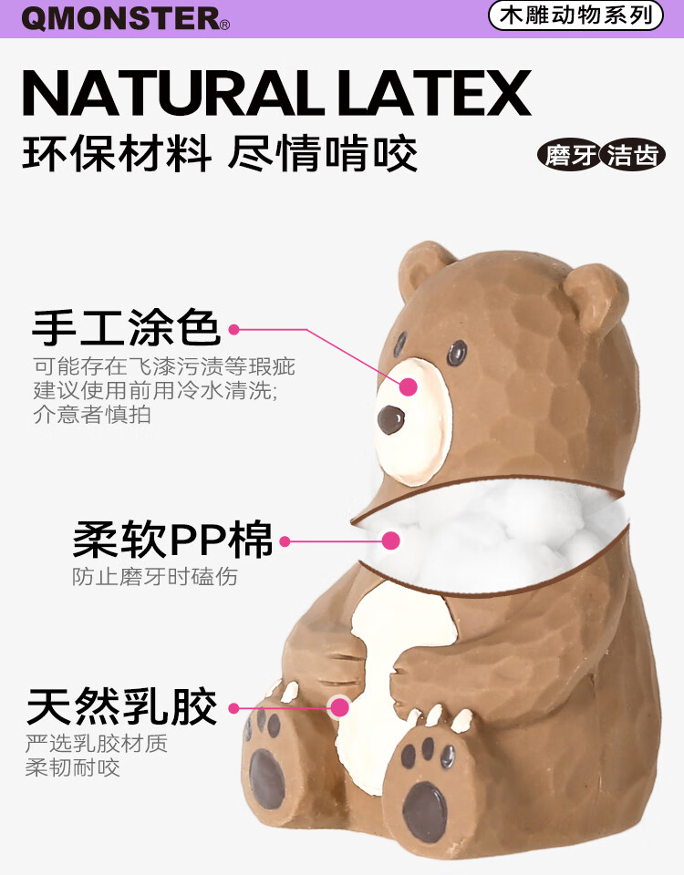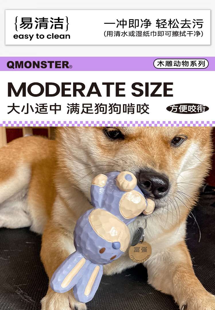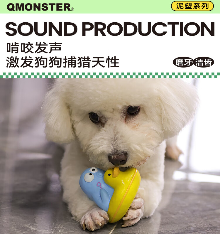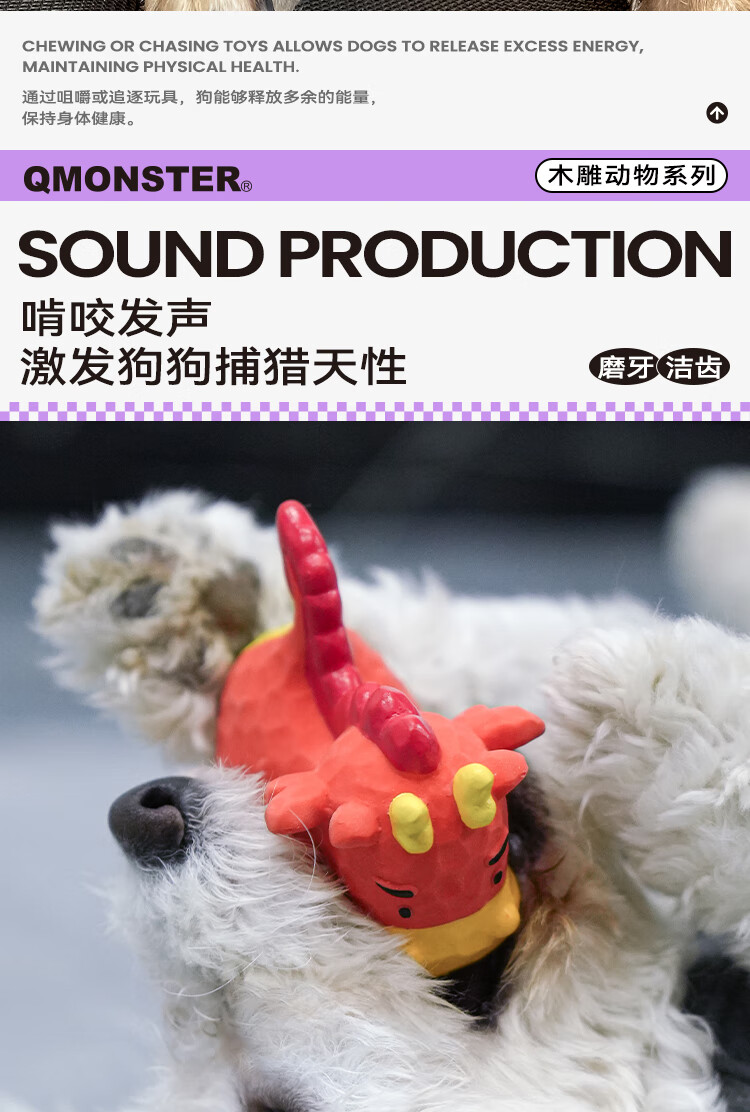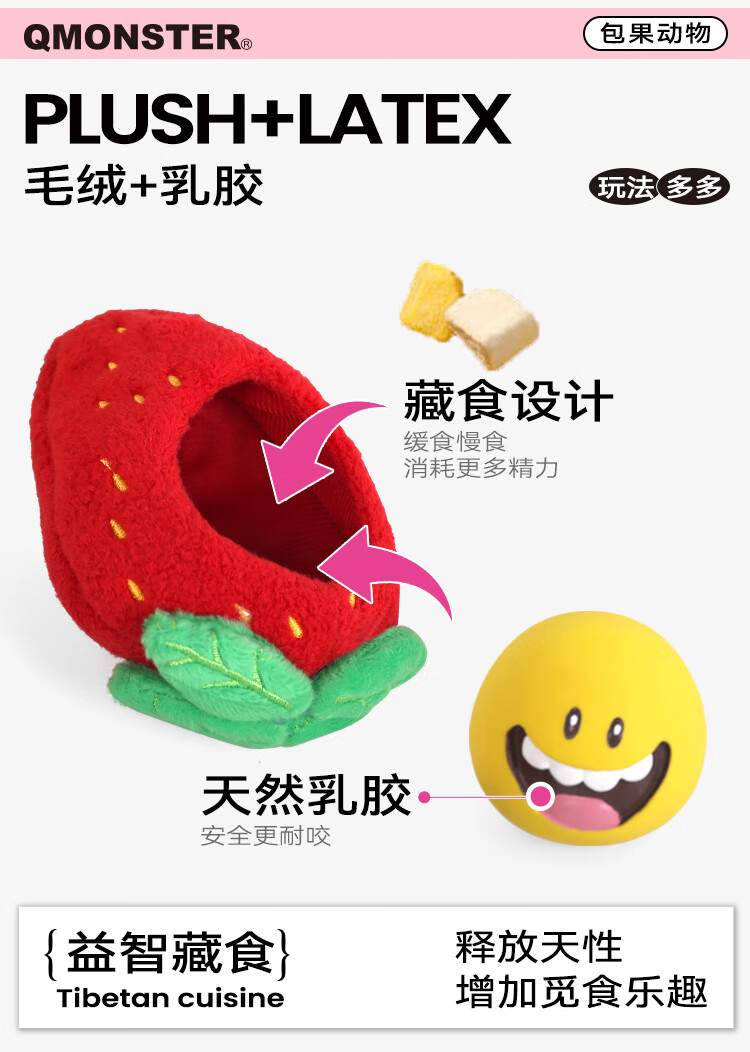 QMONSTER乳胶发声狗玩具QMONSTER洁齿球香蕉磨牙棒解闷宠物中小型猫犬 柠檬蜜蜂 乳胶加厚发声CNAS安全认证