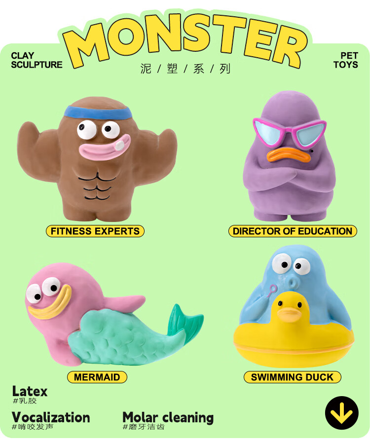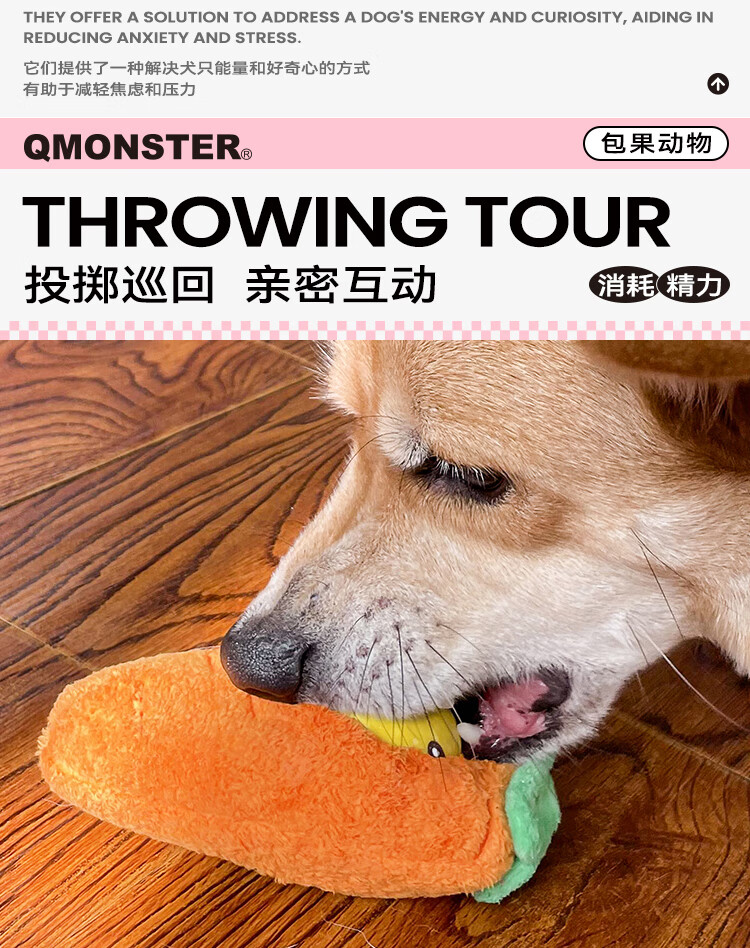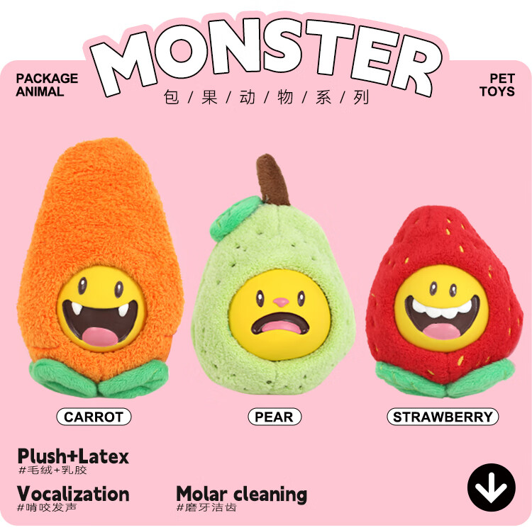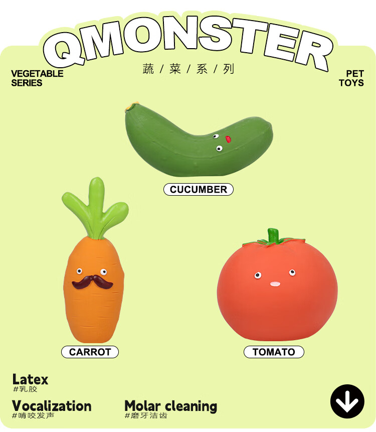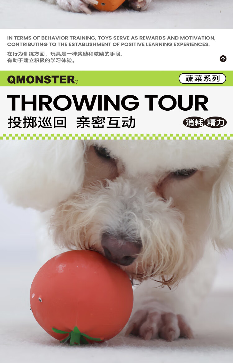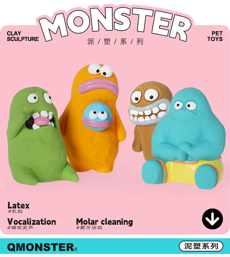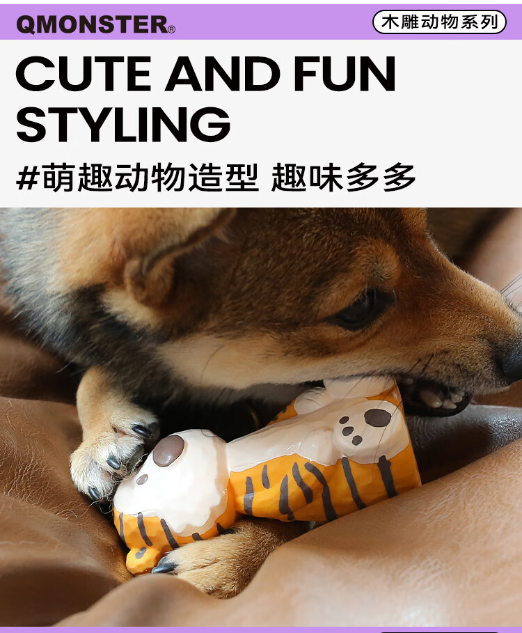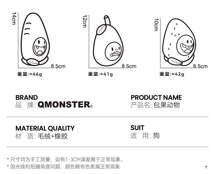 QMONSTER乳胶发声狗玩具QMONSTER洁齿球香蕉磨牙棒解闷宠物中小型猫犬 柠檬蜜蜂 乳胶加厚发声CNAS安全认证