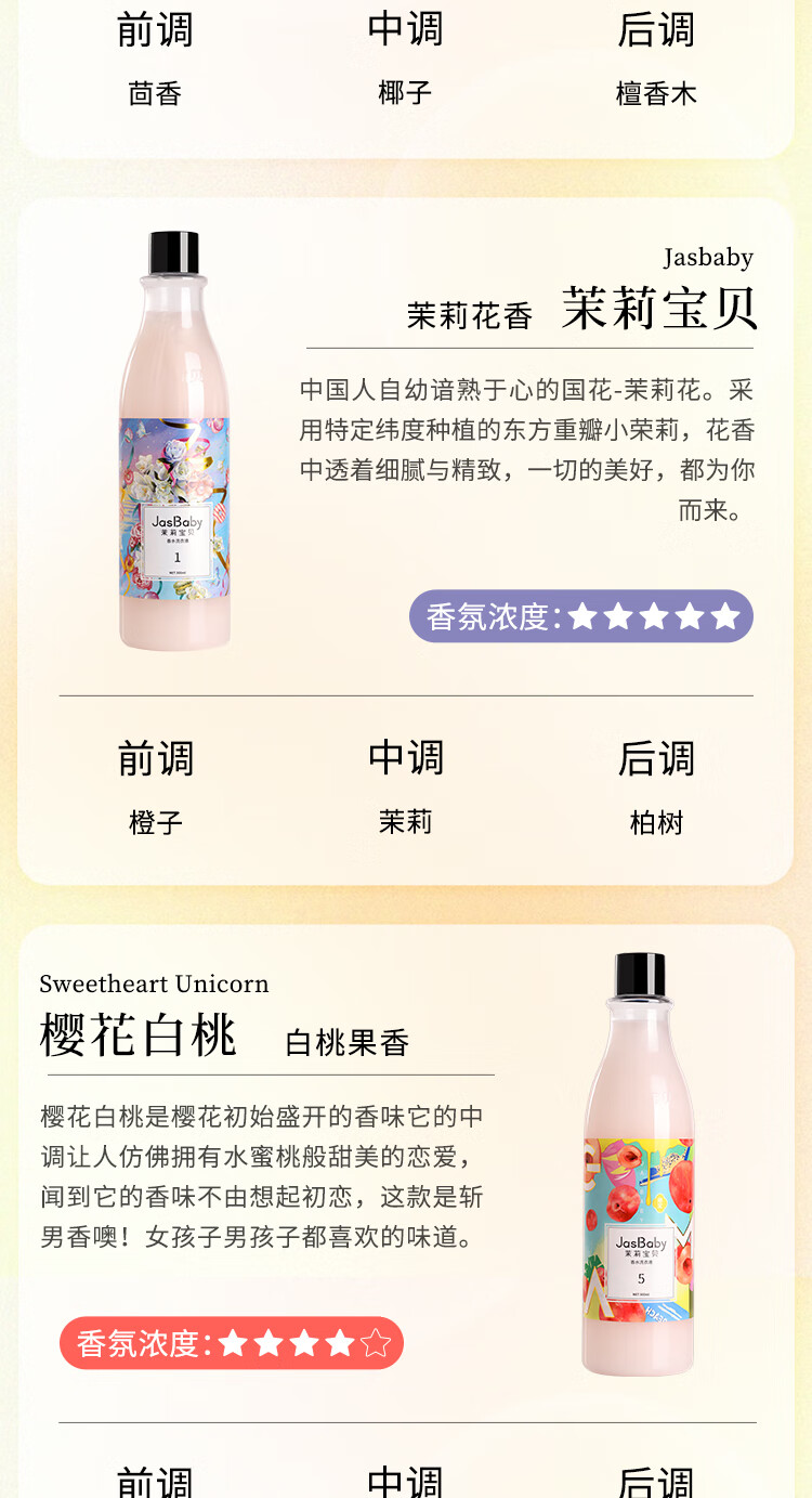 茉莉宝贝进口原料香氛甜心洗衣液木质椰奶持久留香活性物超国标单瓶900ml 【销量TOP高回购】甜心独角兽