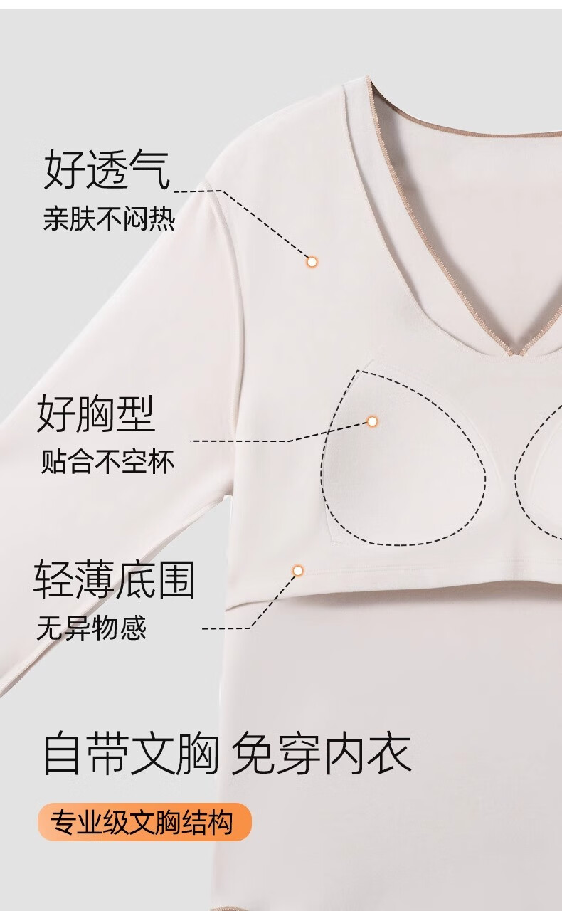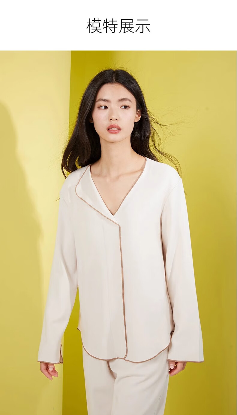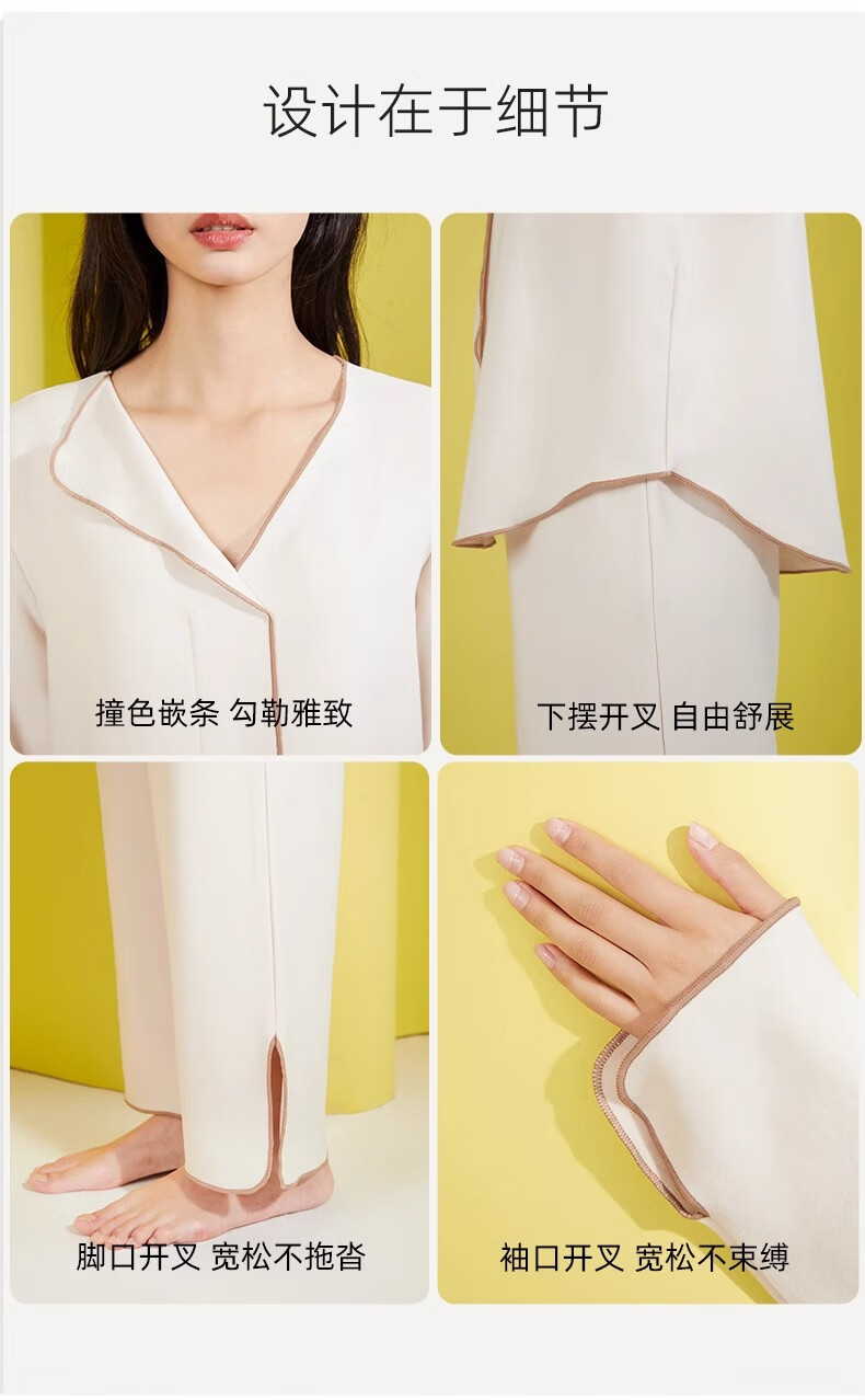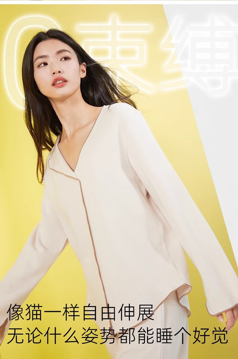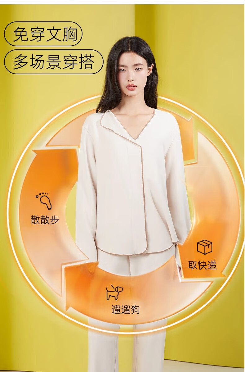 内茵带胸垫睡衣女春秋款长袖宽松休闲可外穿防凸点大码家居服套装薄款 奶茶白(上衣) 均码 XLXXL (体重120-140斤)