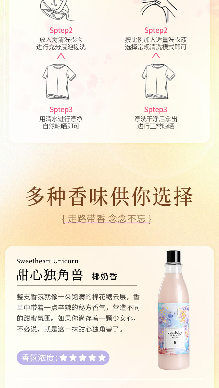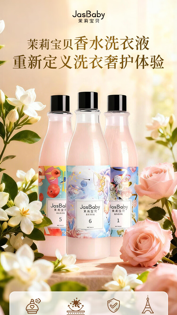 茉莉宝贝进口原料香氛洗衣液持久留香活性物超国高规格整箱批发 【5瓶装】茉莉宝贝