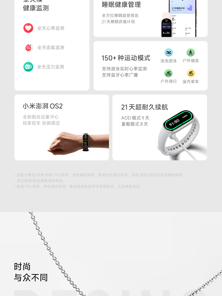 小米手环10/10NFC版/陶瓷版 智能手环 睡眠管理 心率血氧监测 长续航男女运动手环 小米手环10 标准版 银色