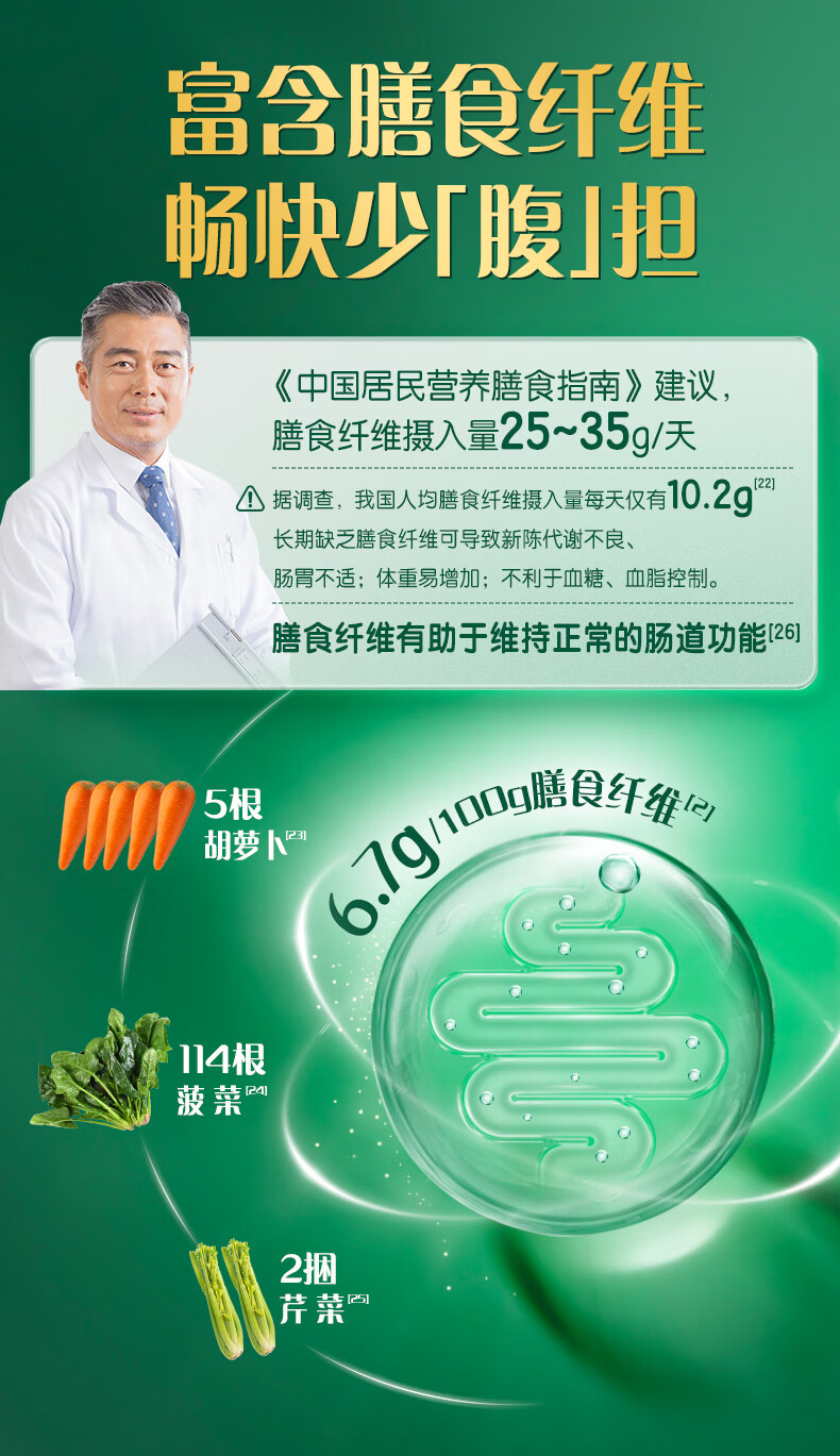 ONLYTREE纯冻干羽衣甘蓝粉奇亚籽膳食纤维蔬菜粉冲饮代餐粉2盒50袋共190g
