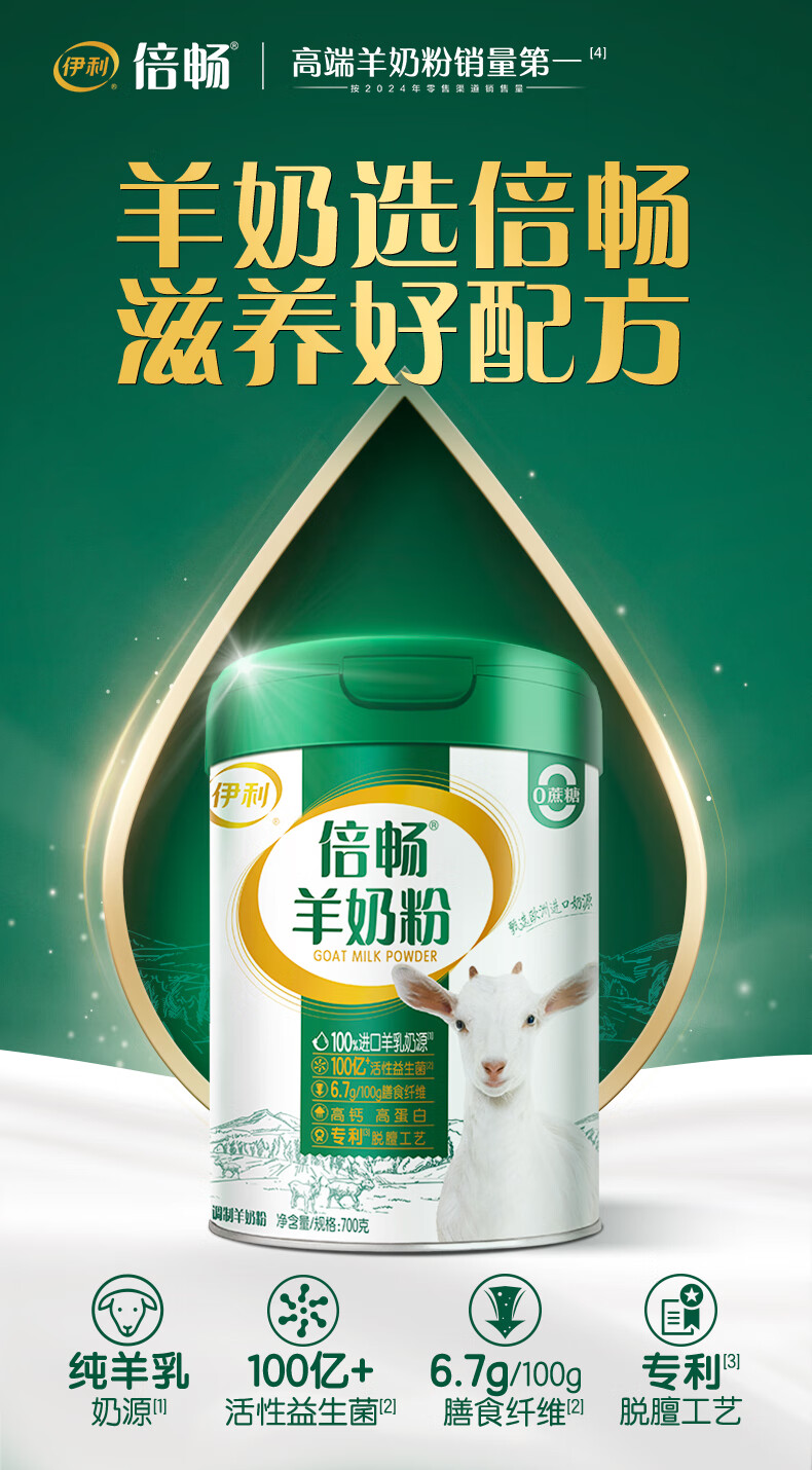 伊利倍畅羊奶粉700g 100亿活性益生菌 100%纯羊乳 送长辈营养品 奥运冠军推荐-700g+154g