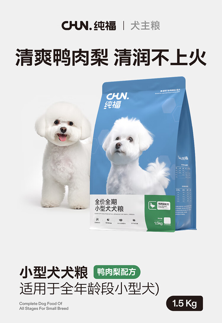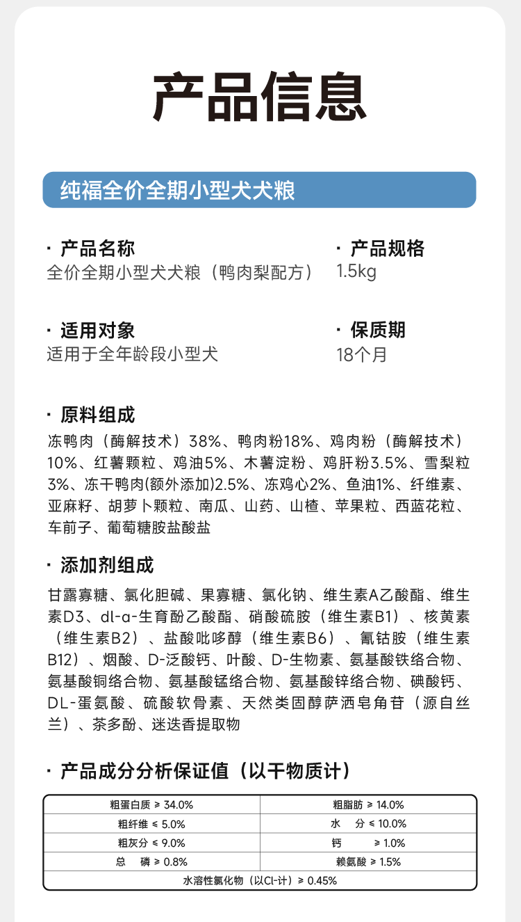 纯福酶解小型犬粮鸭肉梨通用型犬粮幼犬成犬冻干专用粮 小型犬(鸭肉梨)1.5kg【单包装】