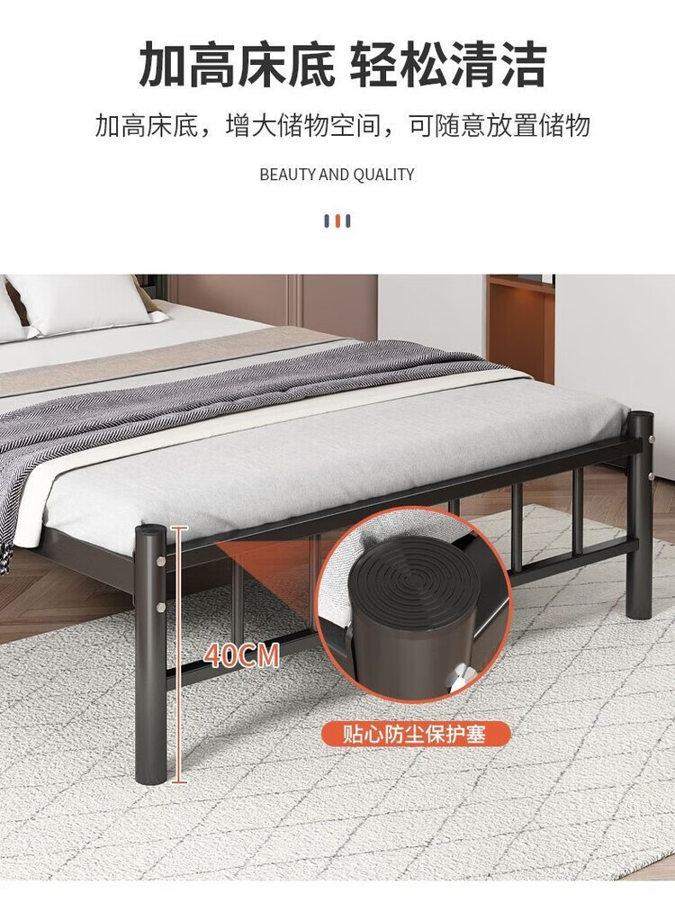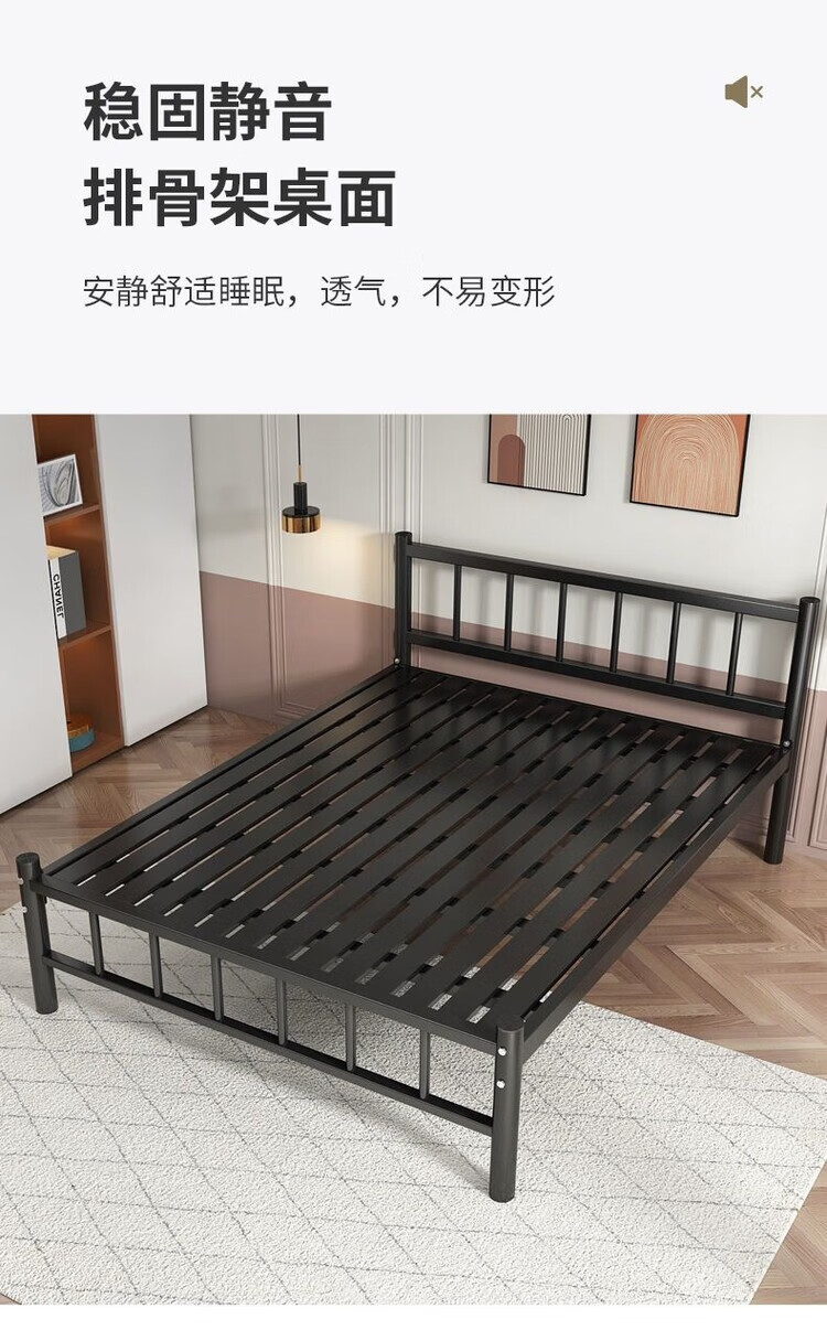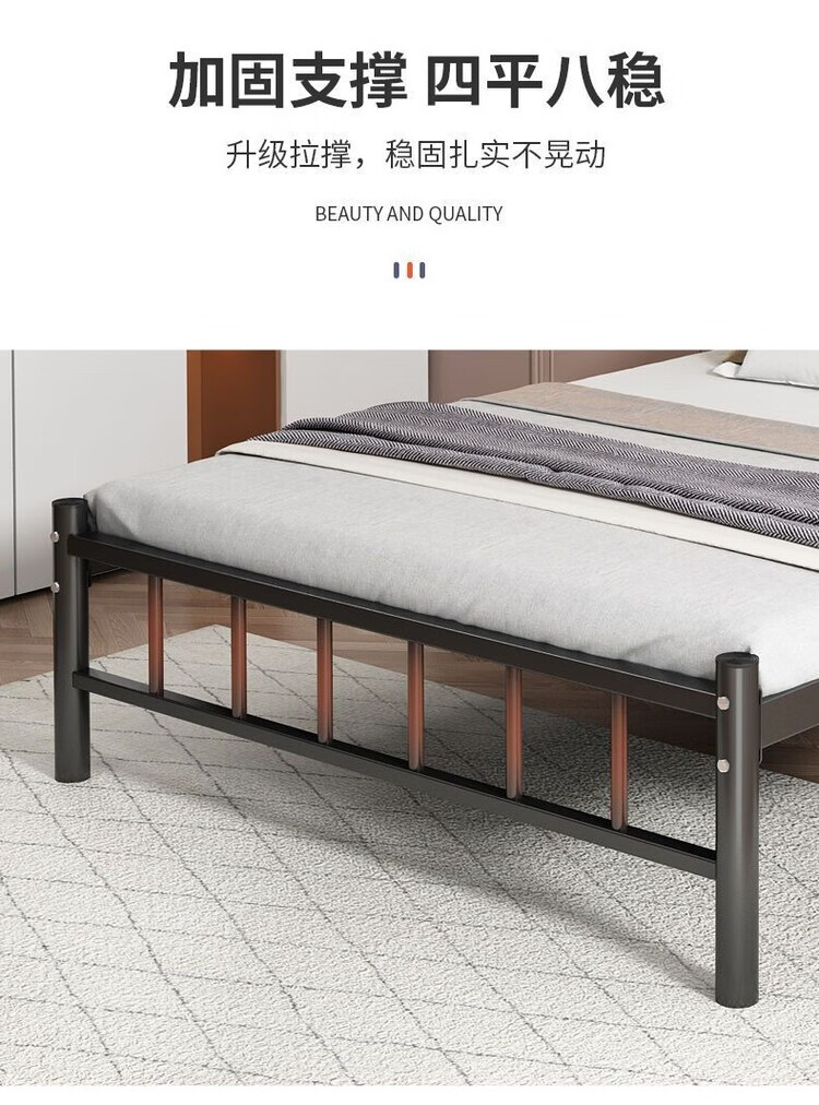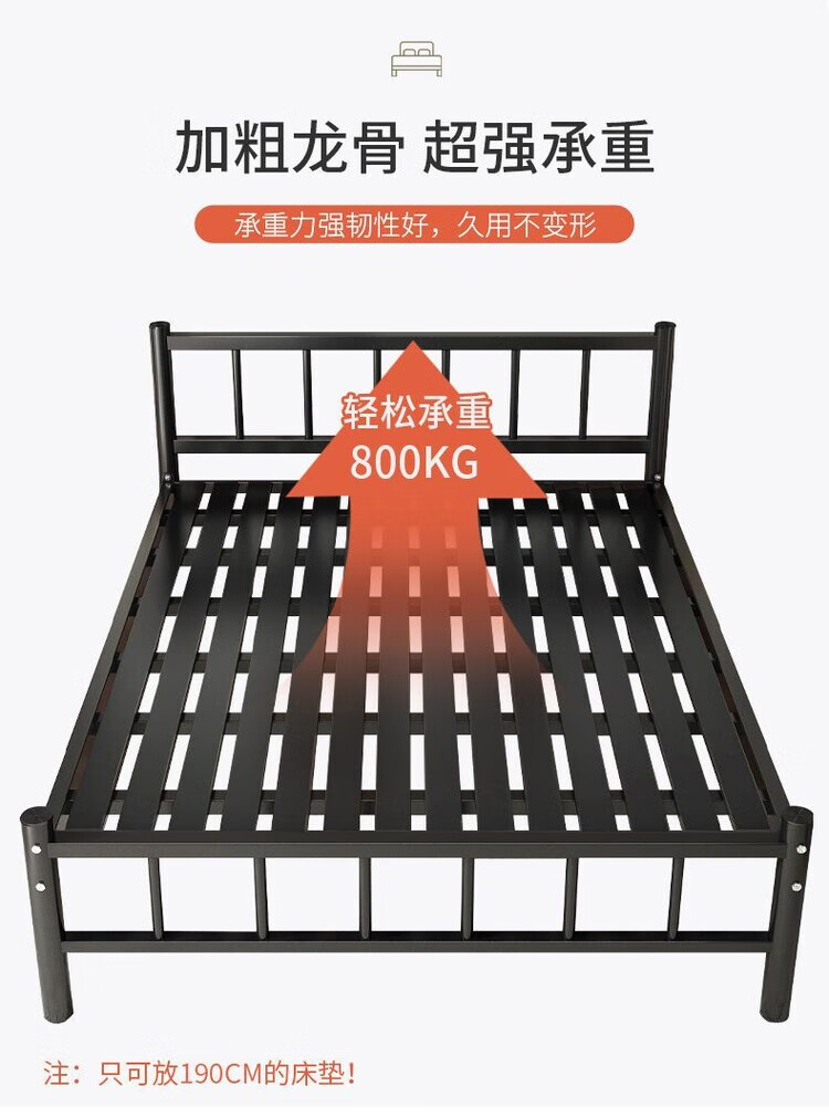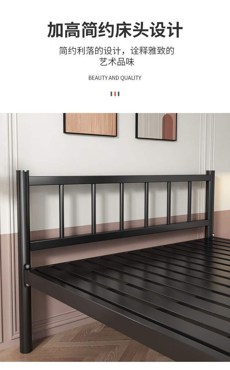 欣慕雅北欧铁艺床铁床双人床简约现代宿舍单人床网红床出租房铁架子床 A款静音黑色铁架床(内径长度190) 90*40*200cm【加厚a加粗】