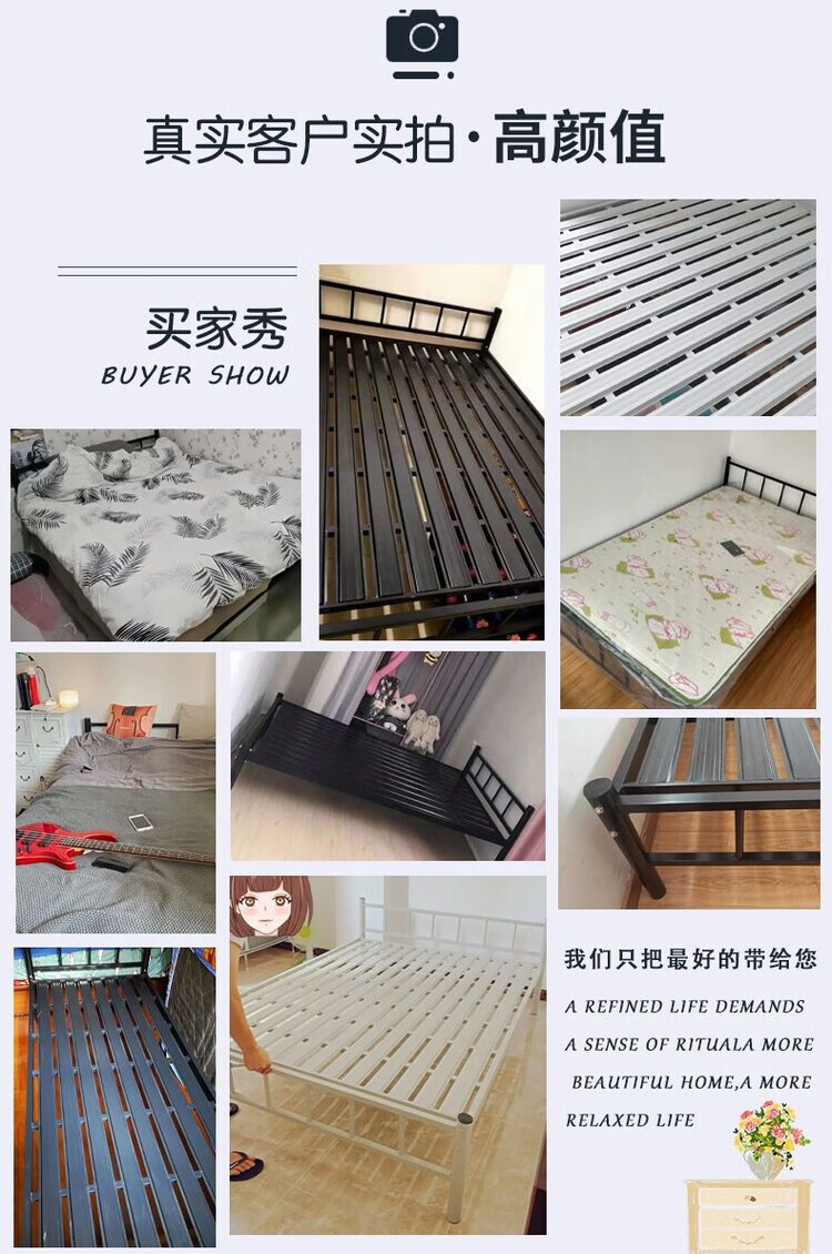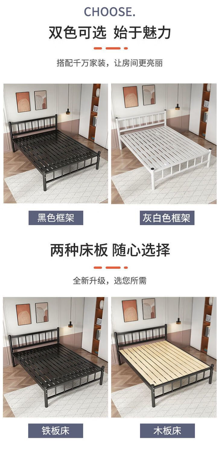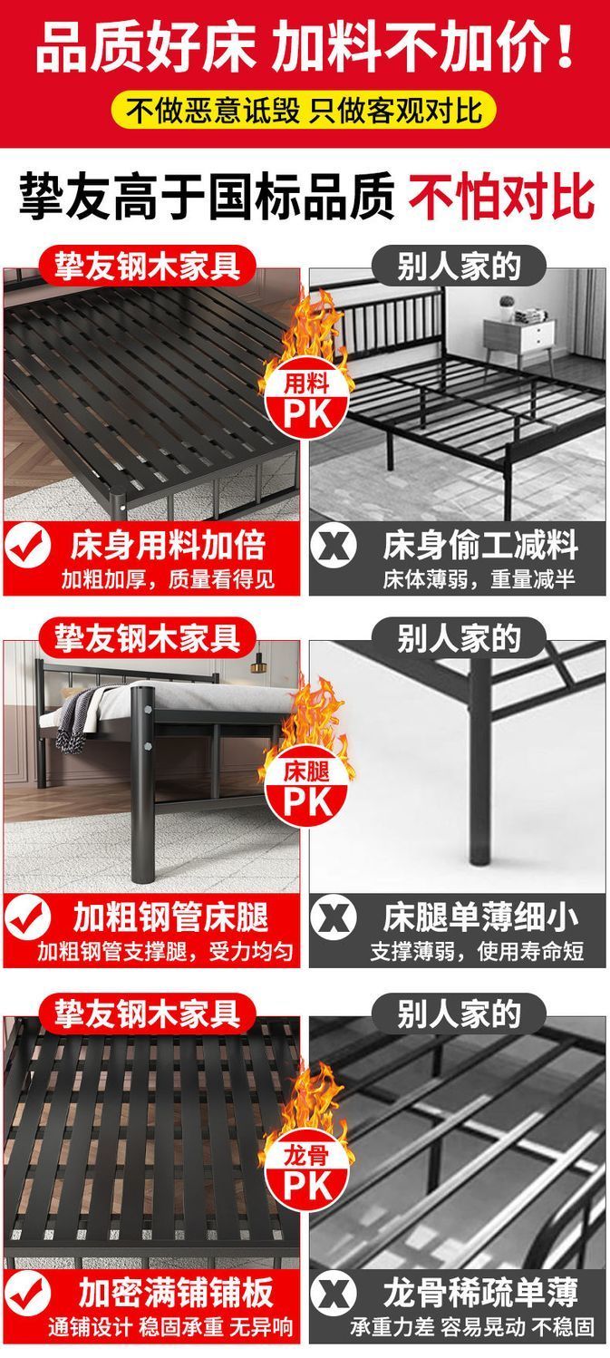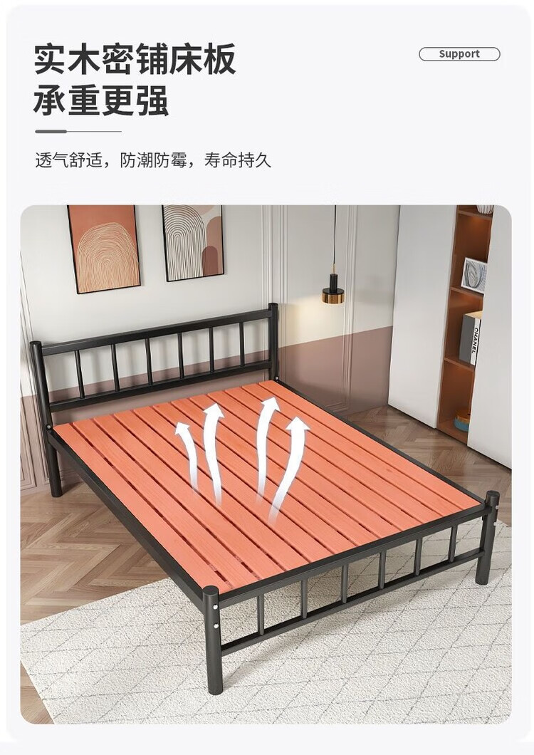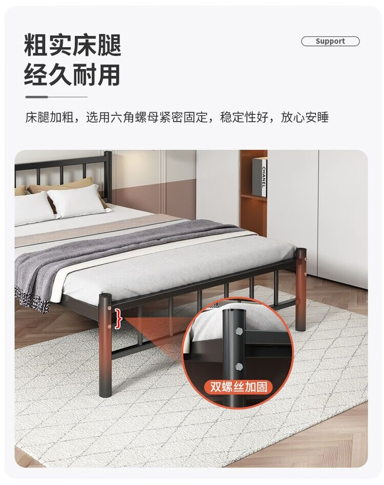 欣慕雅北欧铁艺床铁床双人床简约现代宿舍单人床网红床出租房铁架子床 A款静音黑色铁架床(内径长度190) 90*40*200cm【加厚a加粗】